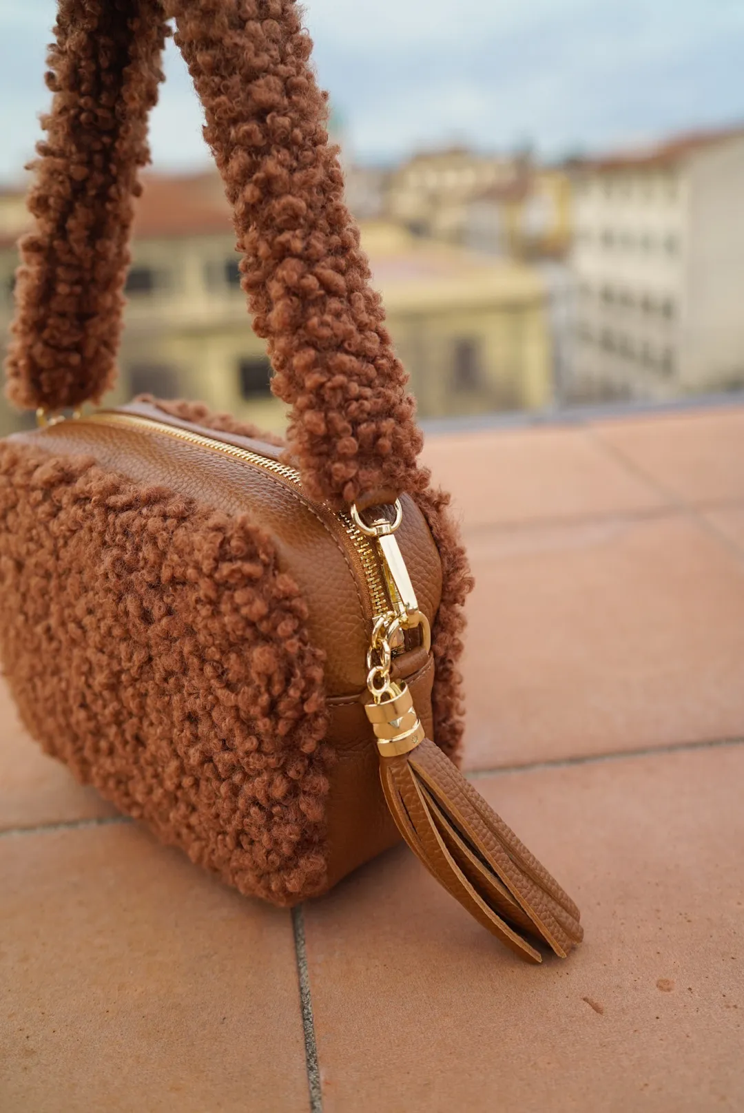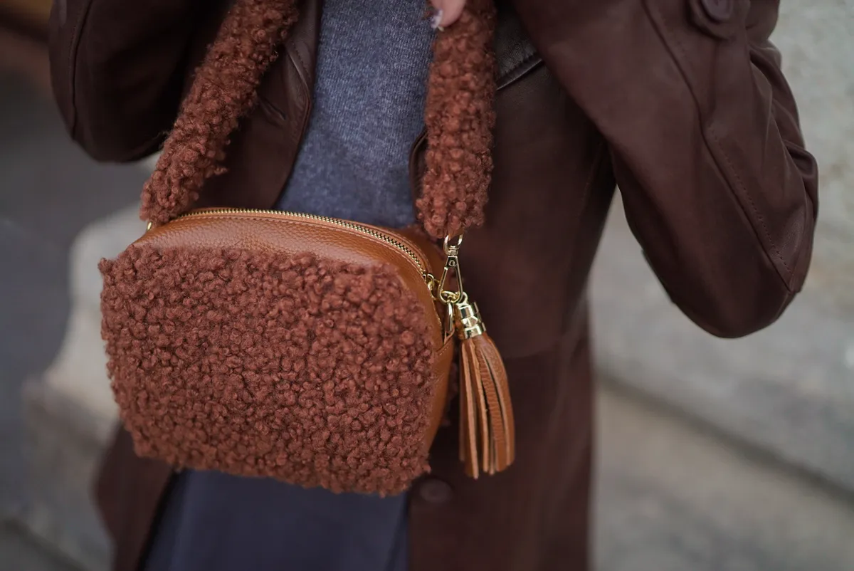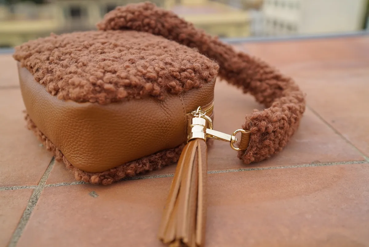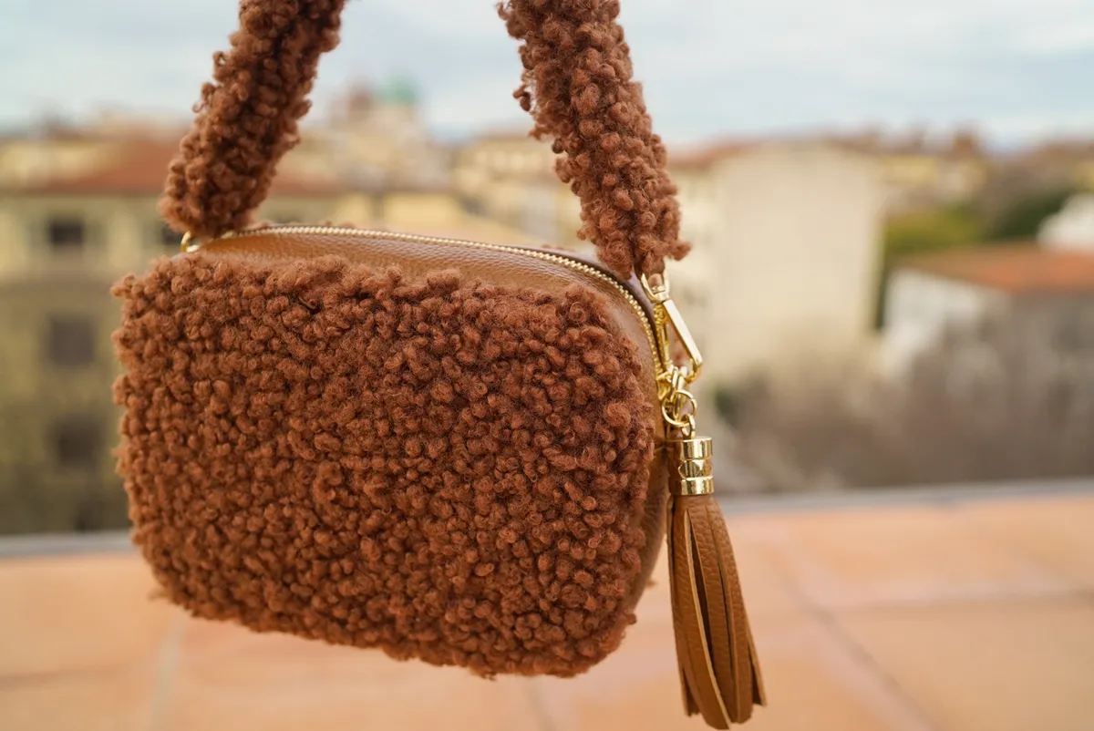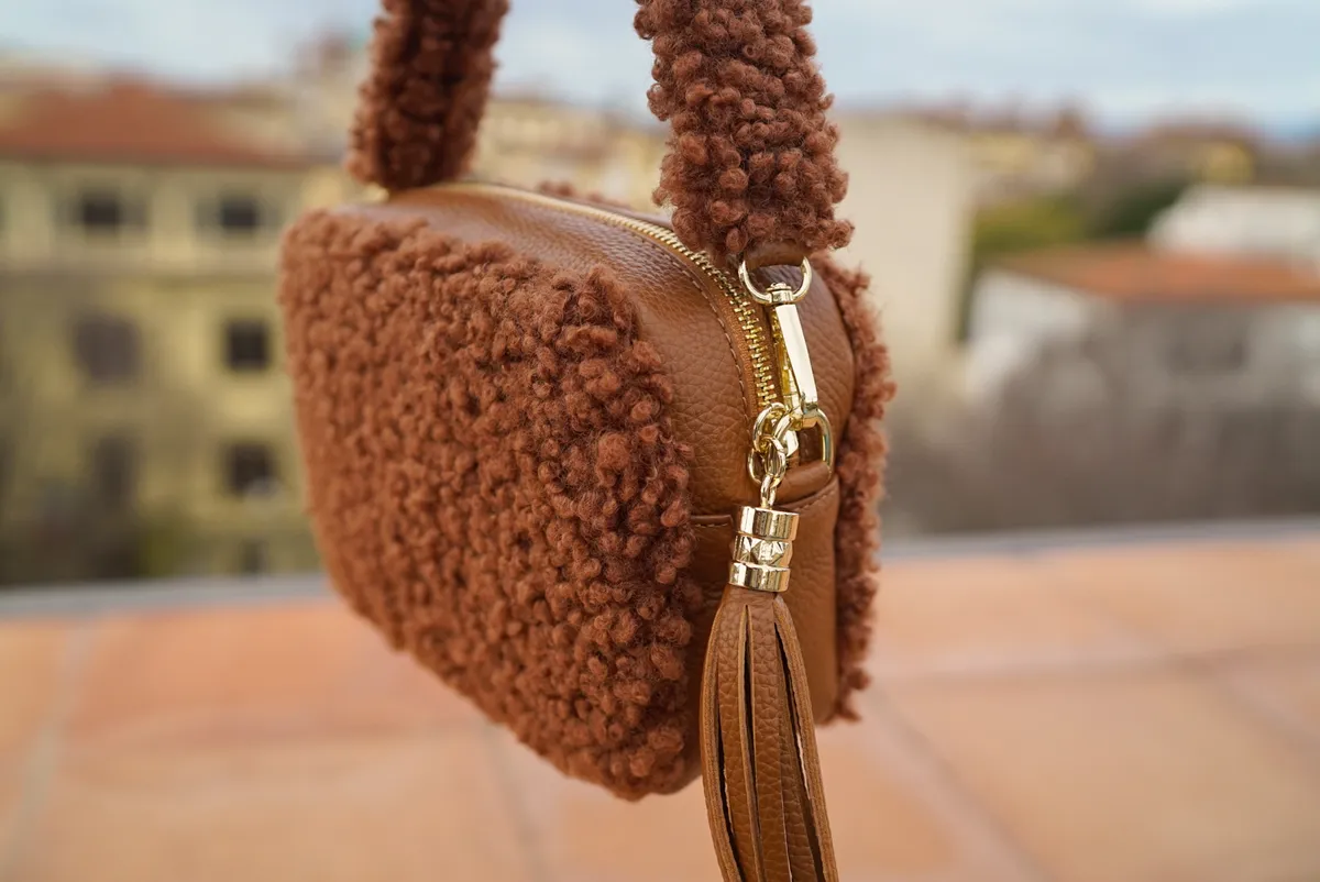 義大利製真皮泰迪毛毛流蘇包