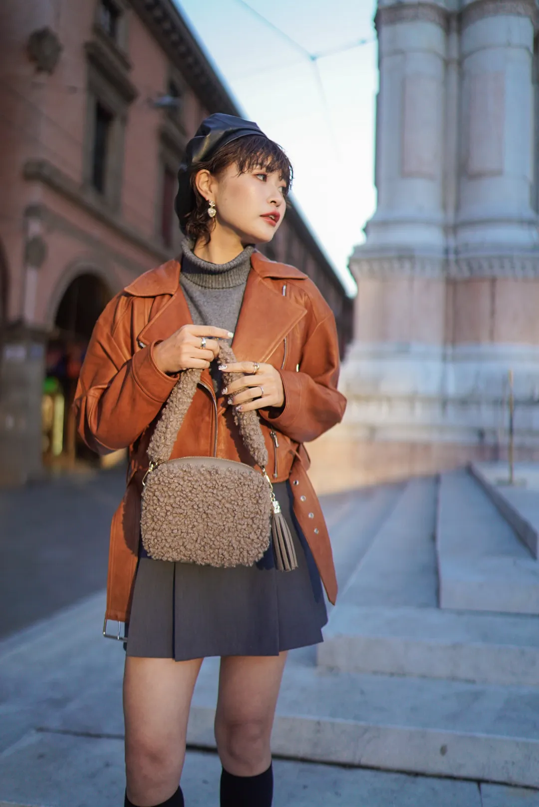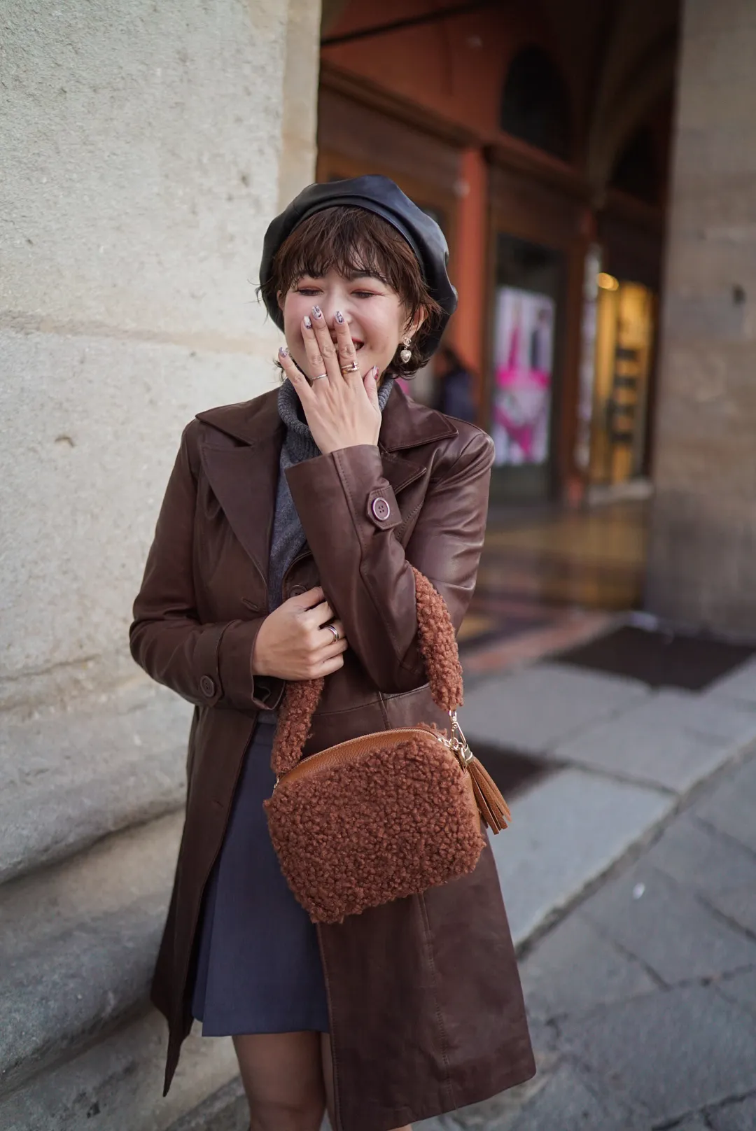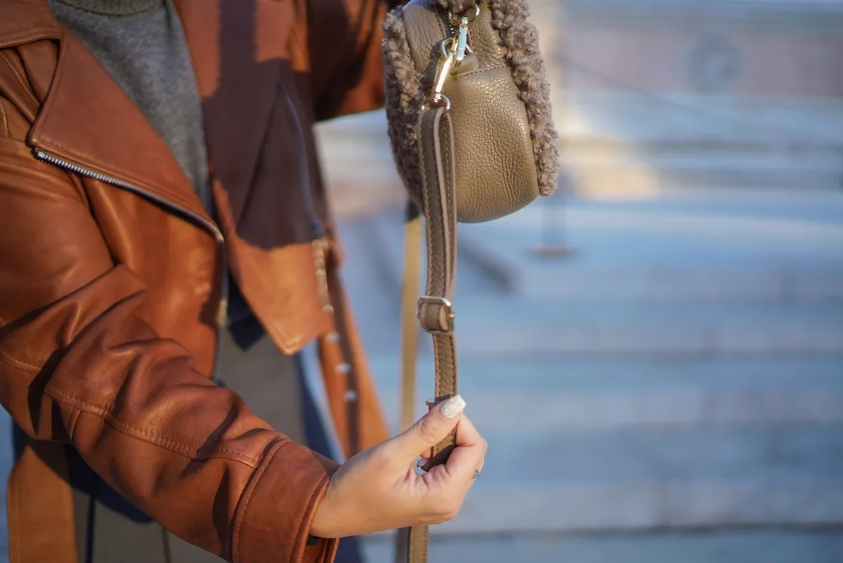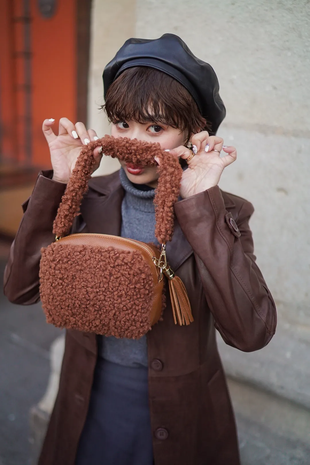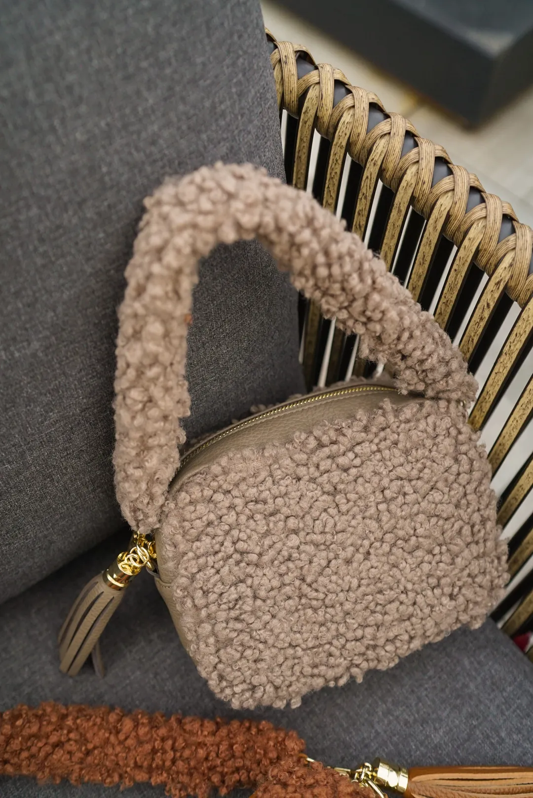 義大利製真皮泰迪毛毛流蘇包