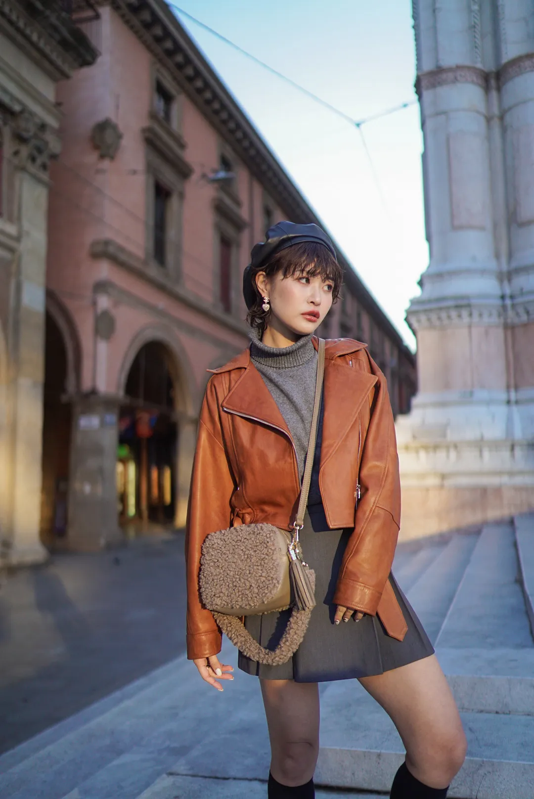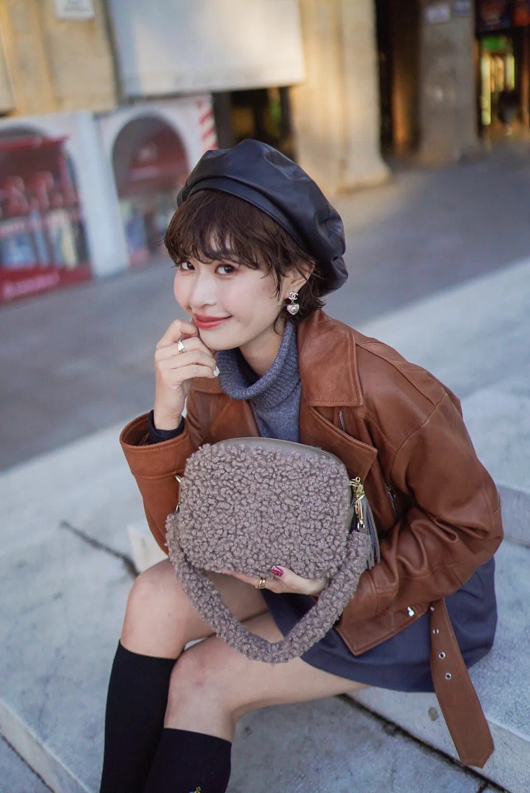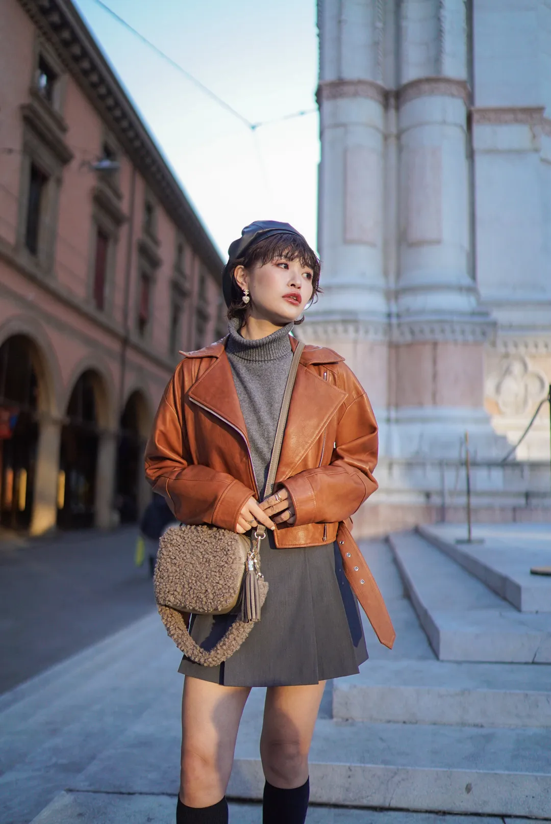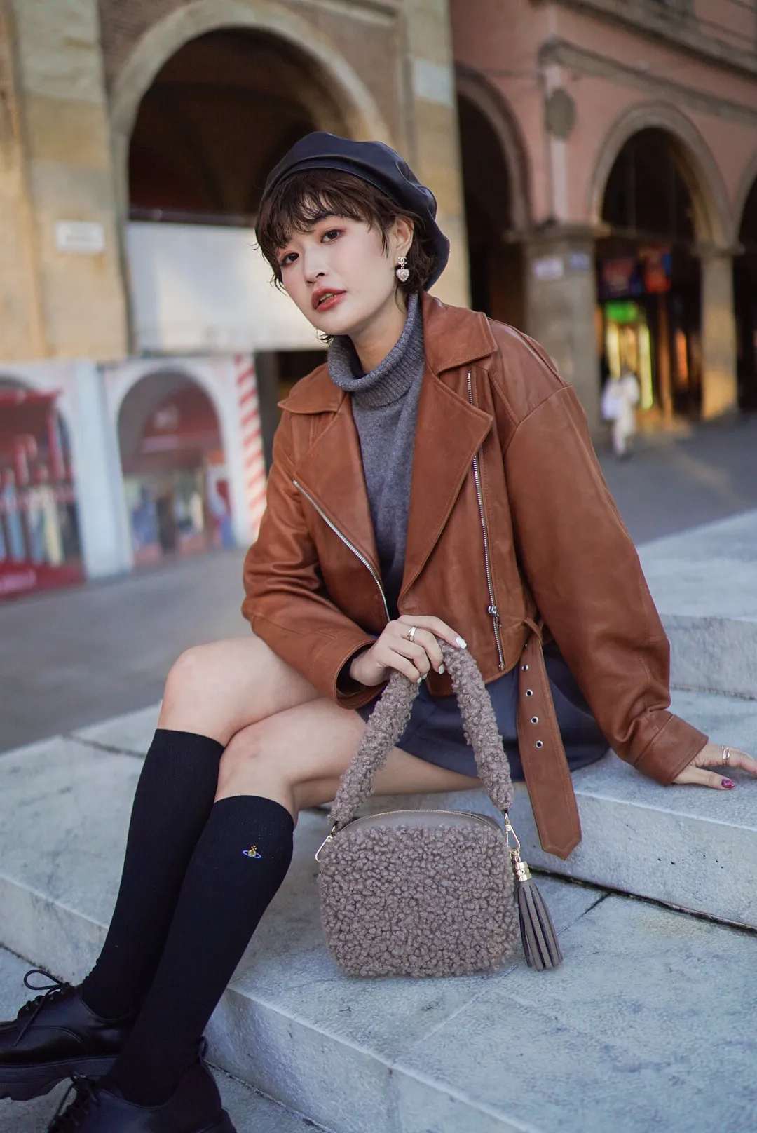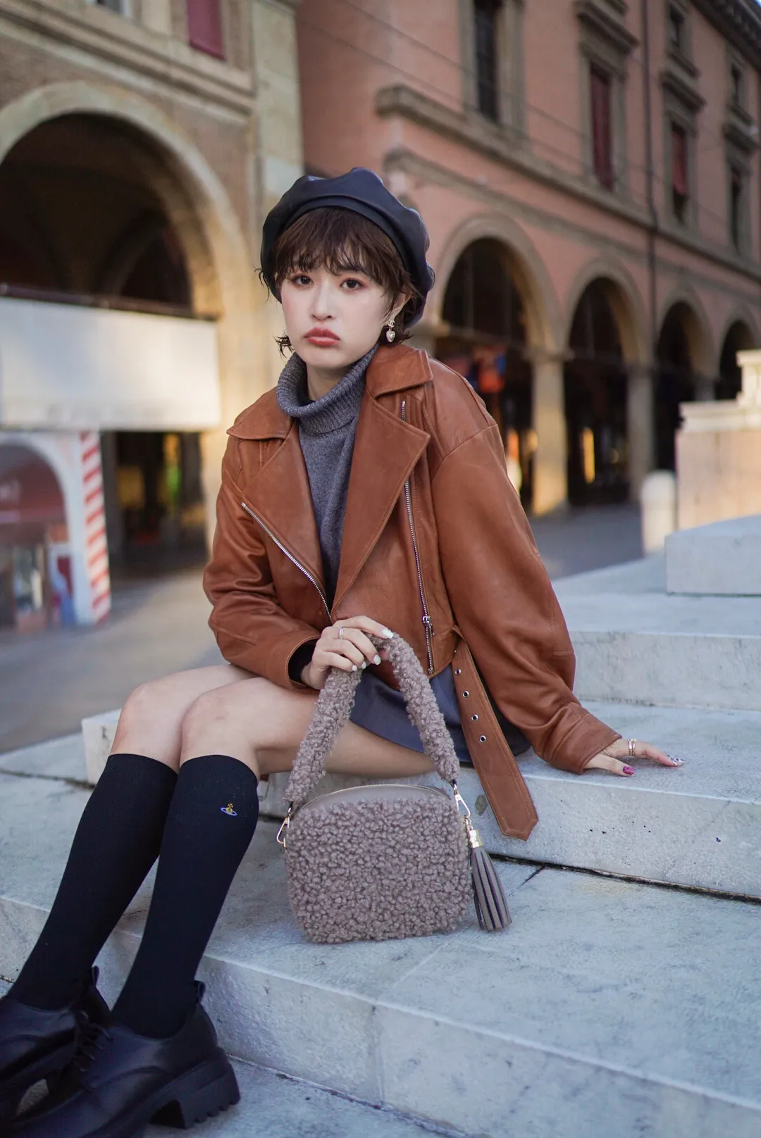 義大利製真皮泰迪毛毛流蘇包