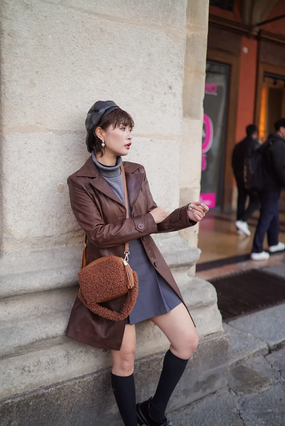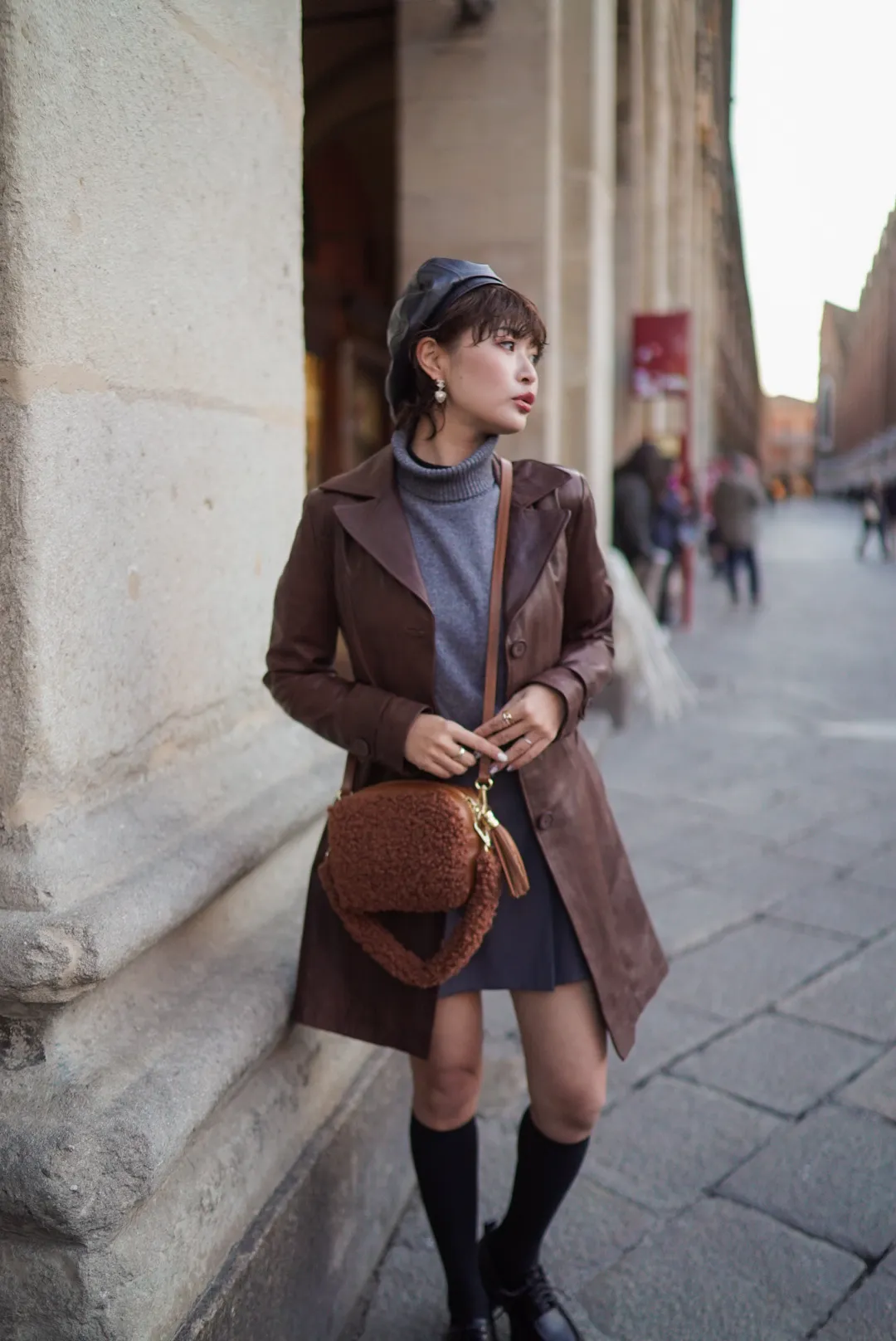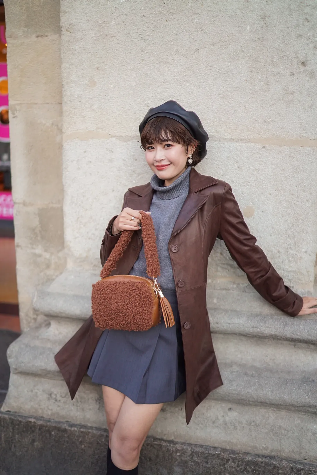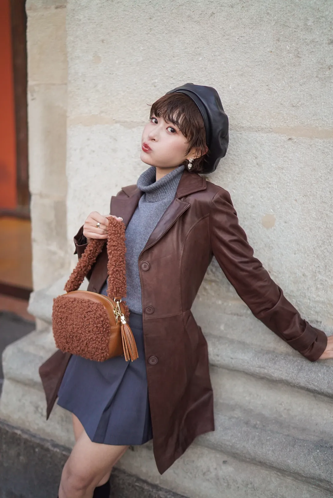 義大利製真皮泰迪毛毛流蘇包