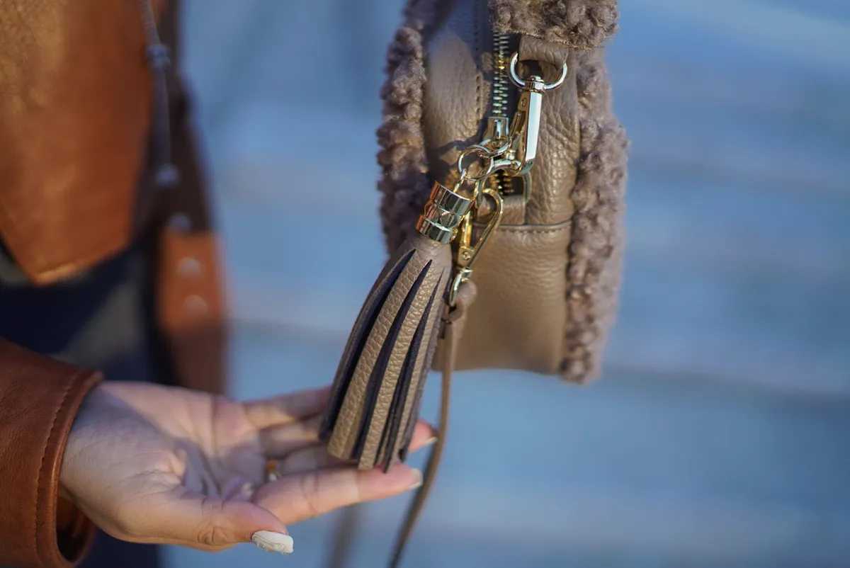 義大利真皮泰迪毛毛流蘇包 1880元