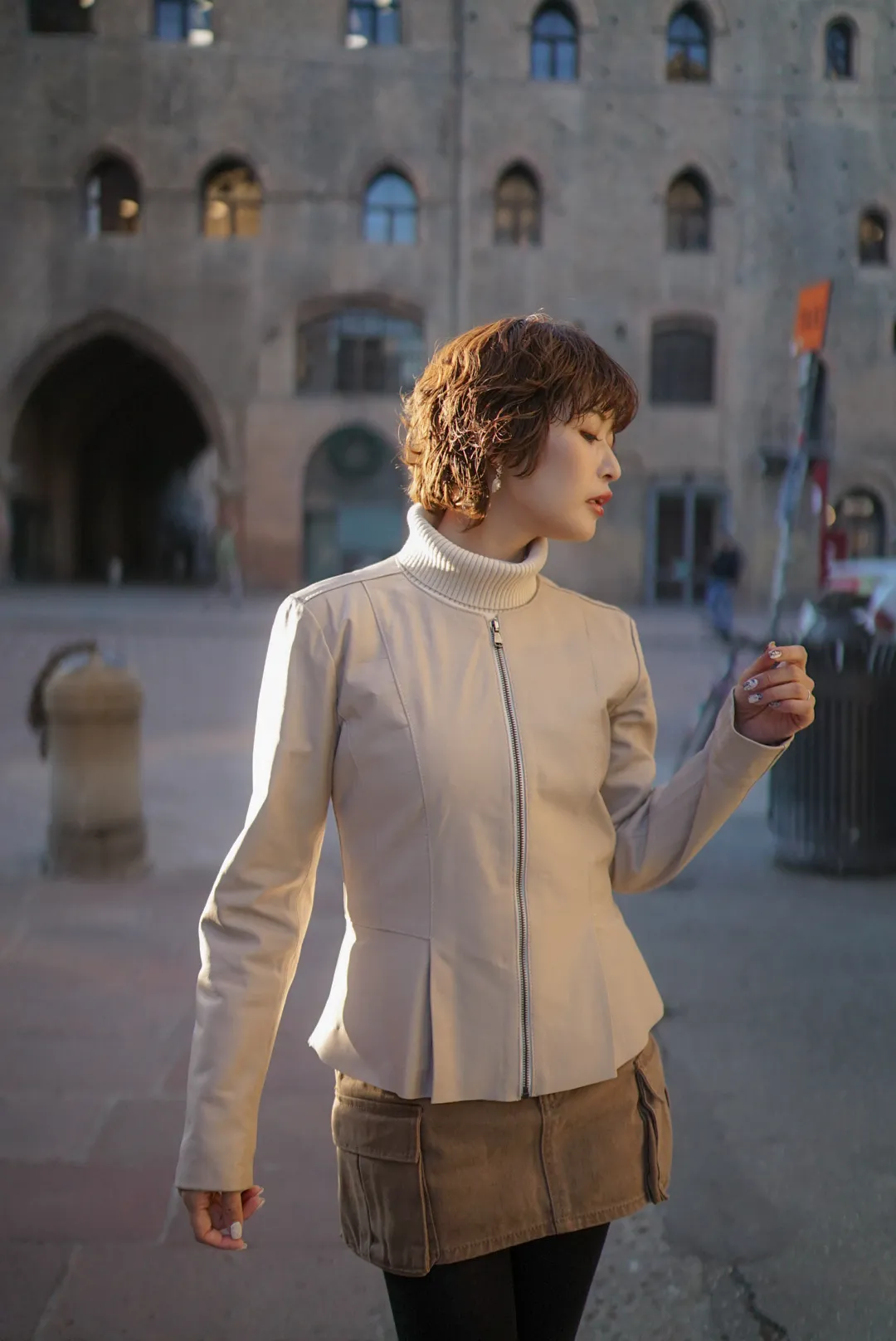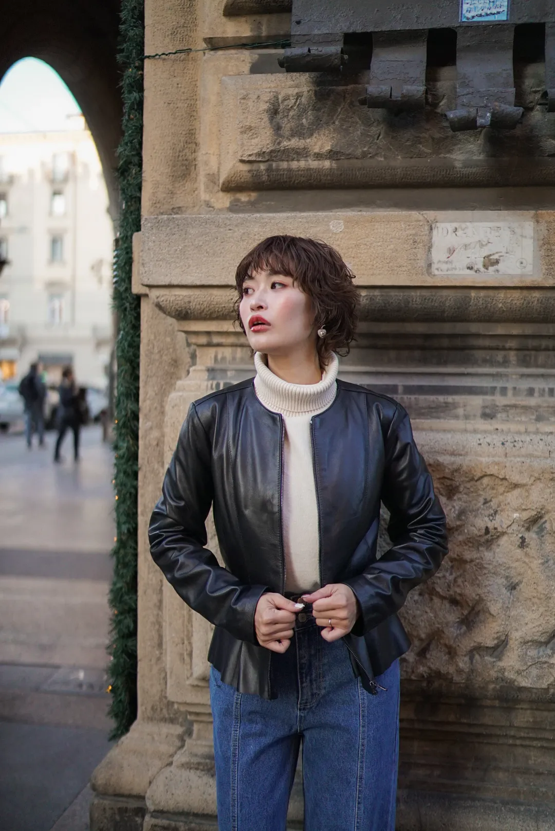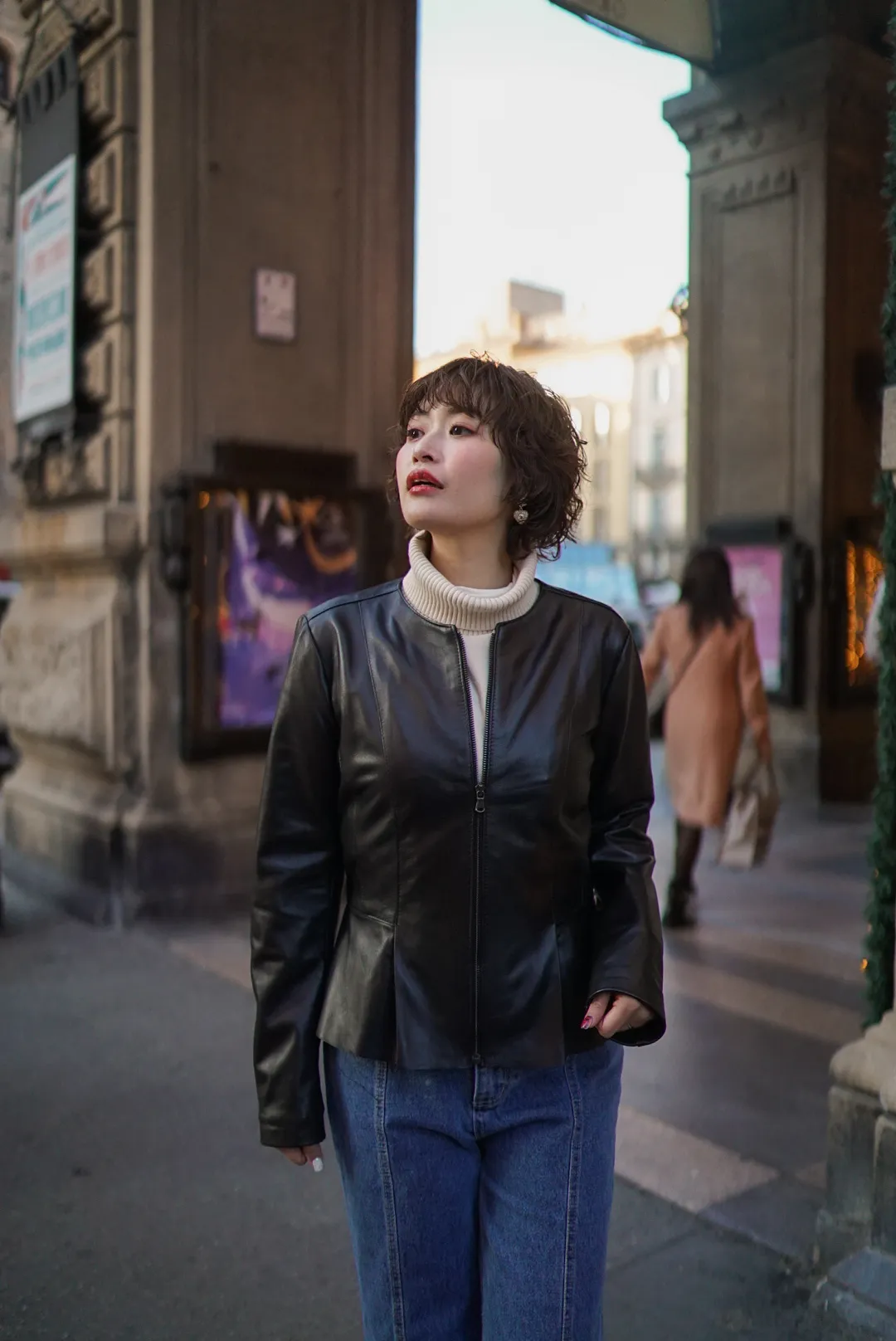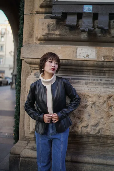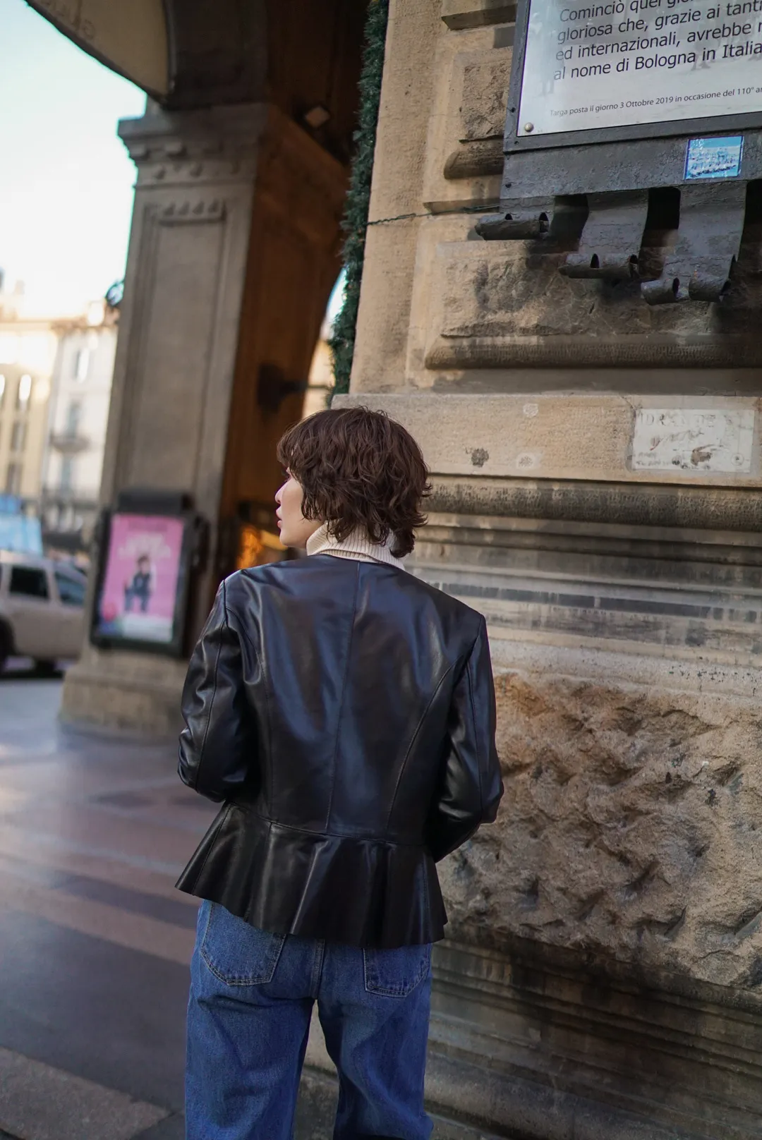 義大利小羊皮下擺荷葉皮衣