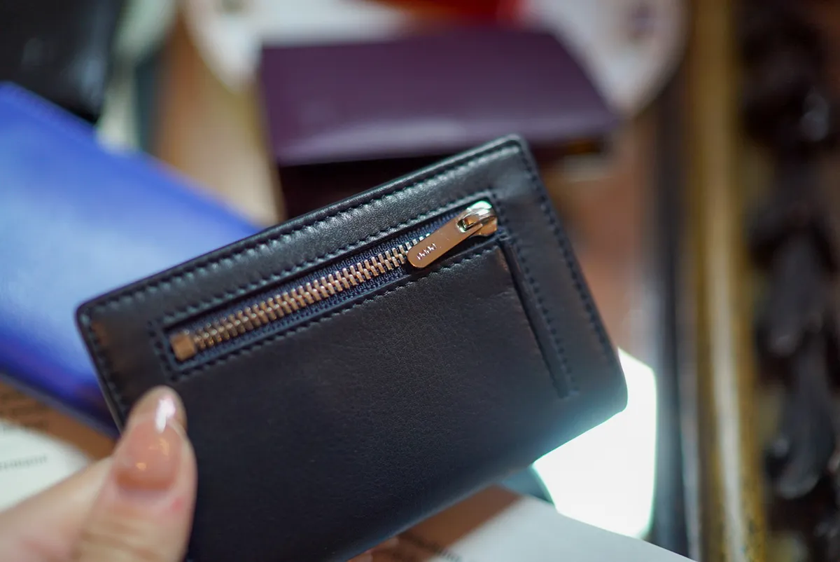 6 個信用卡口袋, 1 個鈔票層,1 個帶拉鍊零錢袋 ,2 個暗層