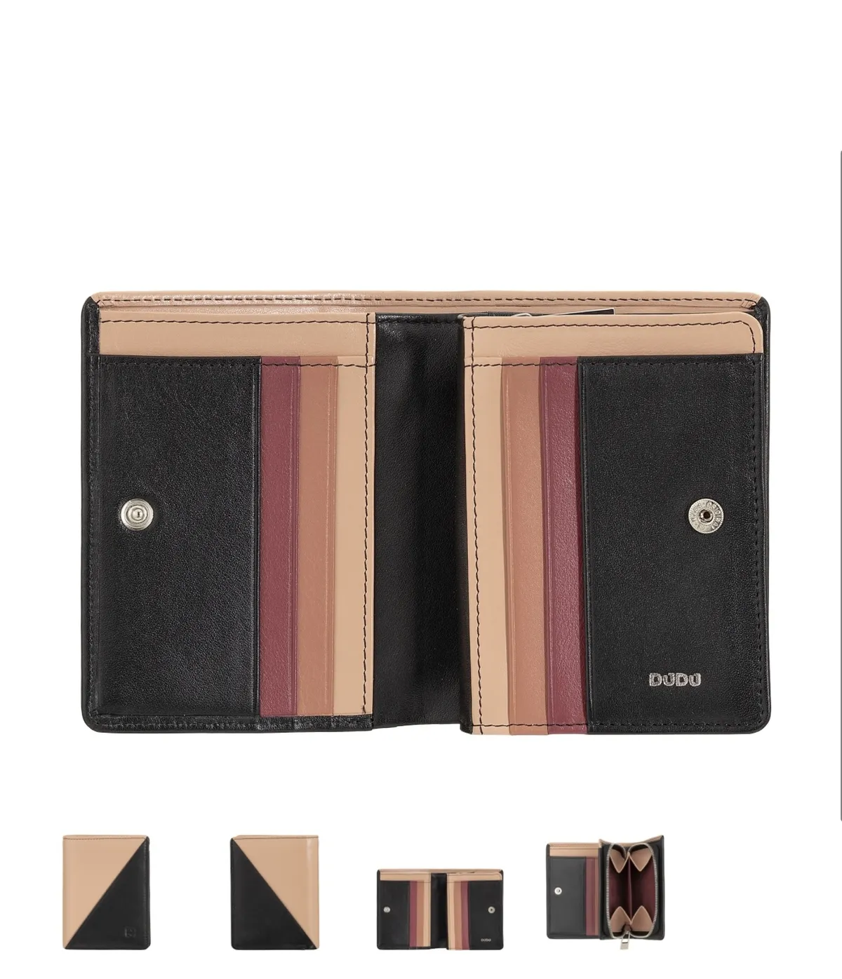 D62威尼斯品牌幾何風短夾 2680元 深綠,黑,桃紫,紅,深藍 尺寸(錢包關閉時):9 x 11.7 x 3 cm 重量:130公克 組成:7 個信用卡口袋、1 個雙層零錢袋、1 個鈔票口袋和 5 個額外夾層