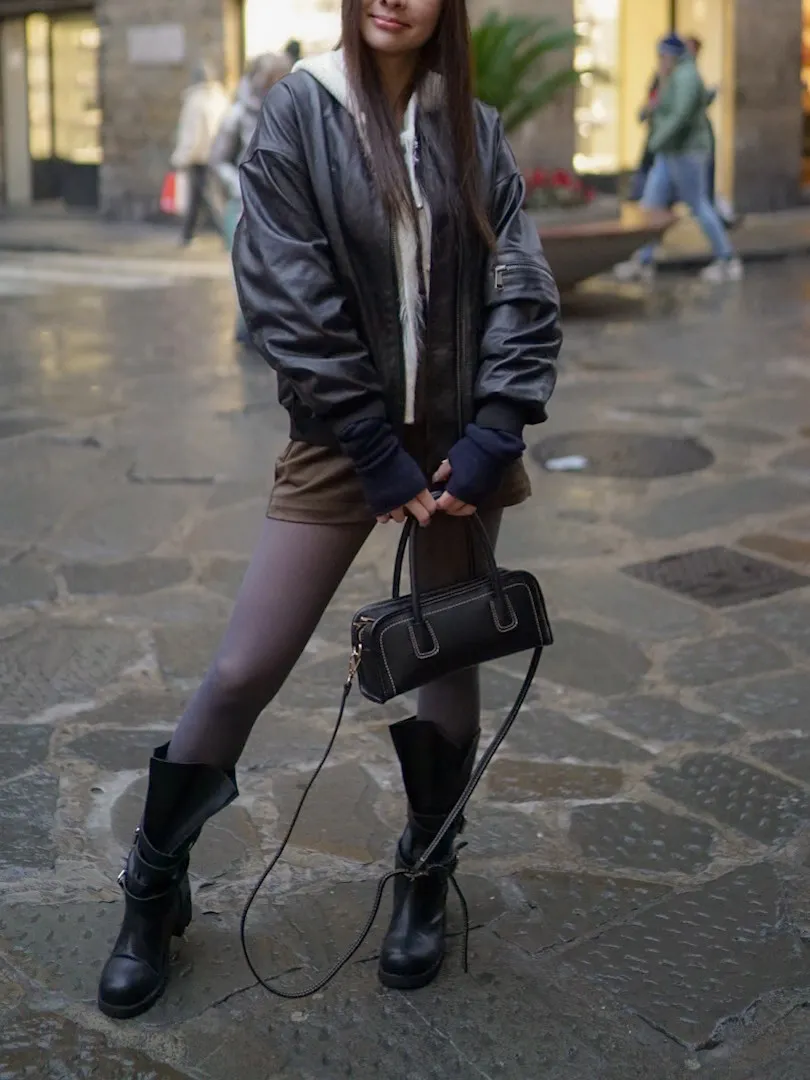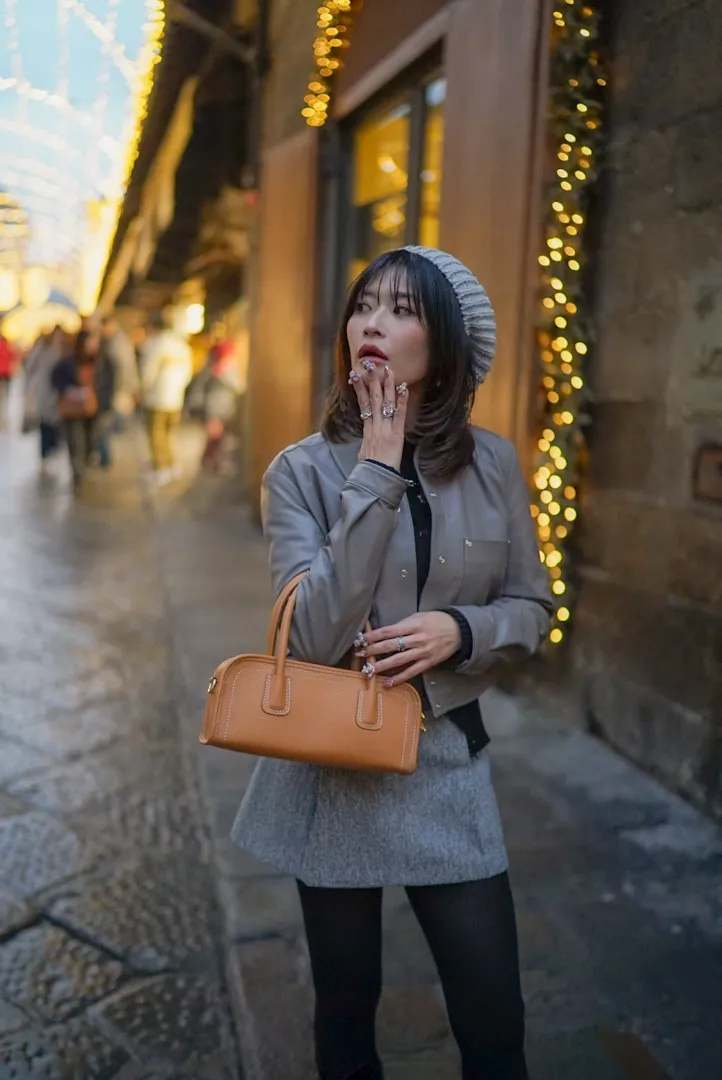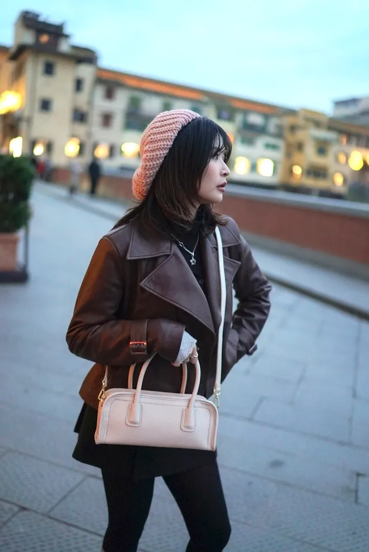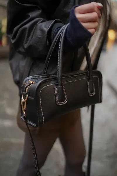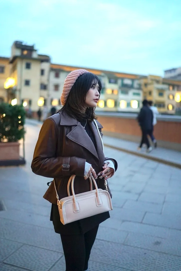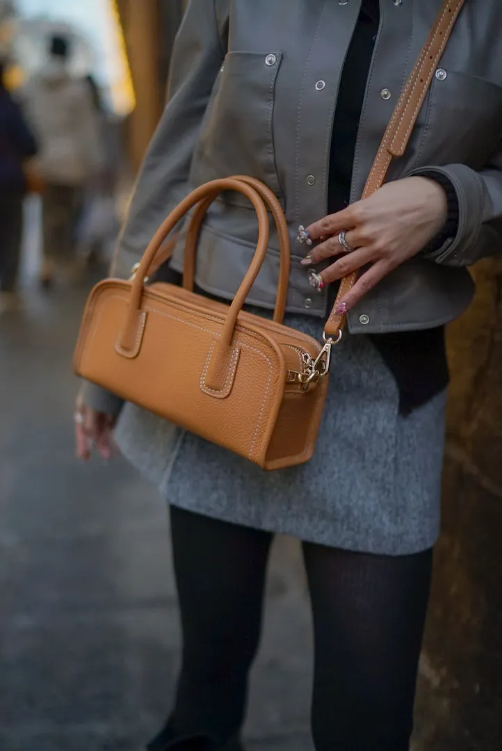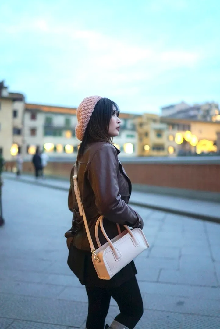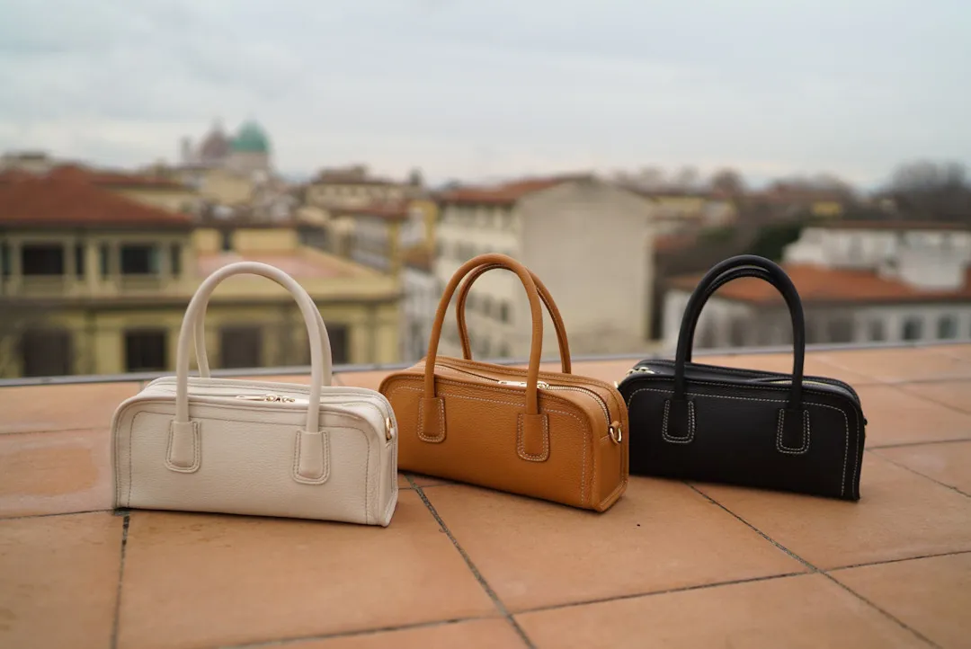 IJ05義大利製真皮外縫斜背小法棍包 2480元