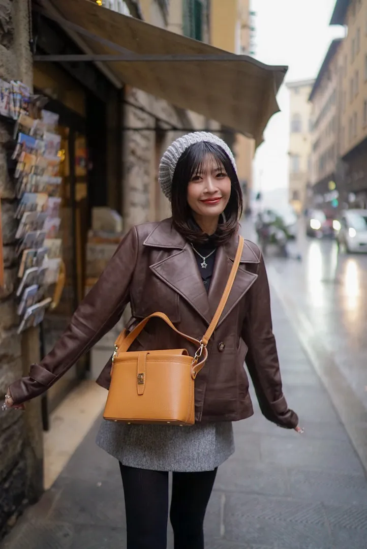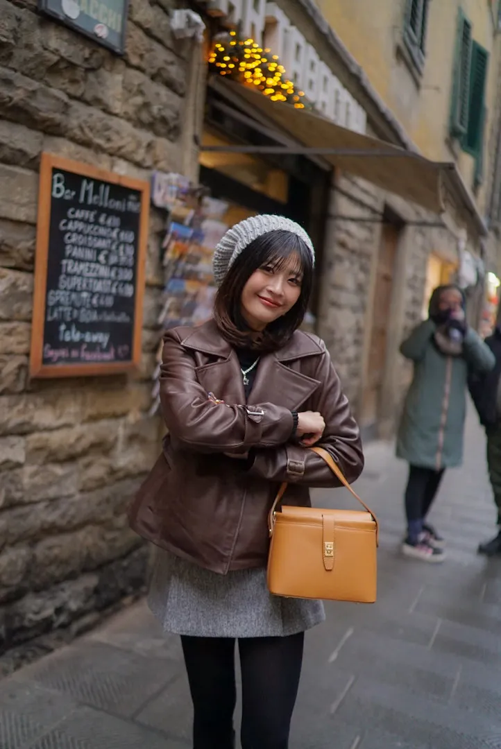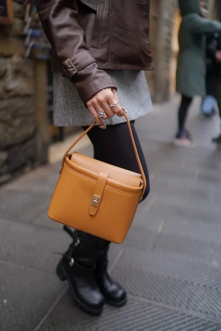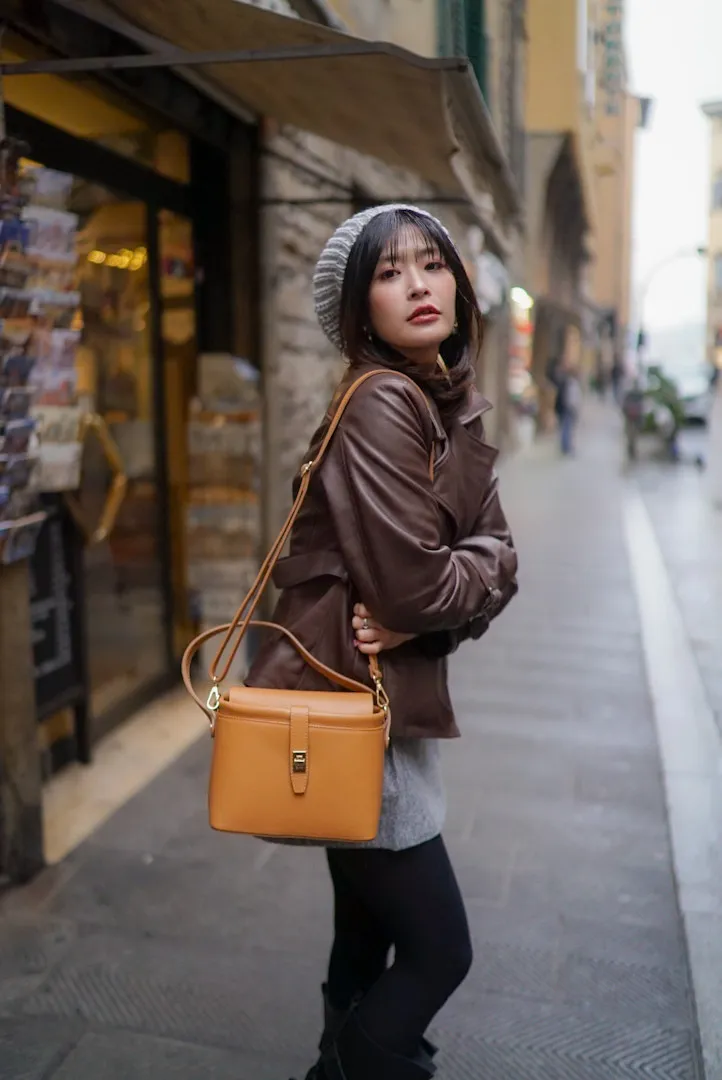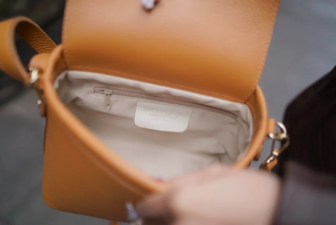 義大利製真皮手提翻蓋小盒包(中款)