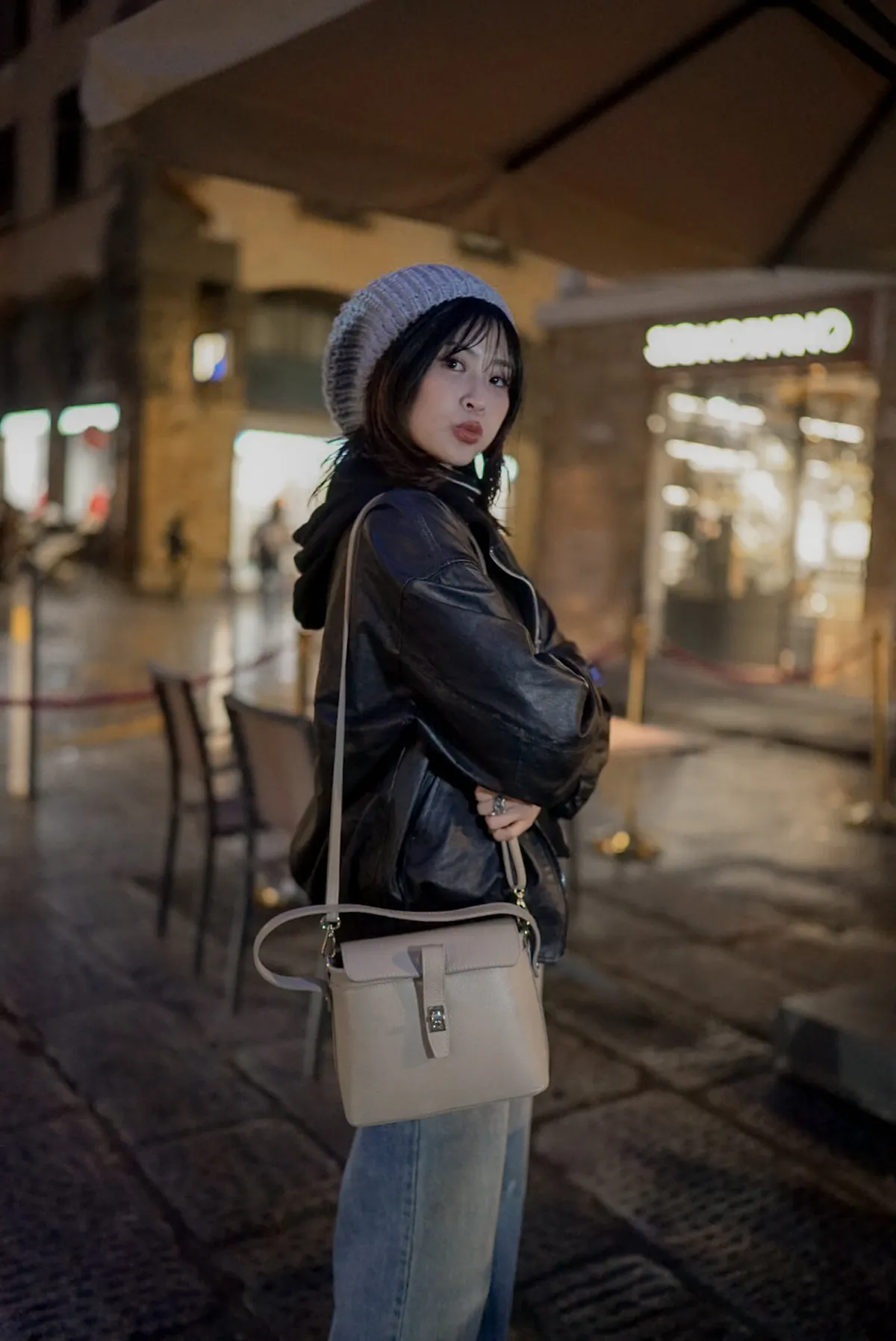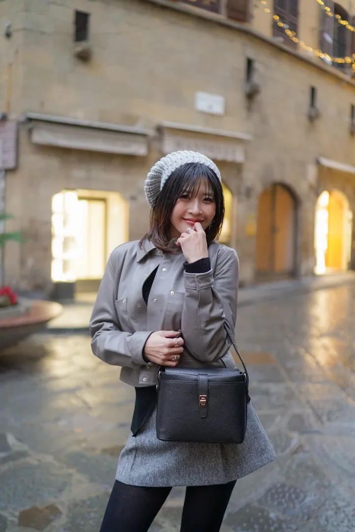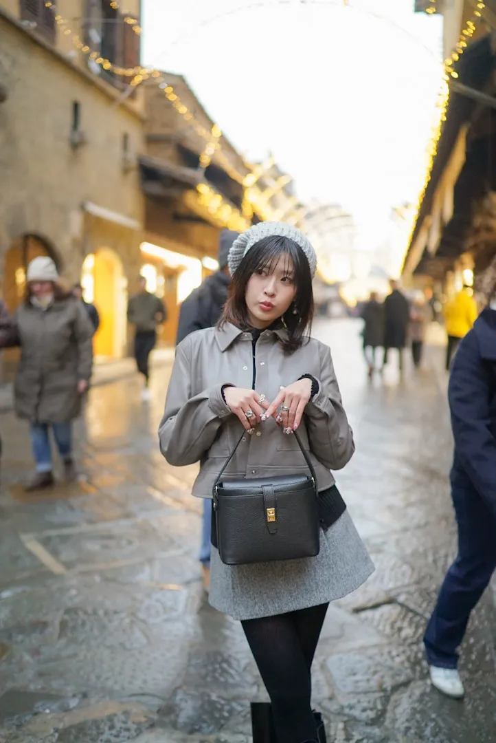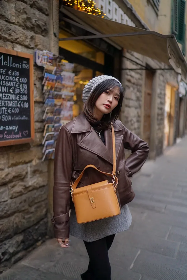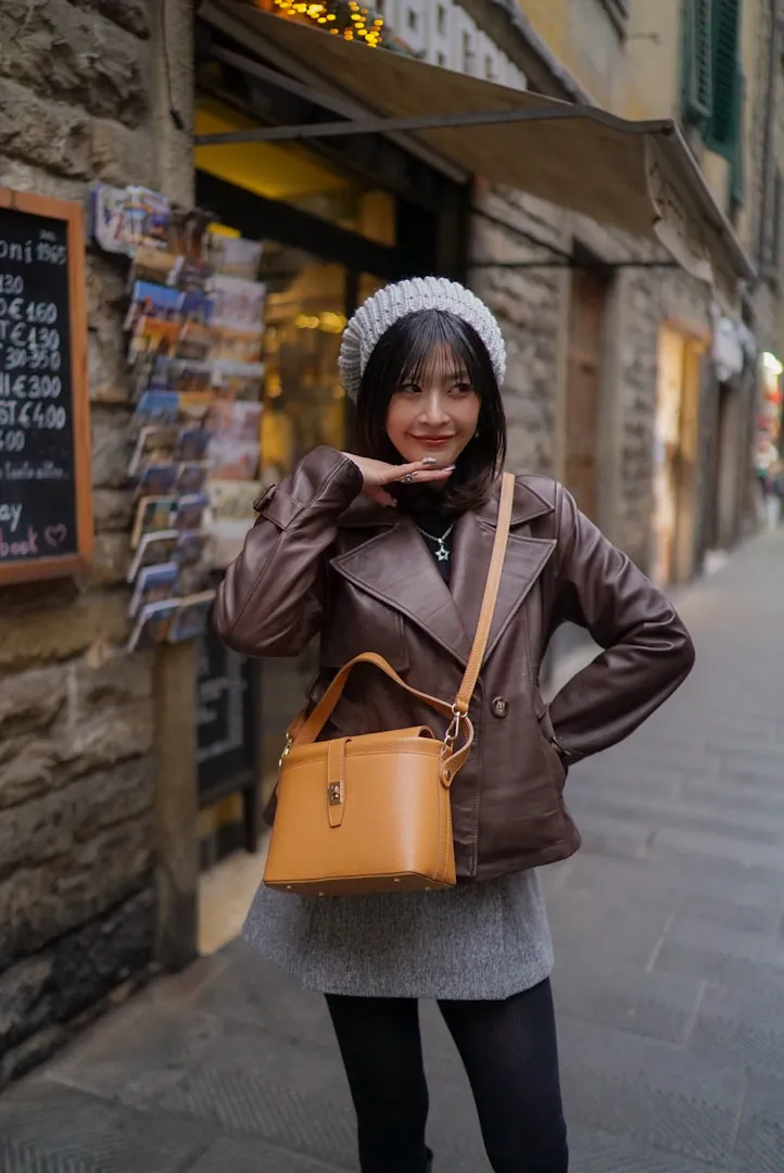 義大利製真皮手提翻蓋小盒包(中款)