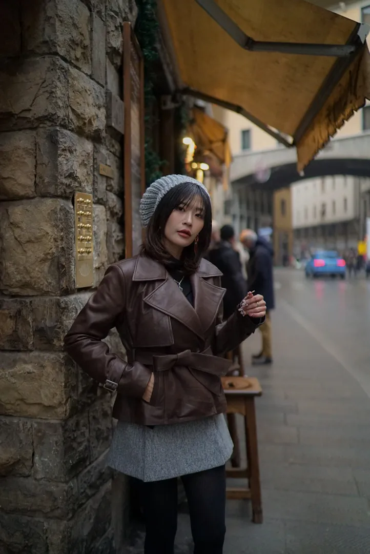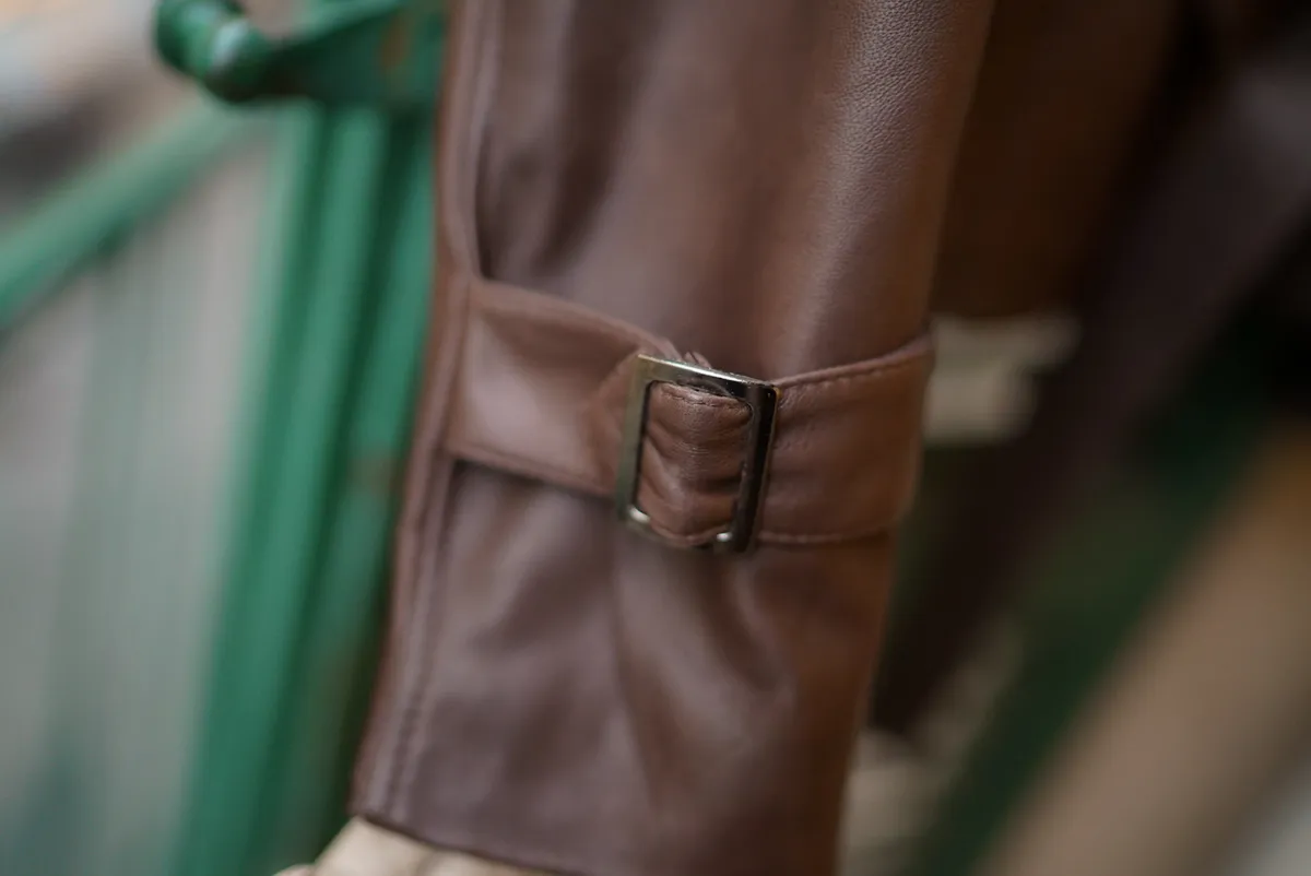 義大利製自訂款小羊皮風衣剪裁皮衣