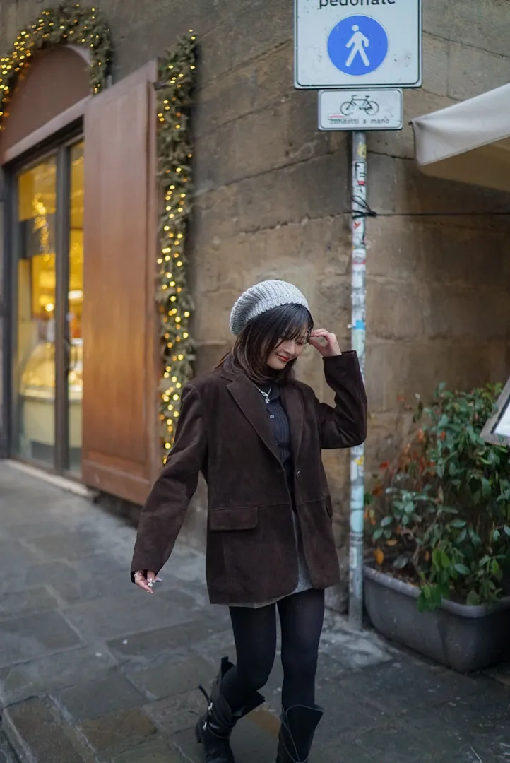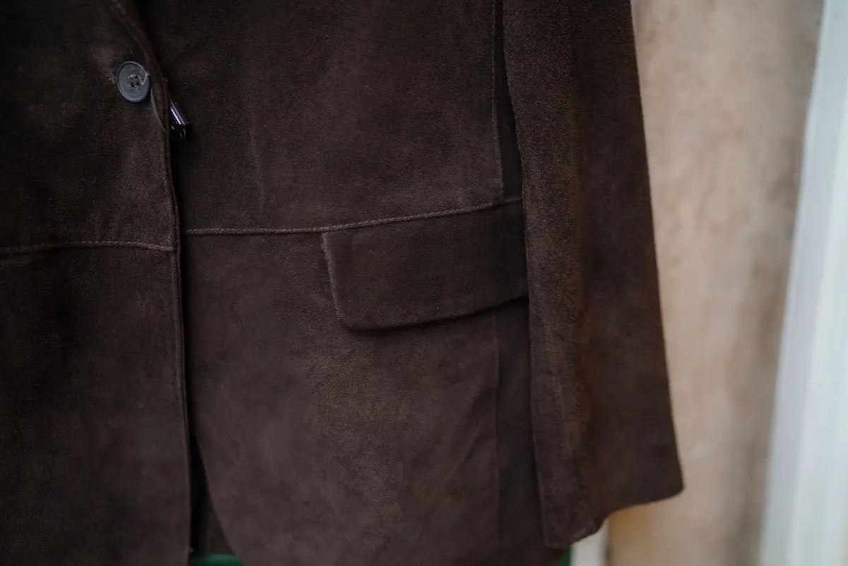 義大利製真麂皮寬版長版西裝外套