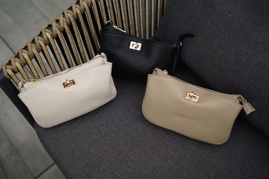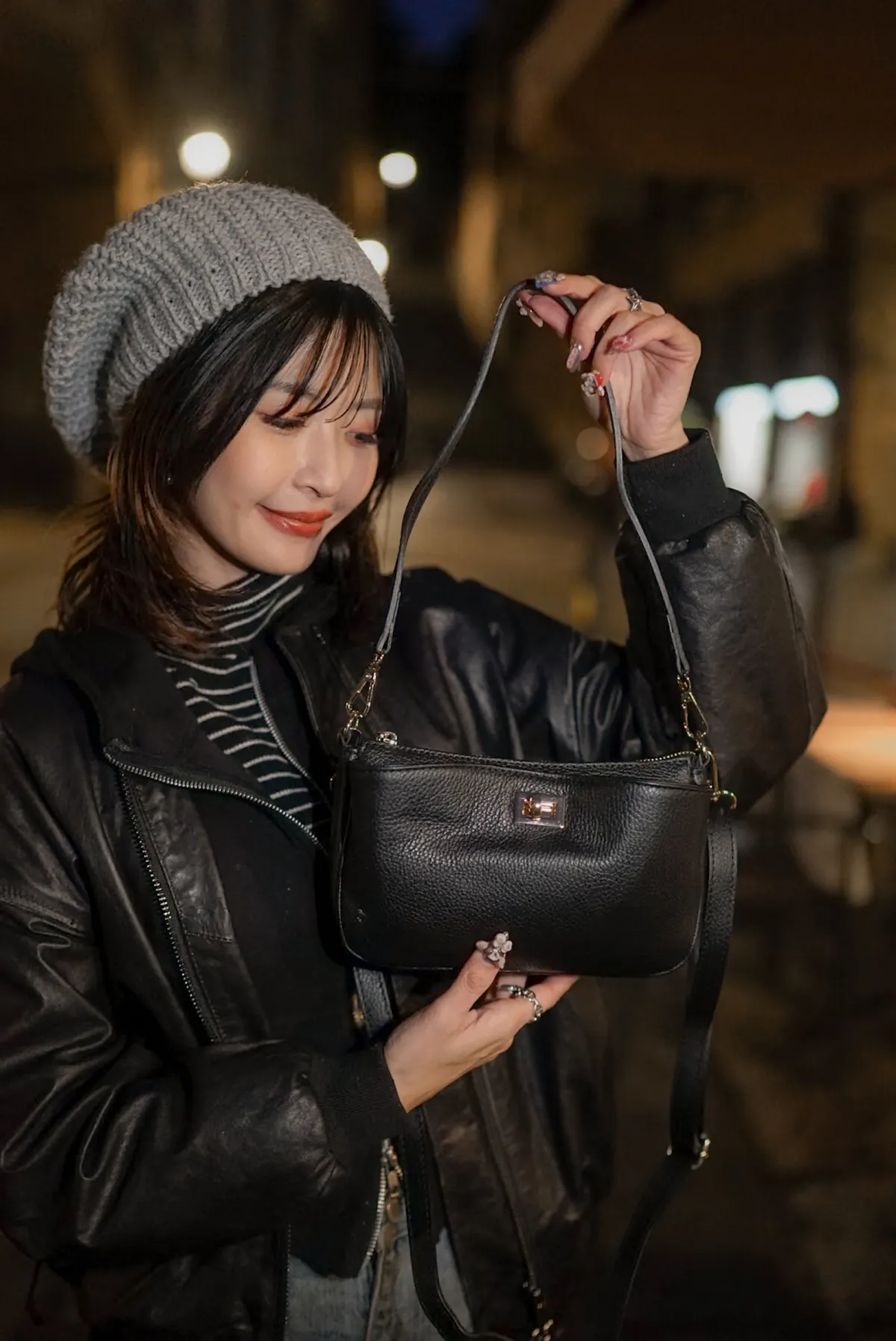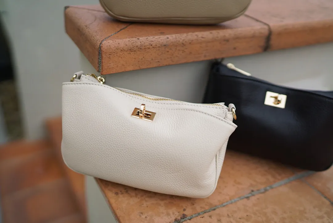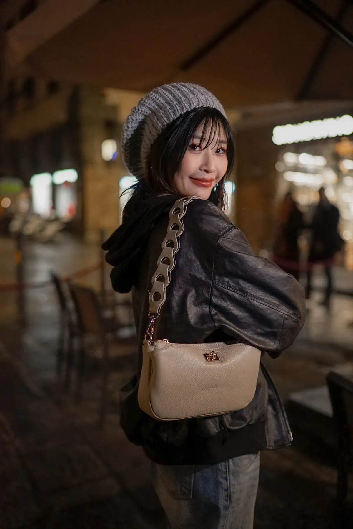 IJ16金扣轉扣真皮雙層小方包 1980元(附雙背帶)
