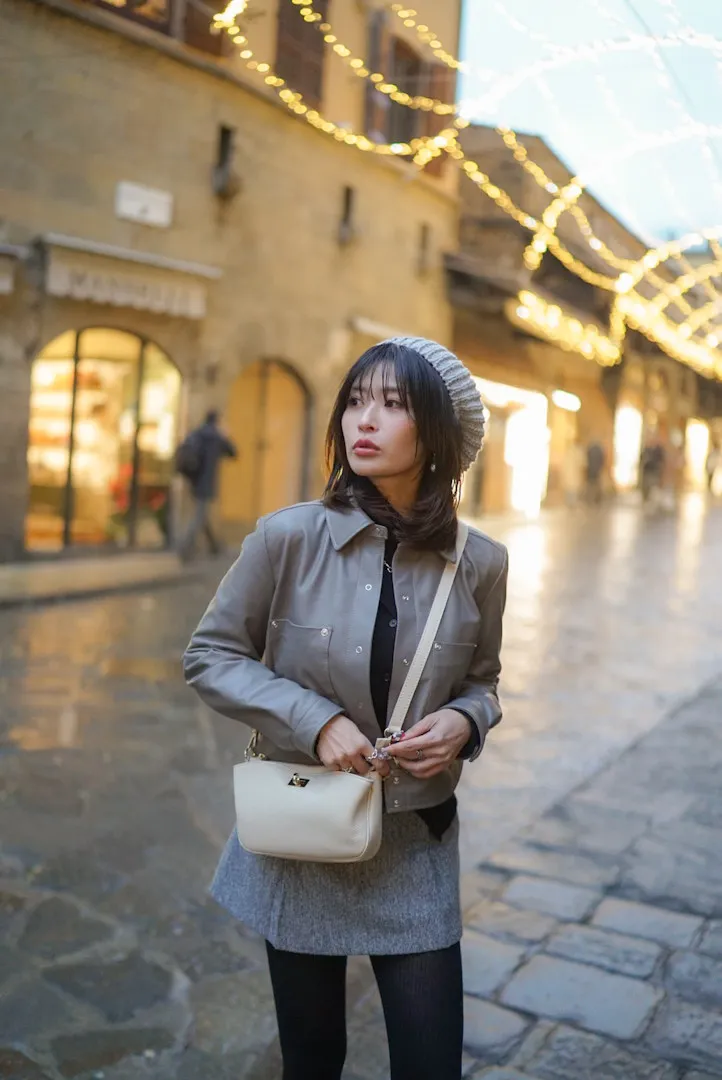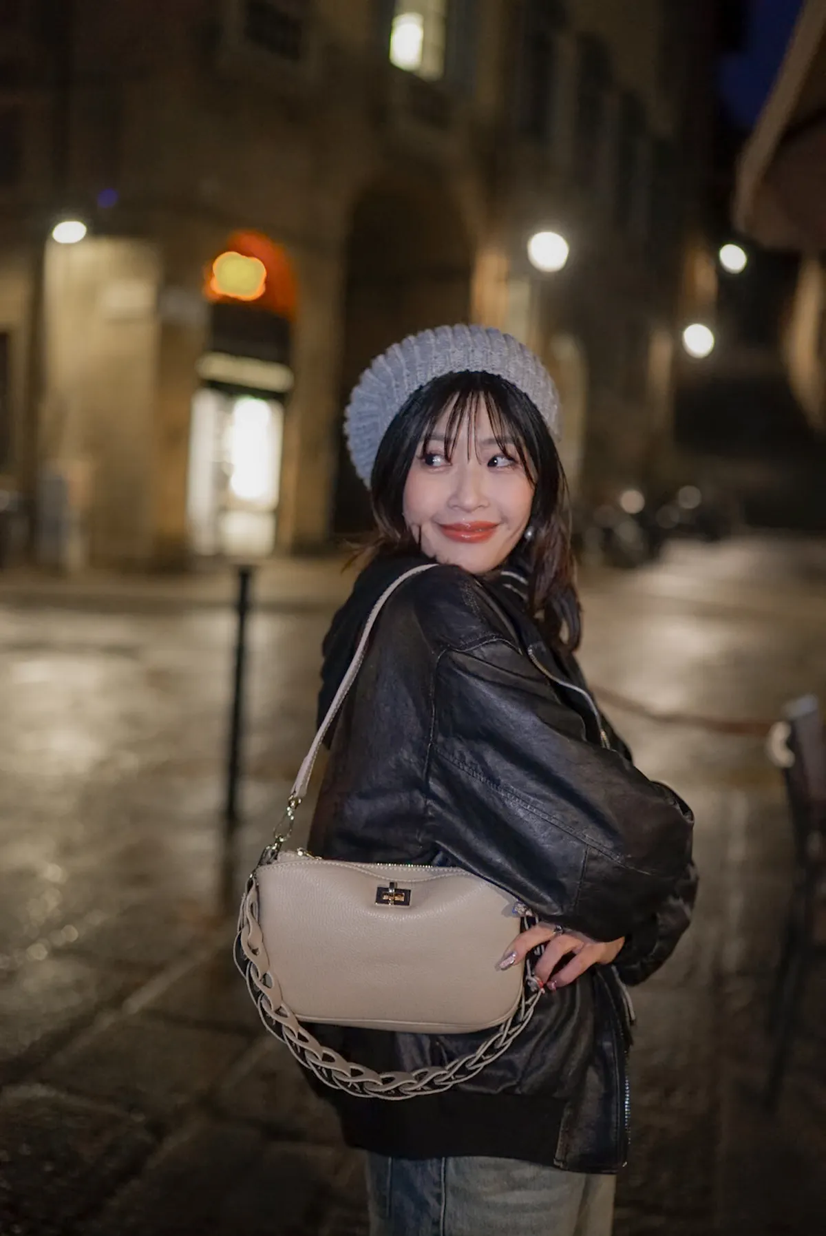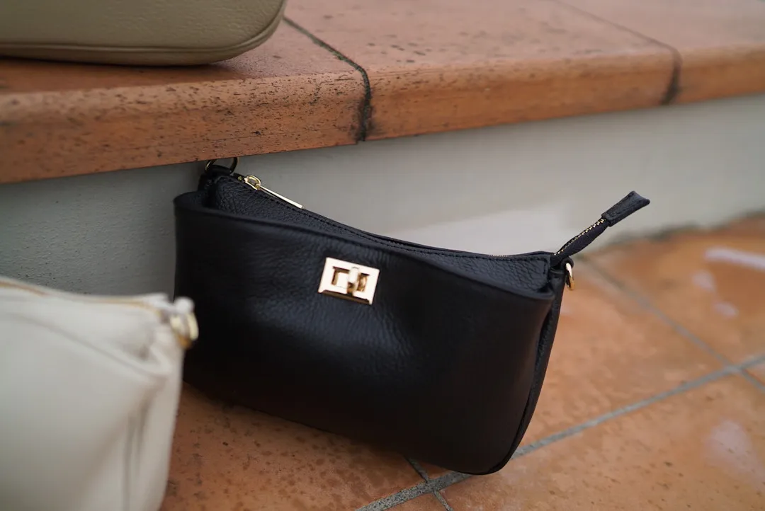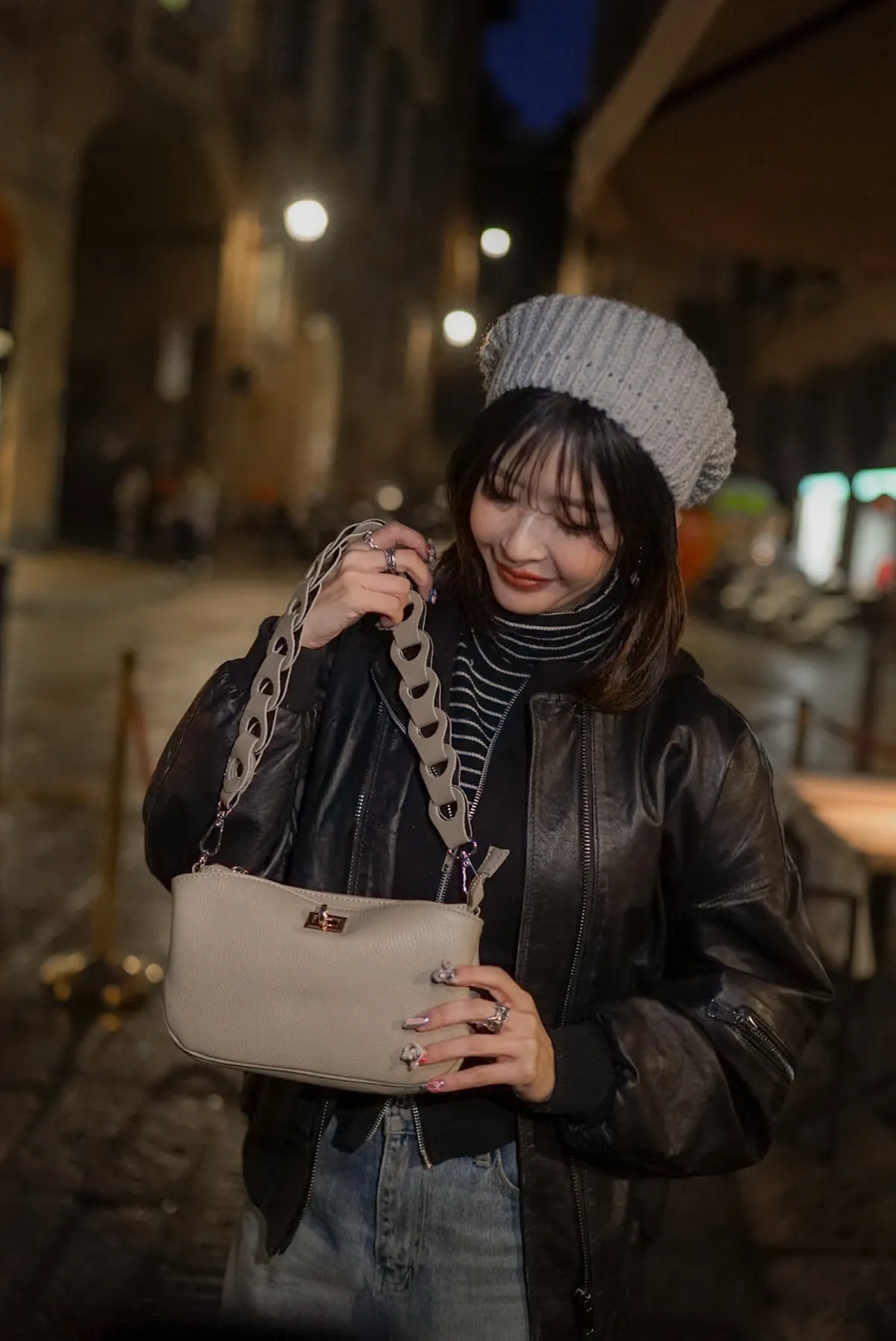 IJ16金扣轉扣真皮雙層小方包 1980元(附雙背帶)
