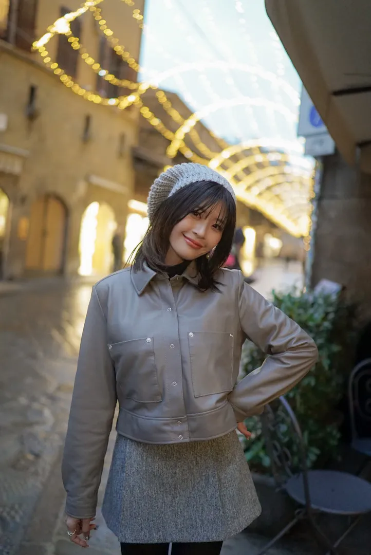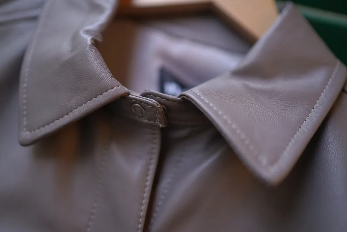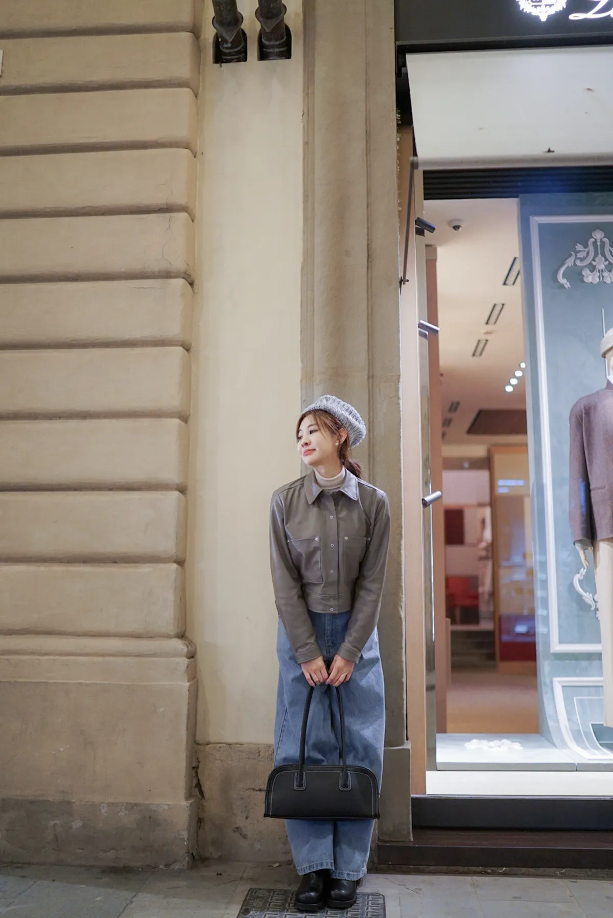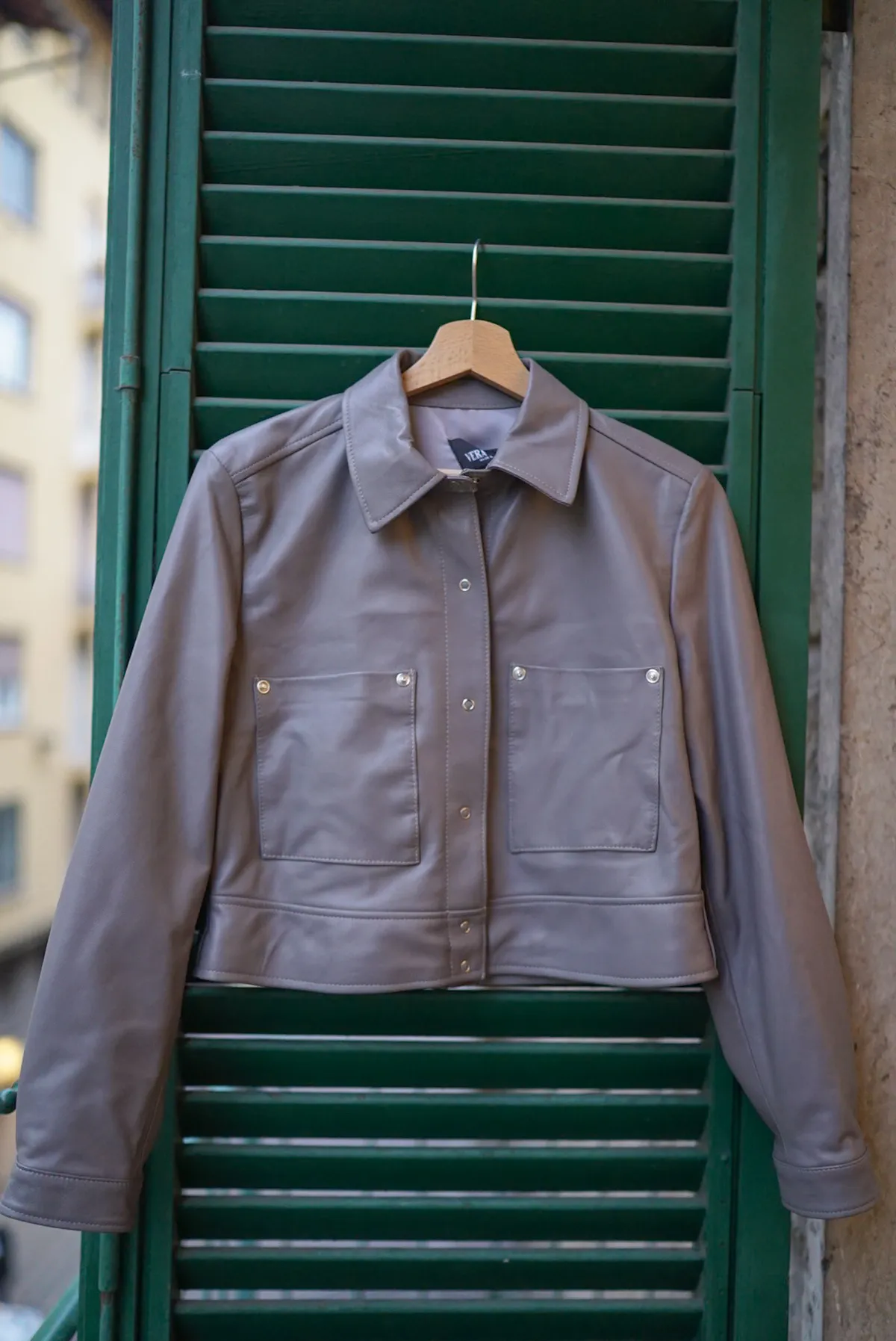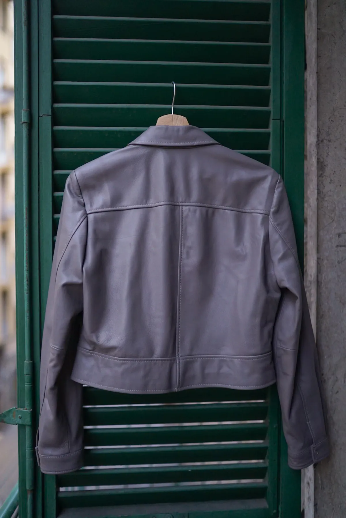 IJ25義大利製灰色襯衫式皮衣 4880元