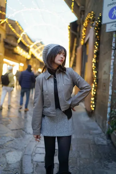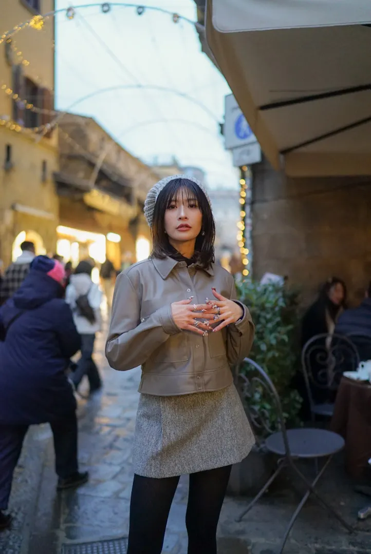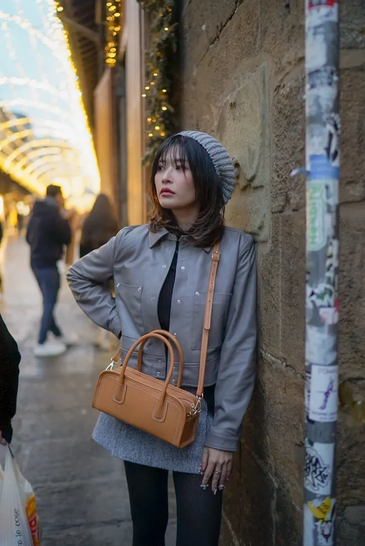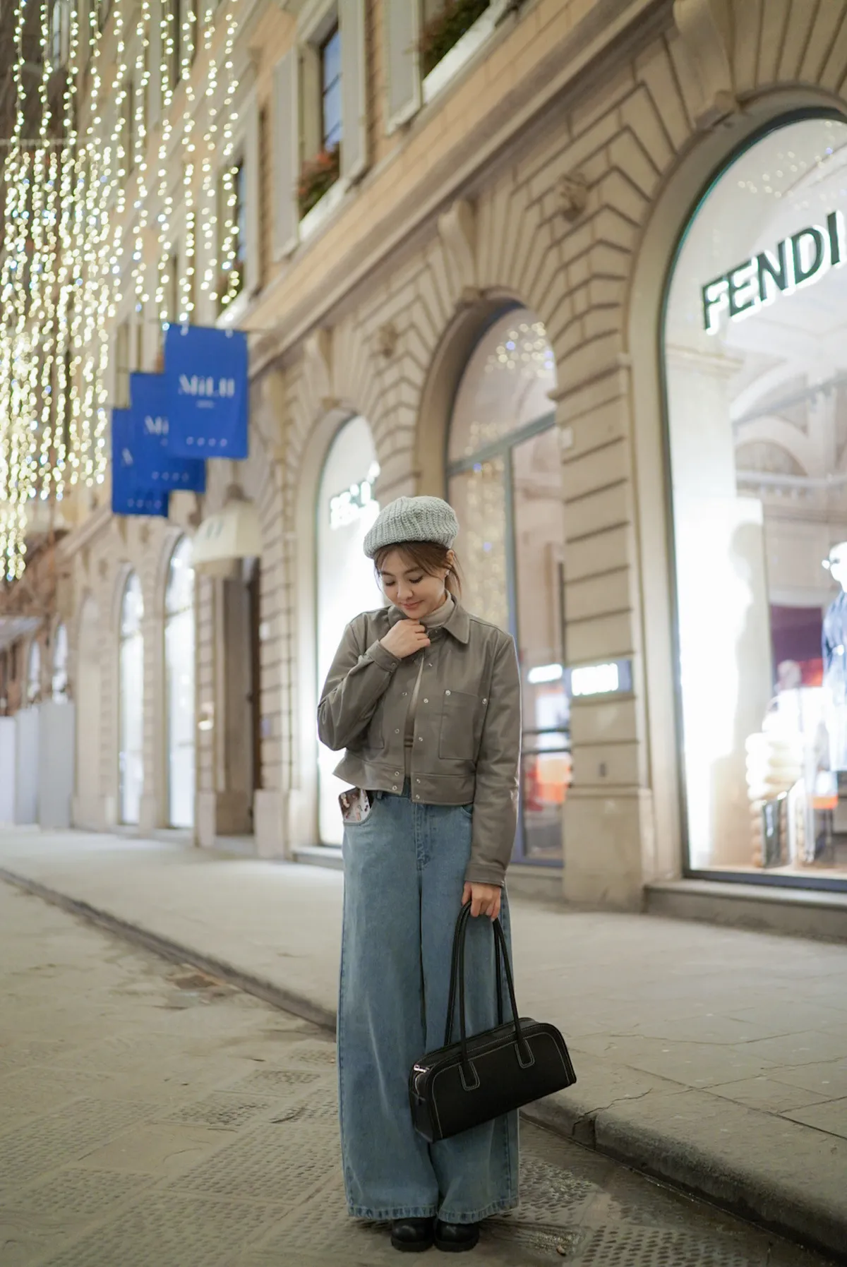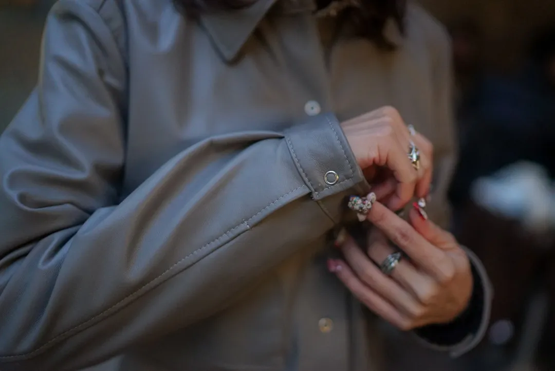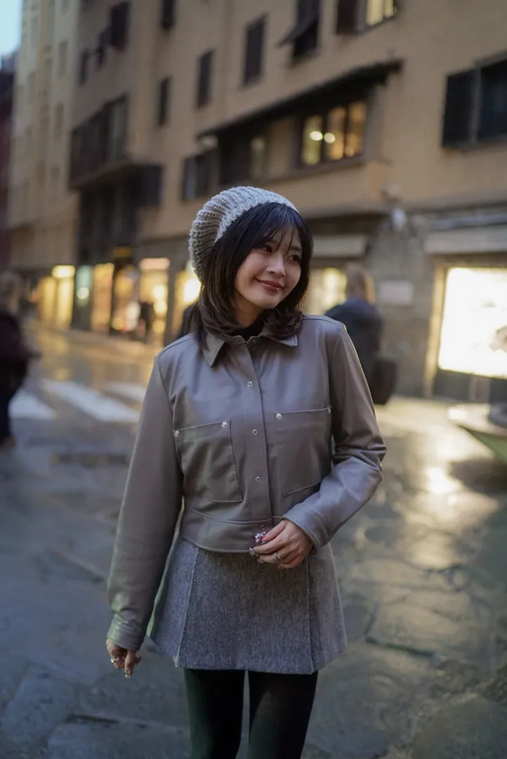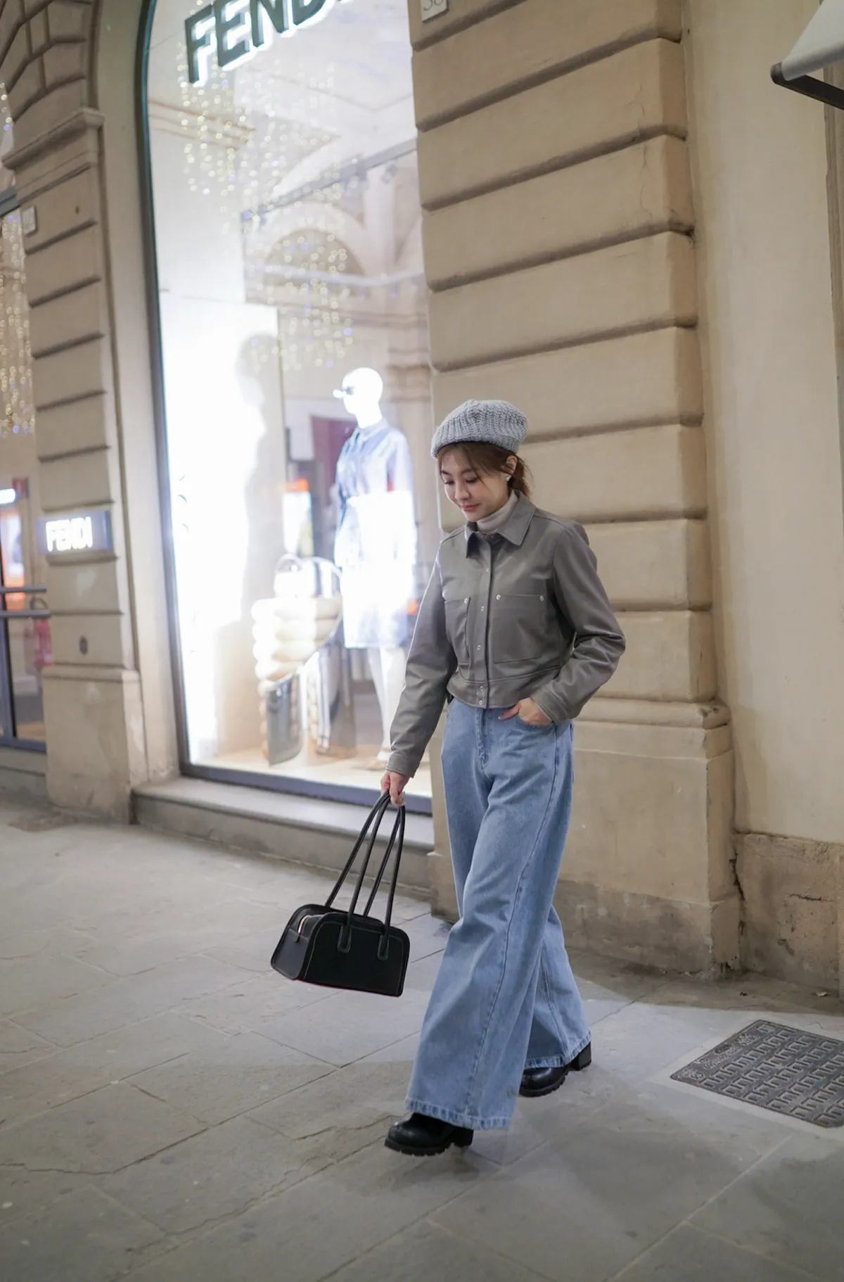 IJ25義大利製灰色襯衫式皮衣 4880元