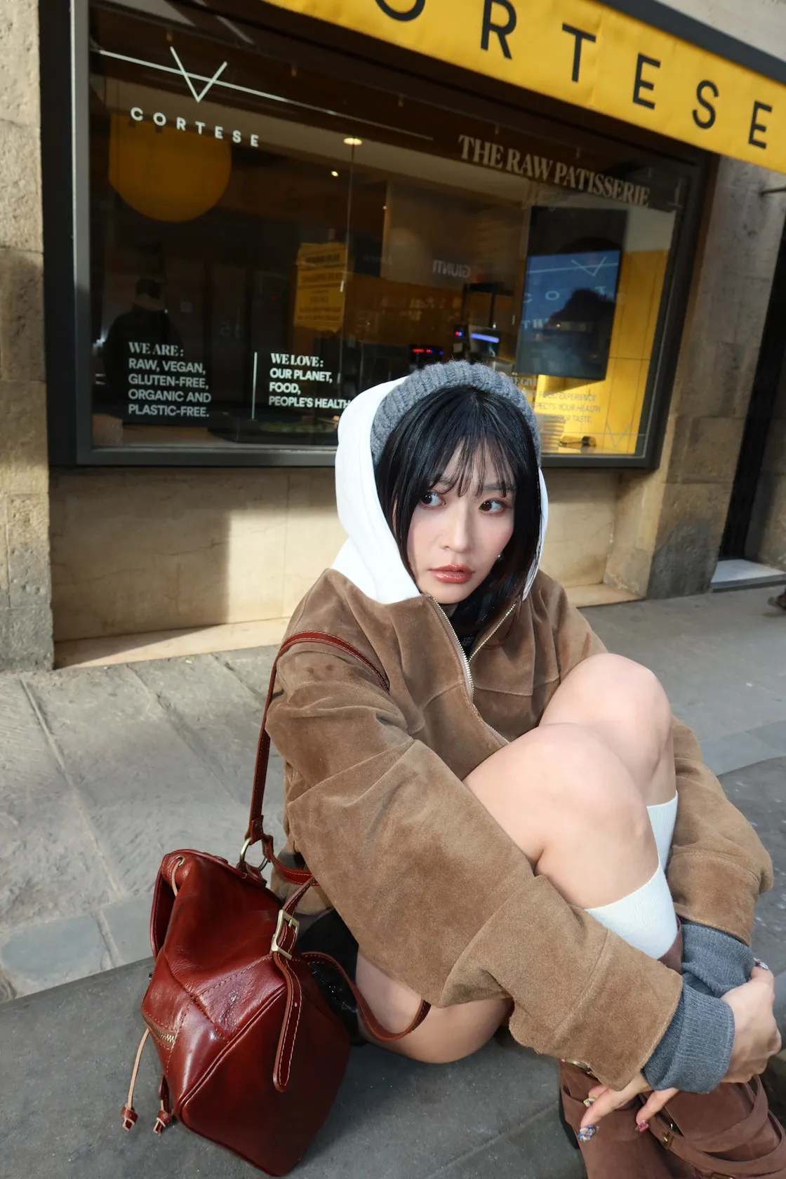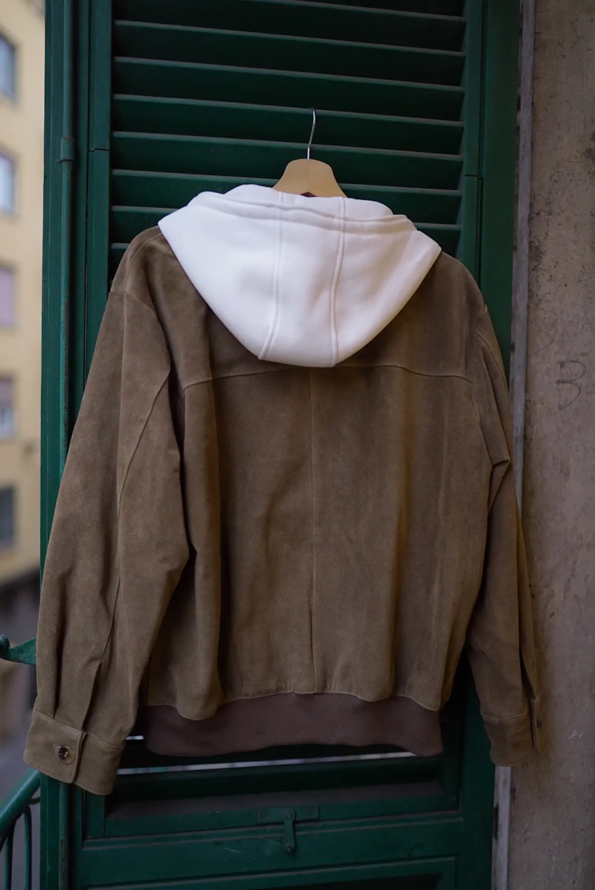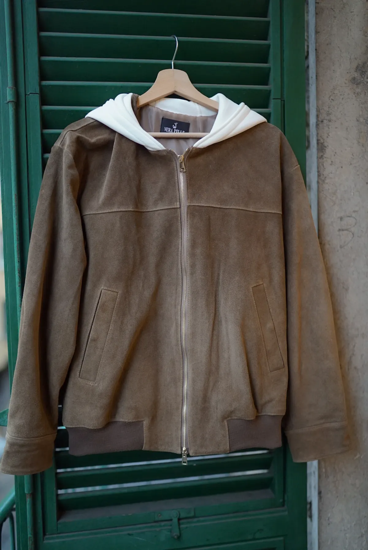 IJ27義大利製棉連帽拼接真麂皮外套 5980元