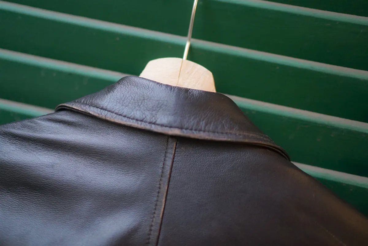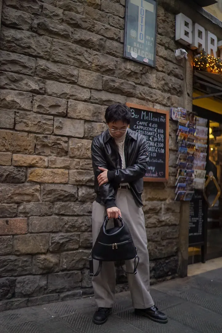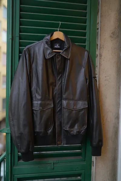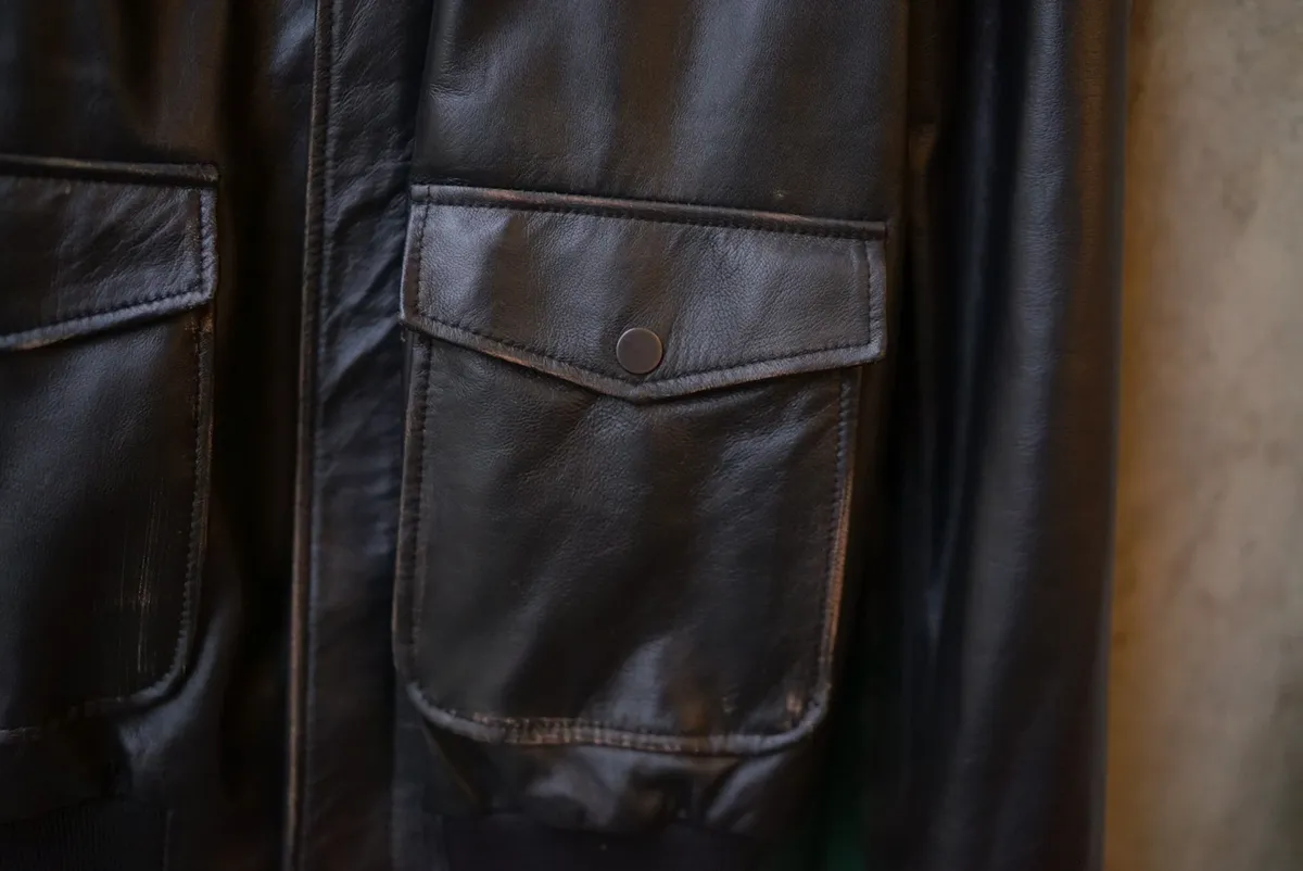 義大利製男款復古刷舊感小羊皮飛行皮衣