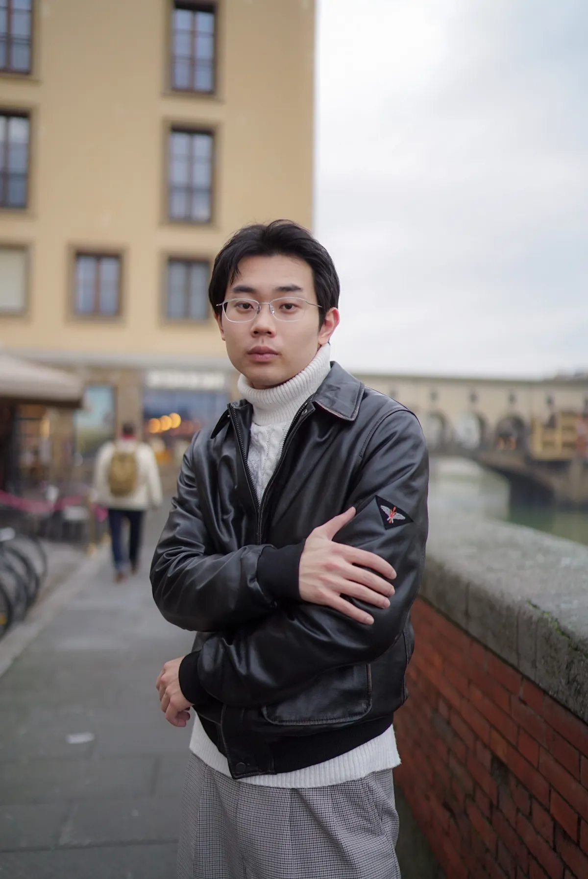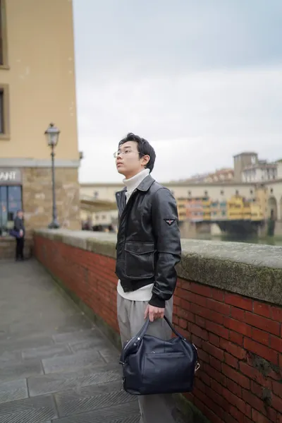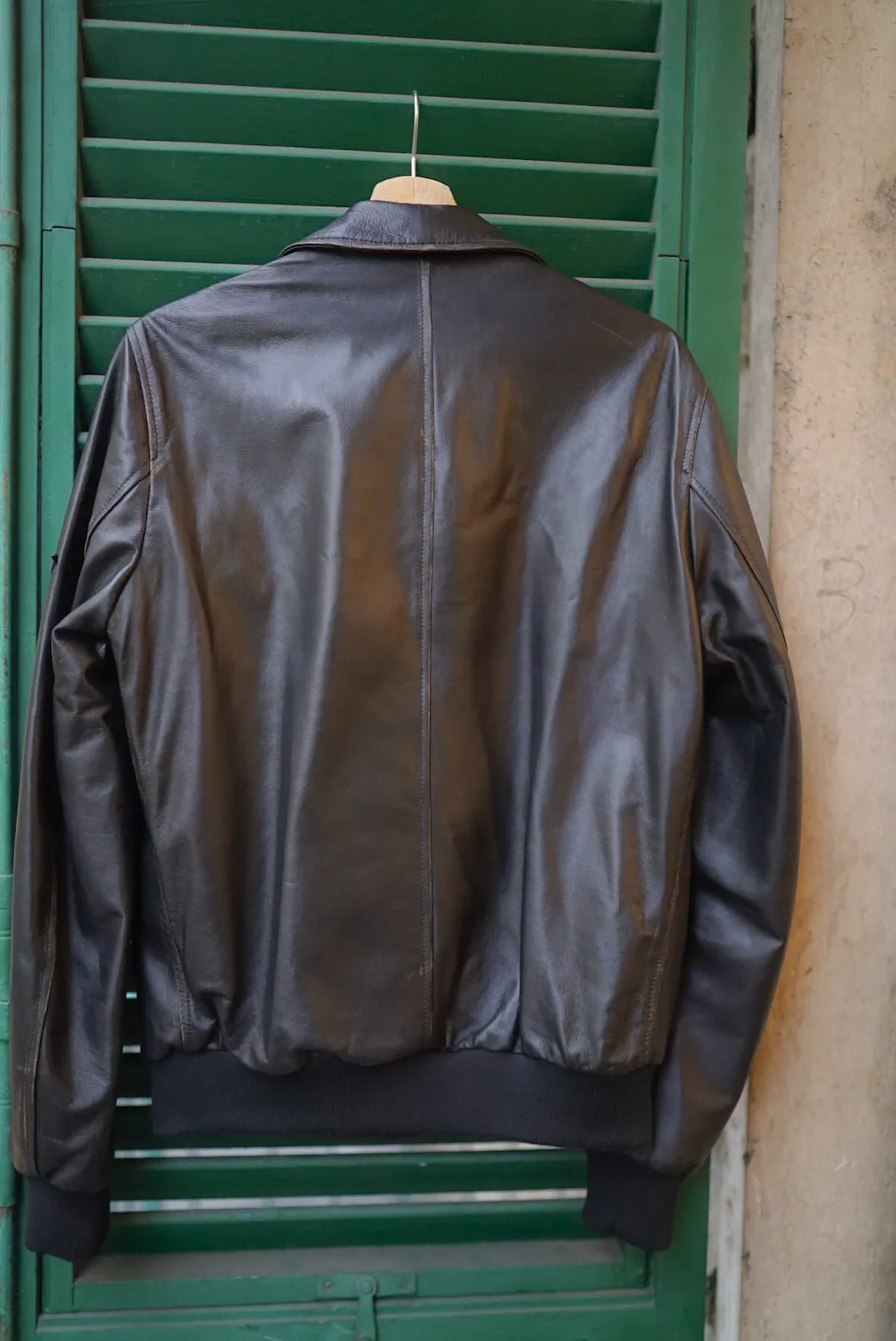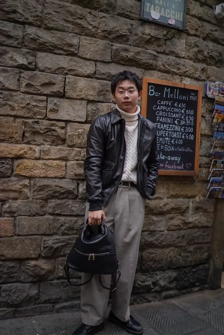 義大利製男款復古刷舊感小羊皮飛行皮衣
