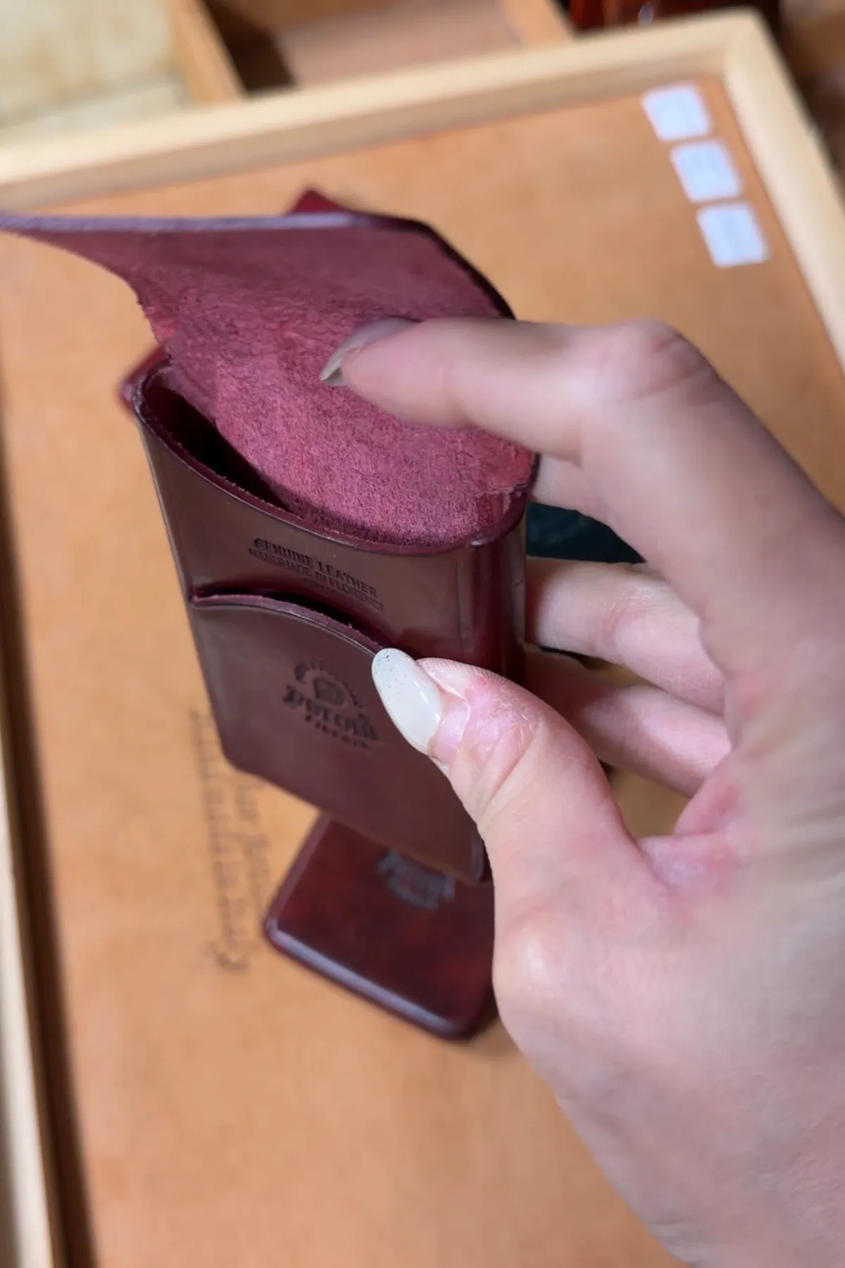 手工翻蓋烙印真皮卡片/名片盒