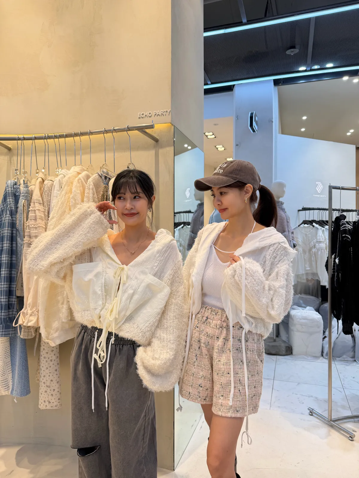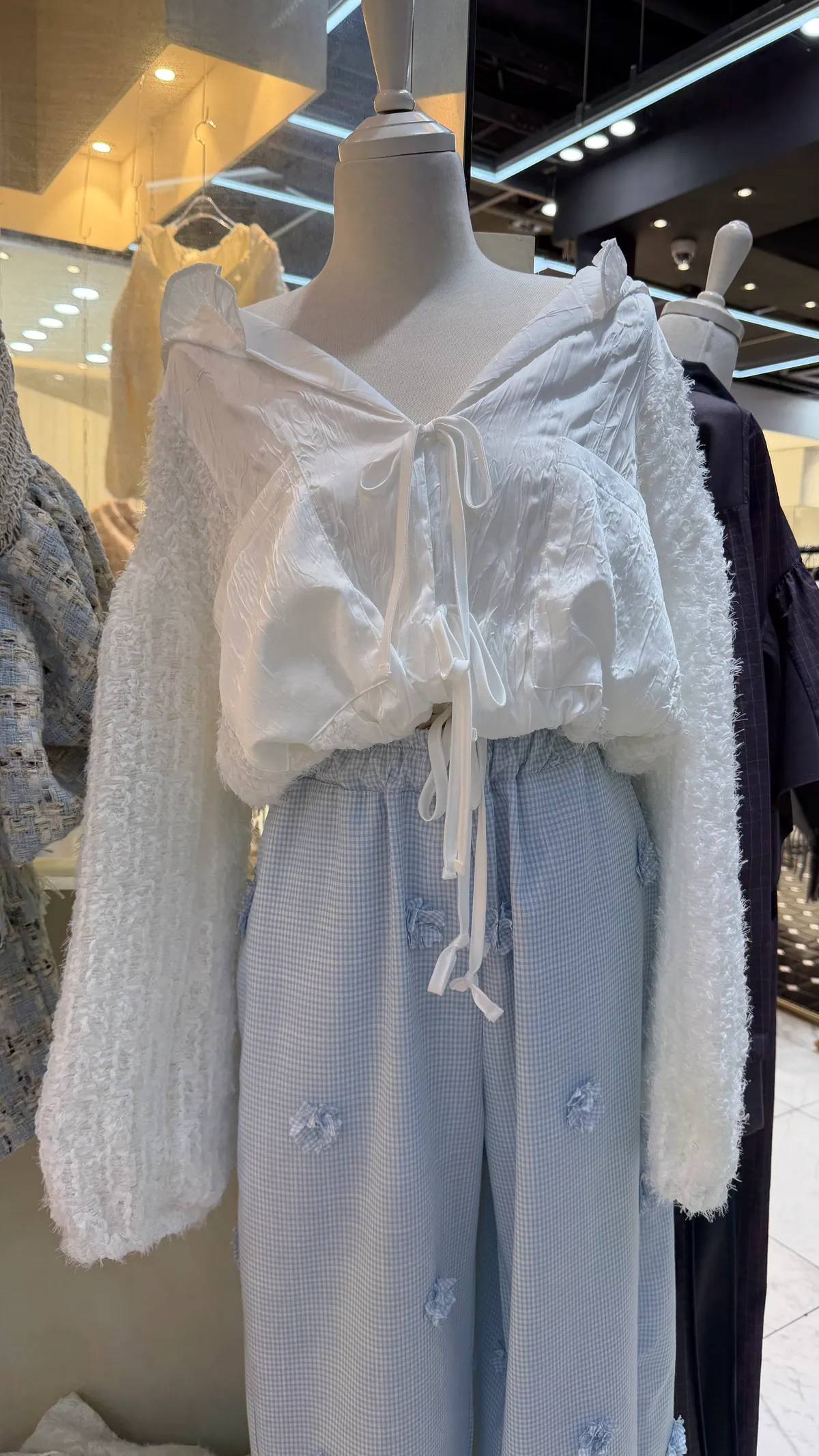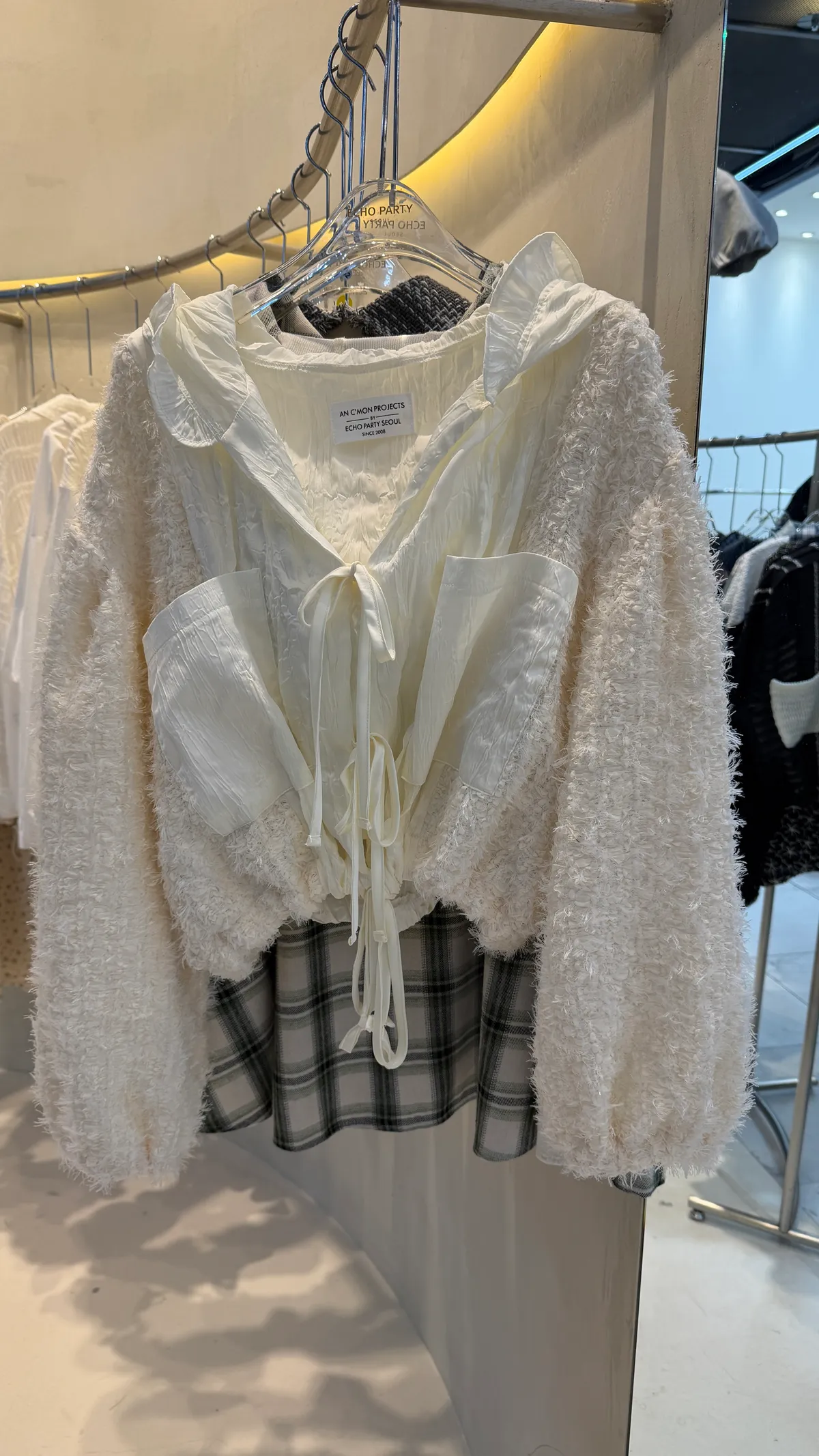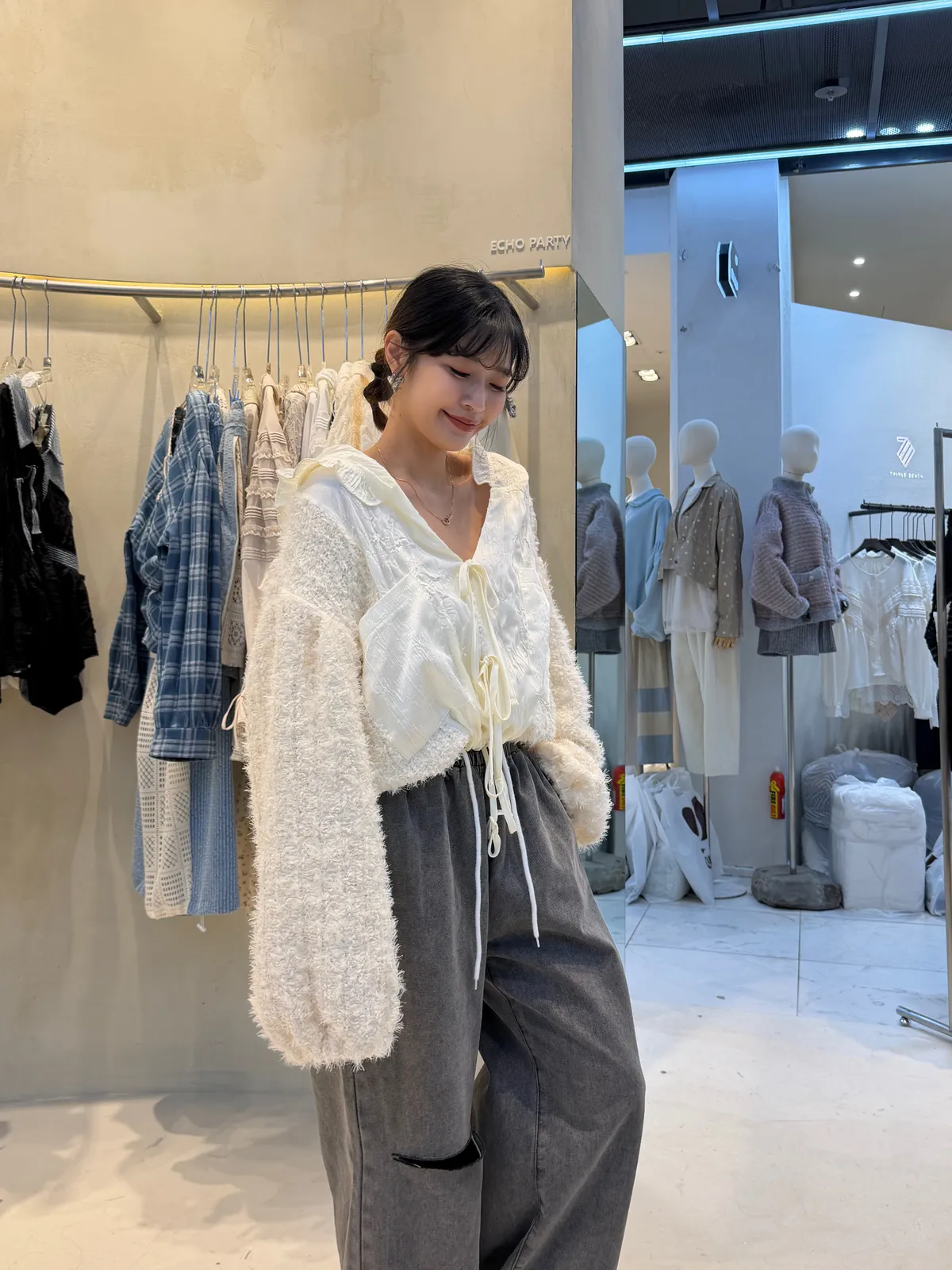 韓國荷葉拼接勾織毛毛鬚連帽上衣
