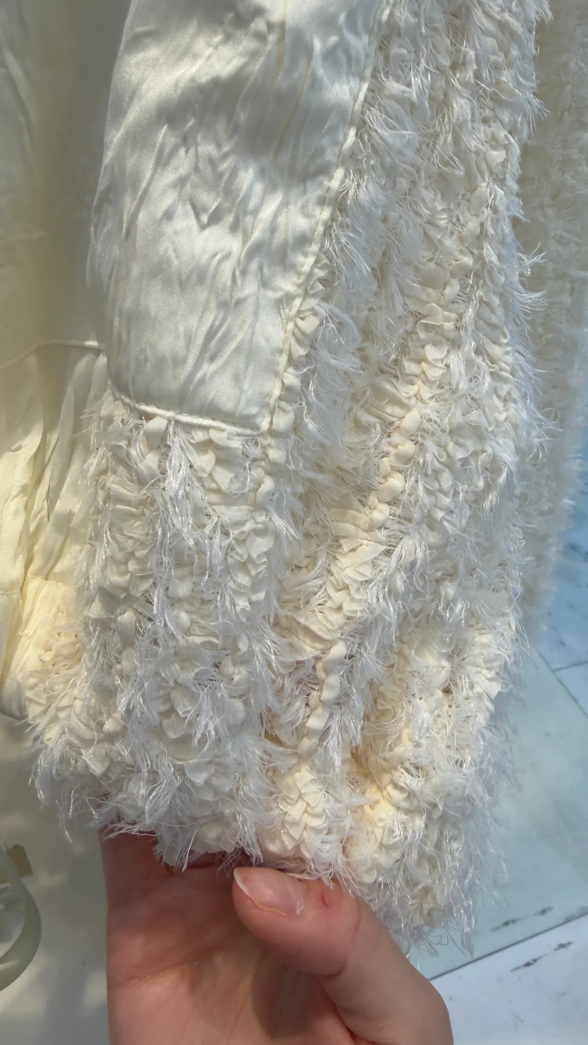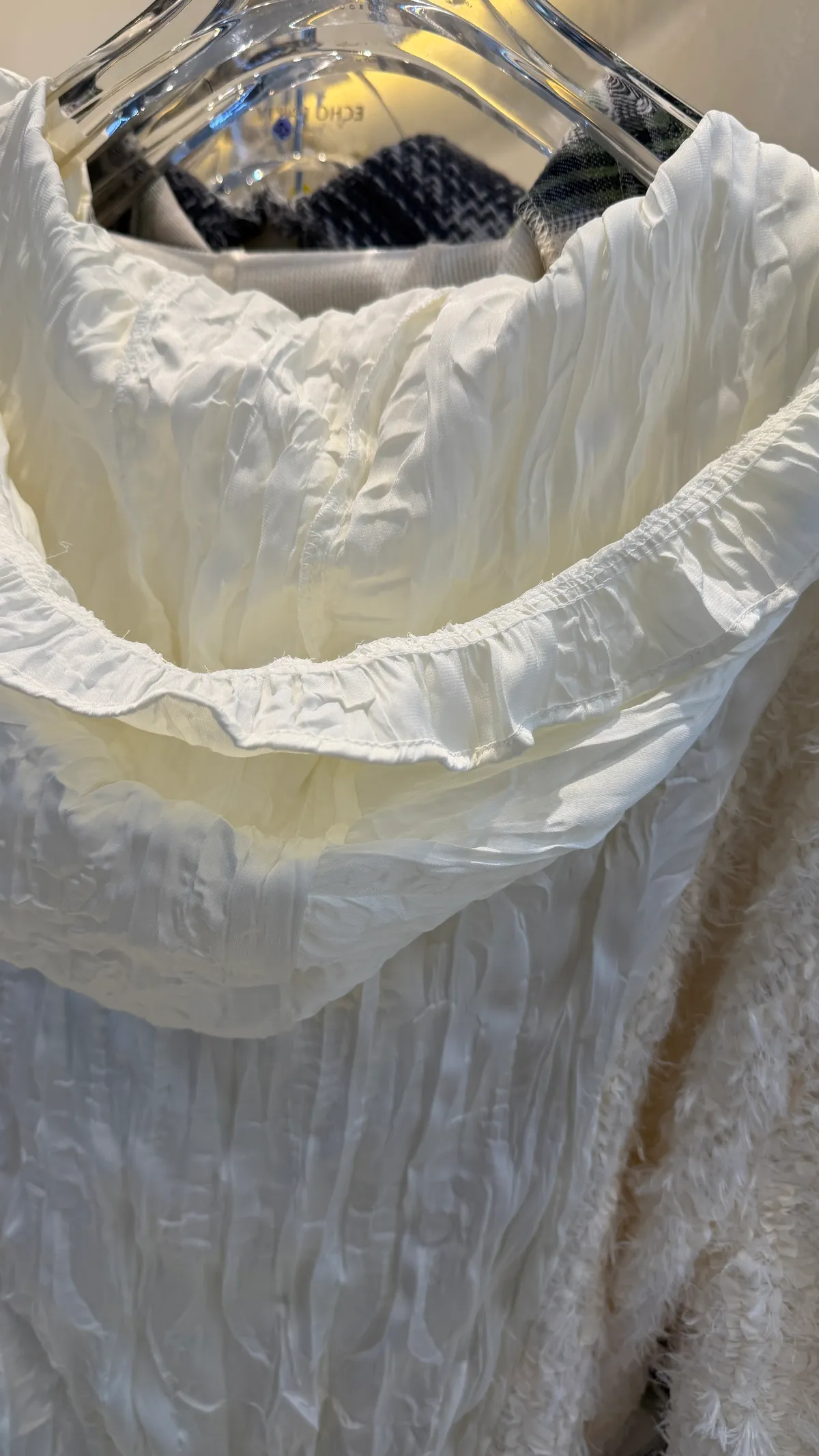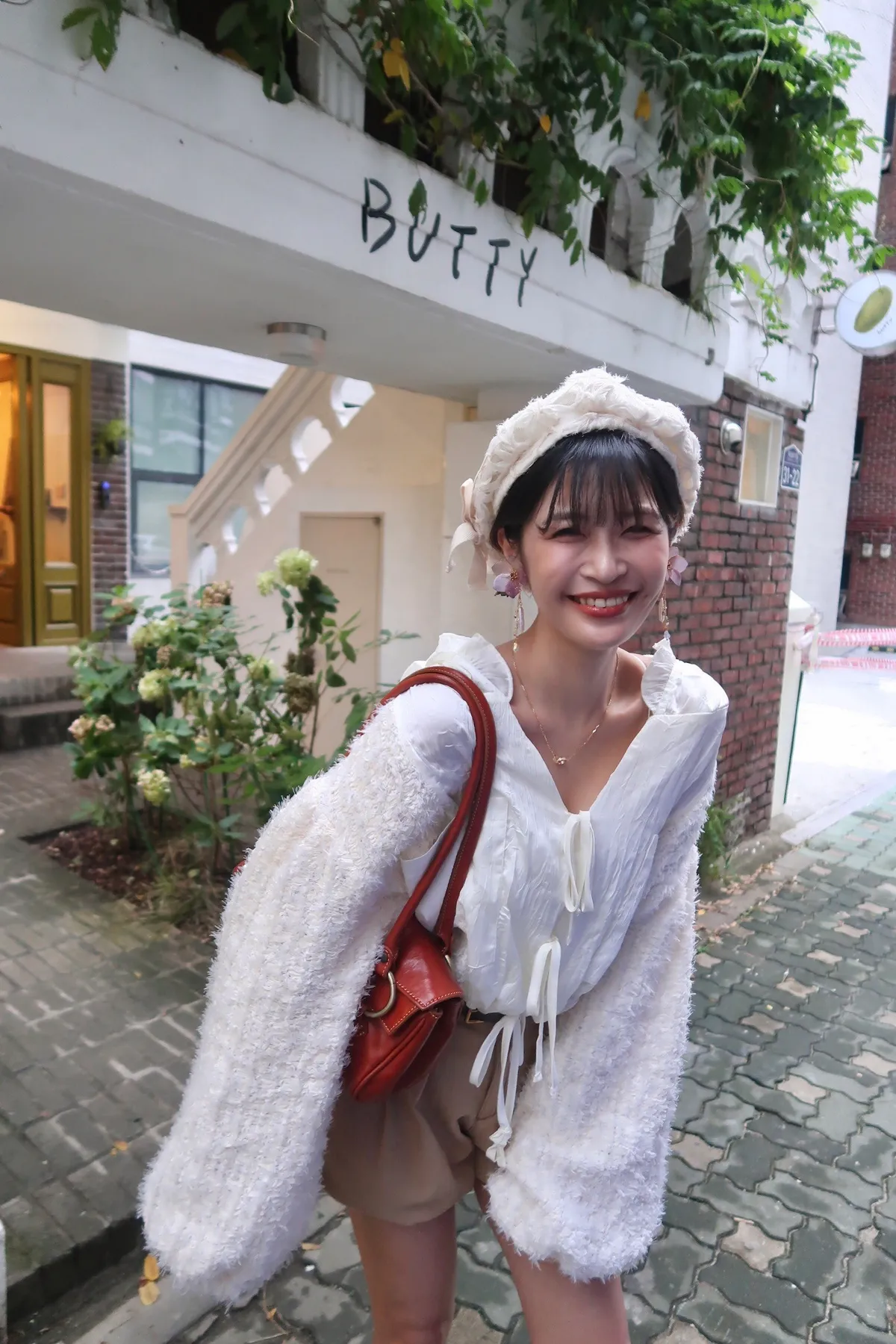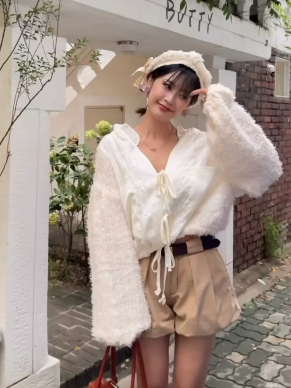韓國荷葉拼接勾織毛毛鬚連帽上衣