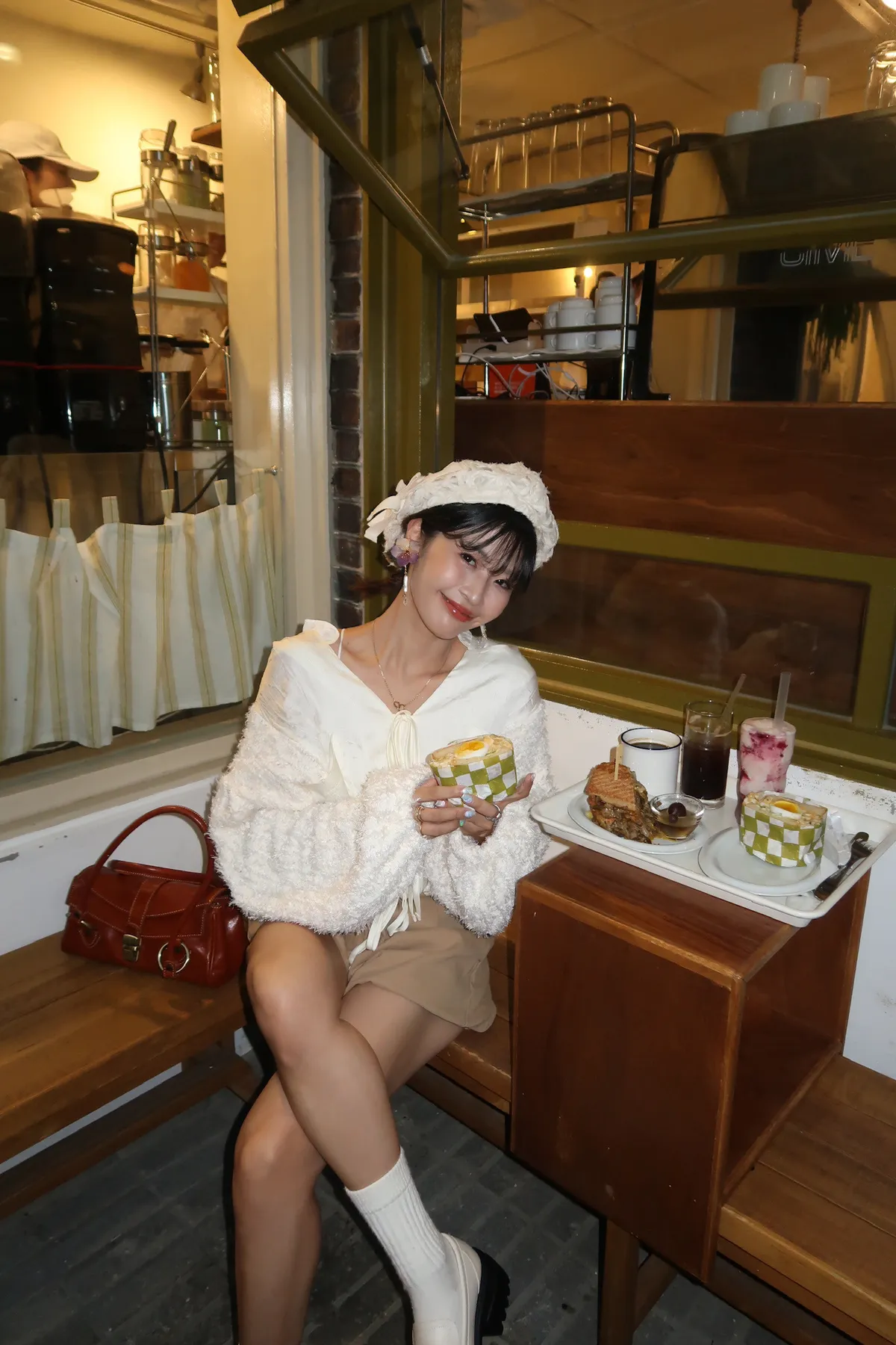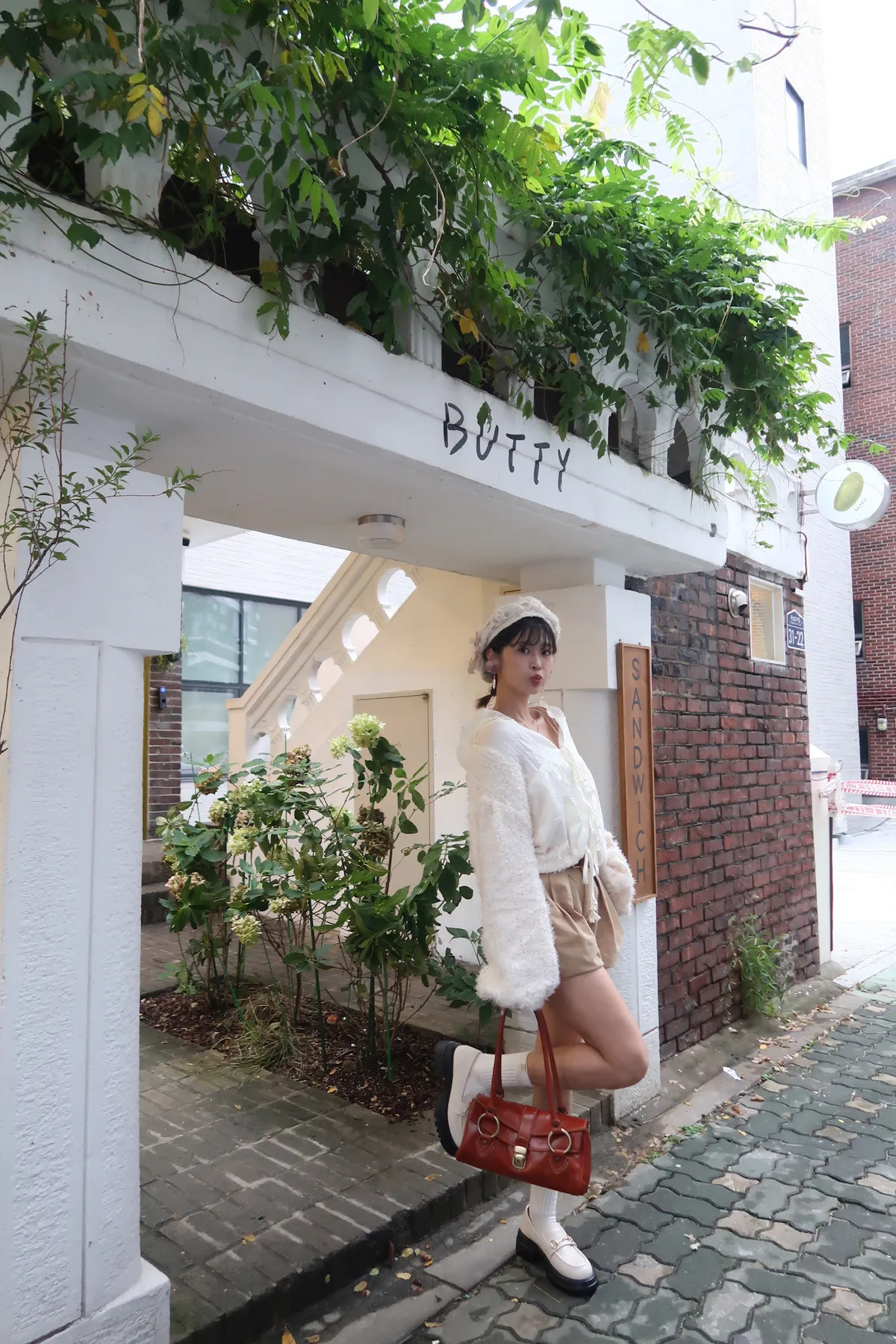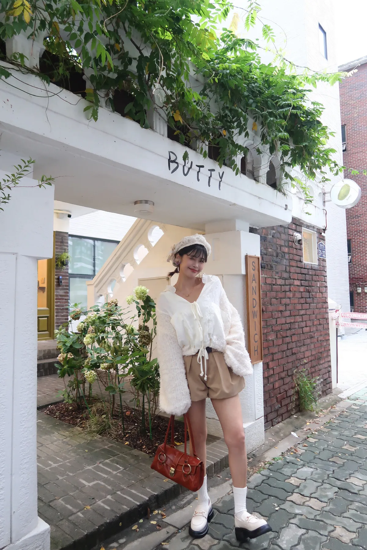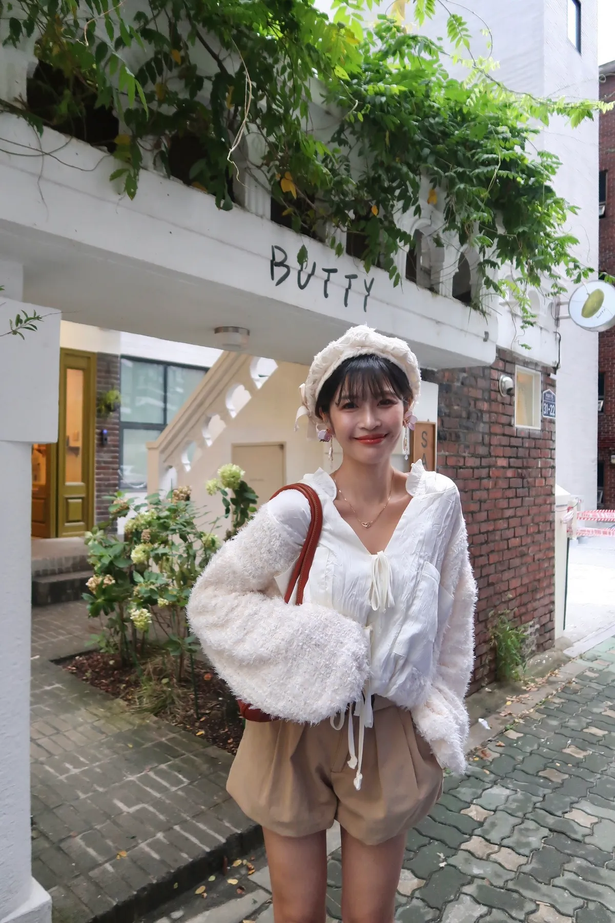 韓國荷葉拼接勾織毛毛鬚連帽上衣
