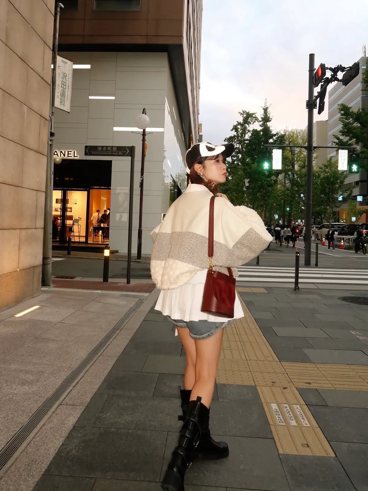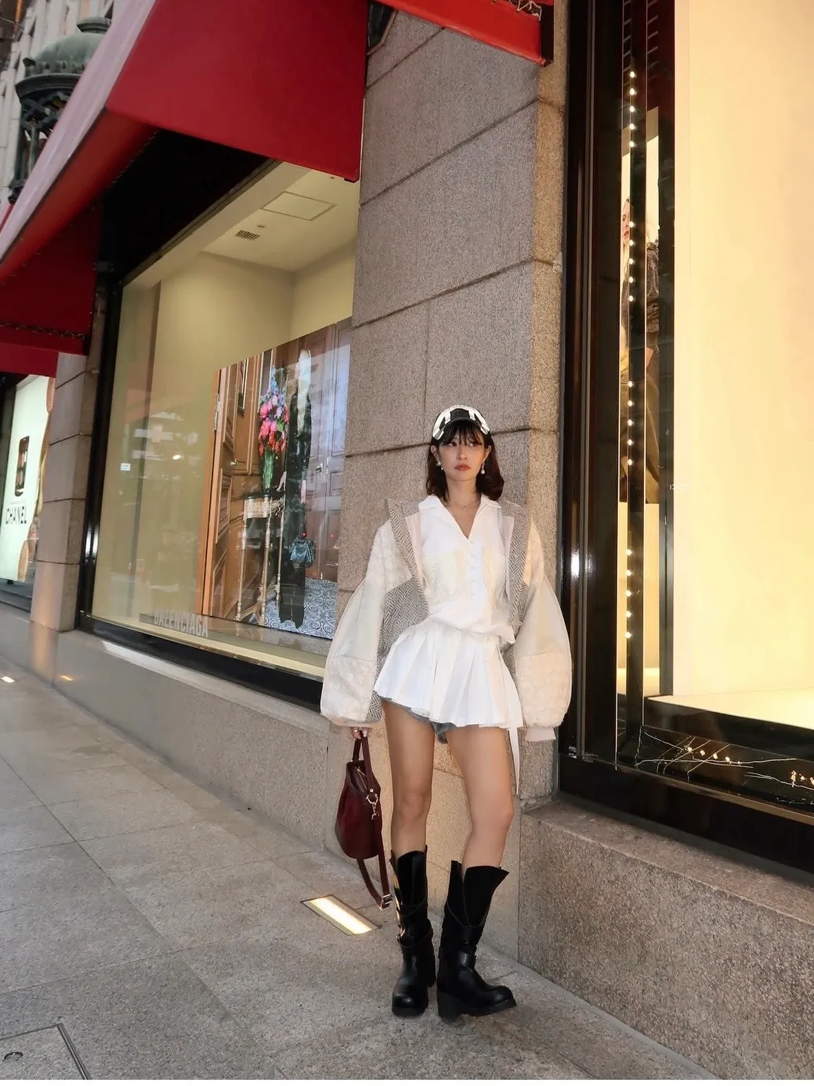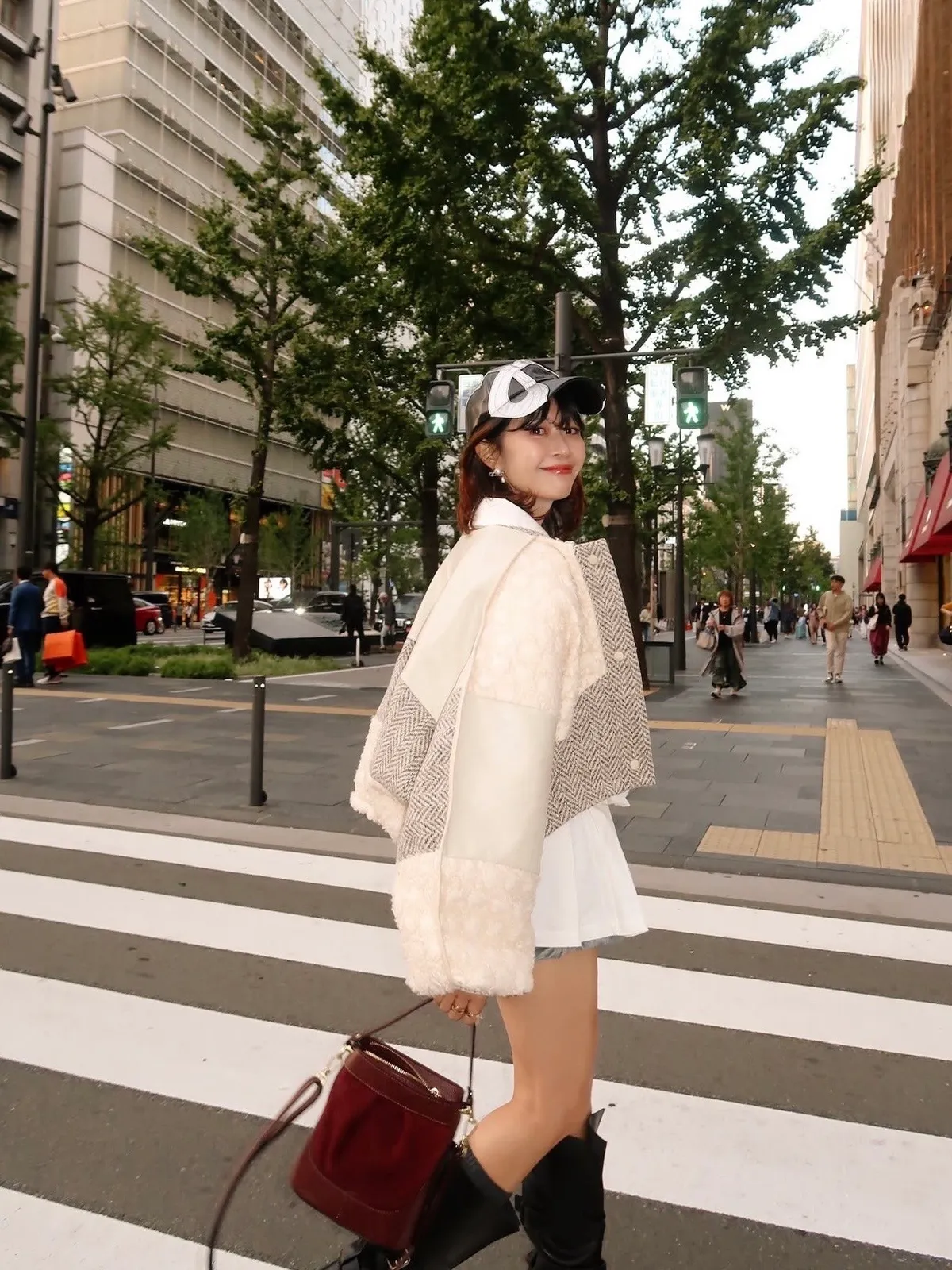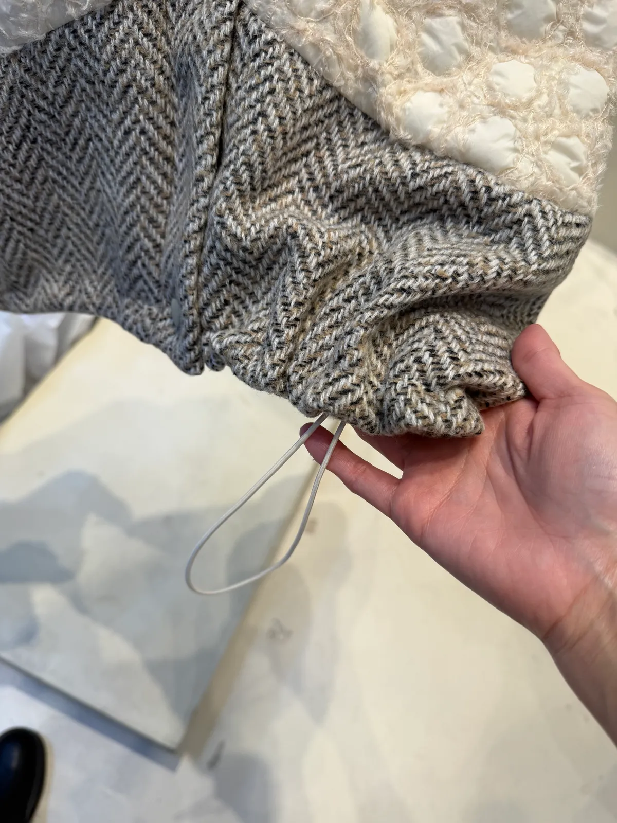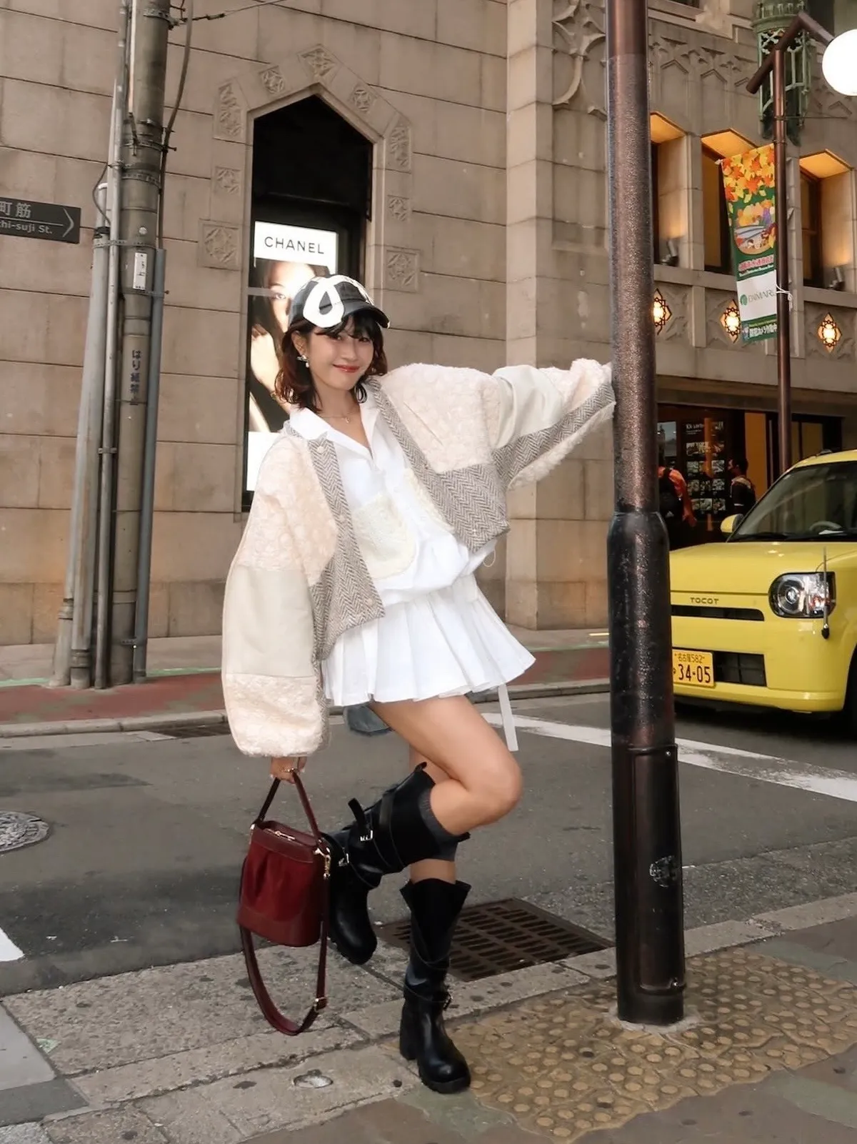 韓國綿羊鬚拼接皮革絎縫毛呢外套