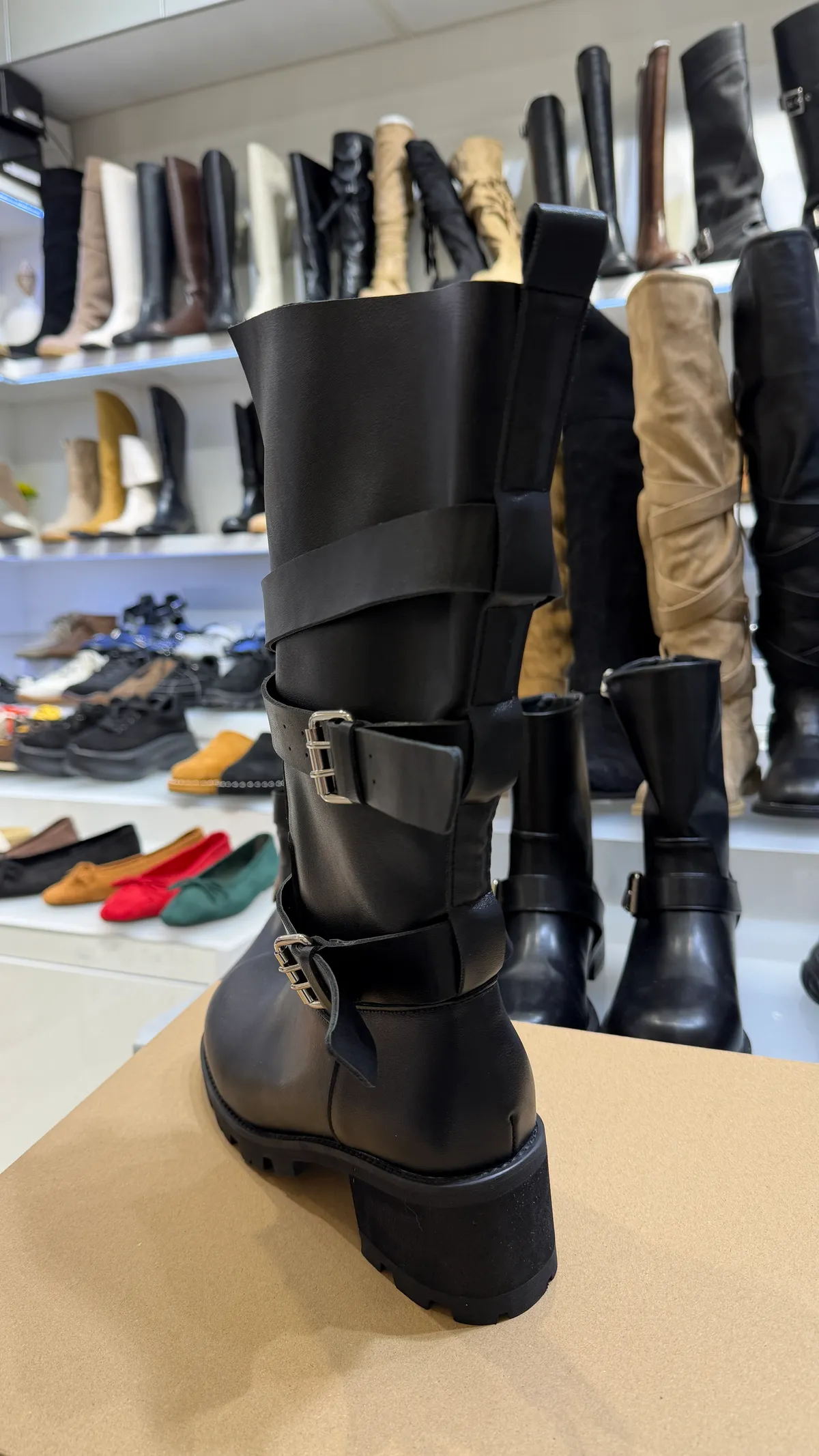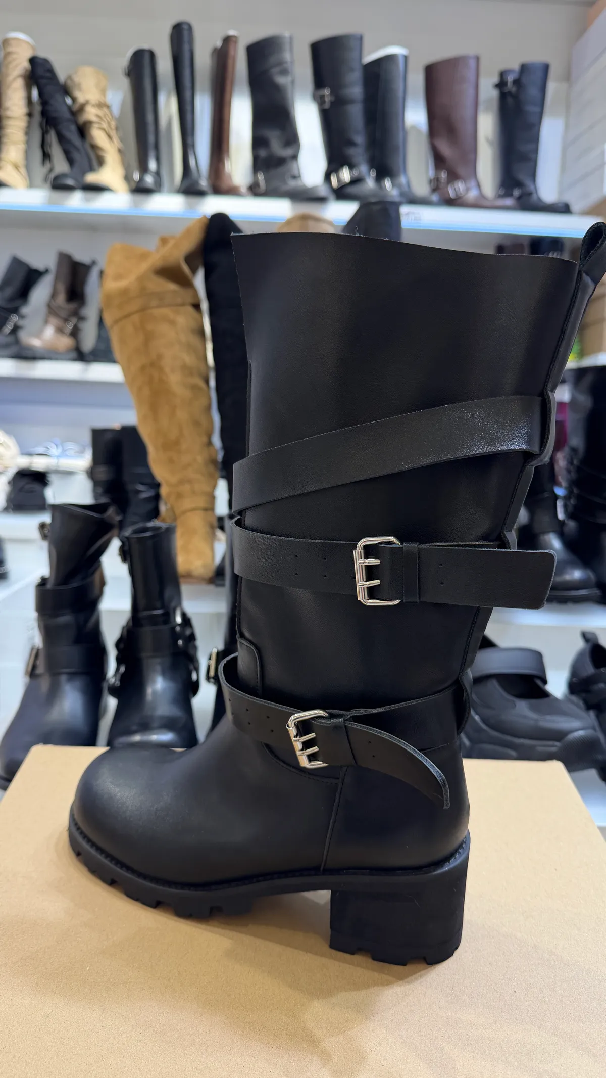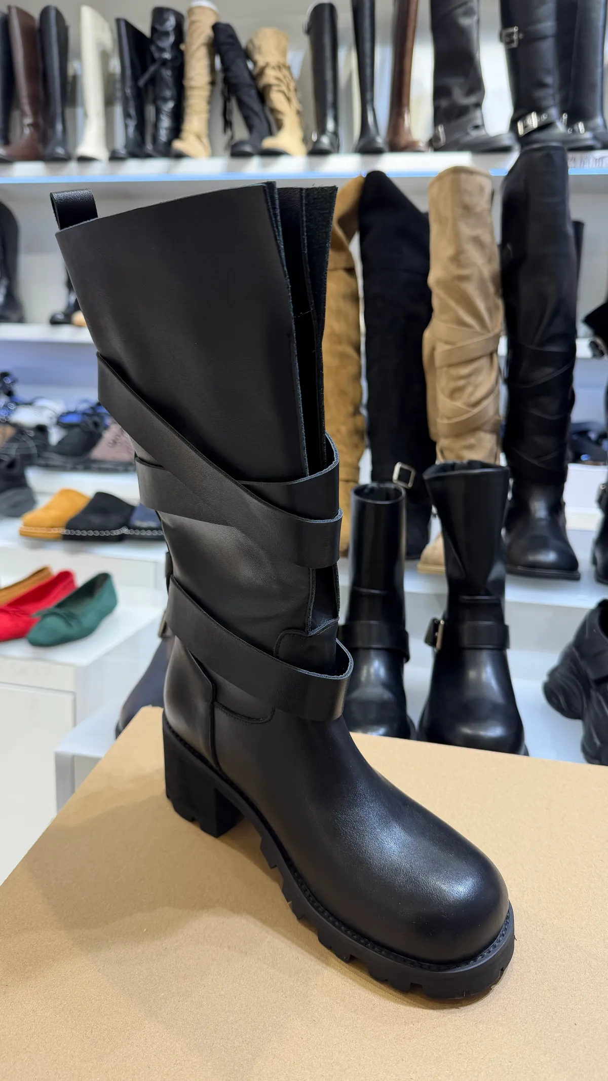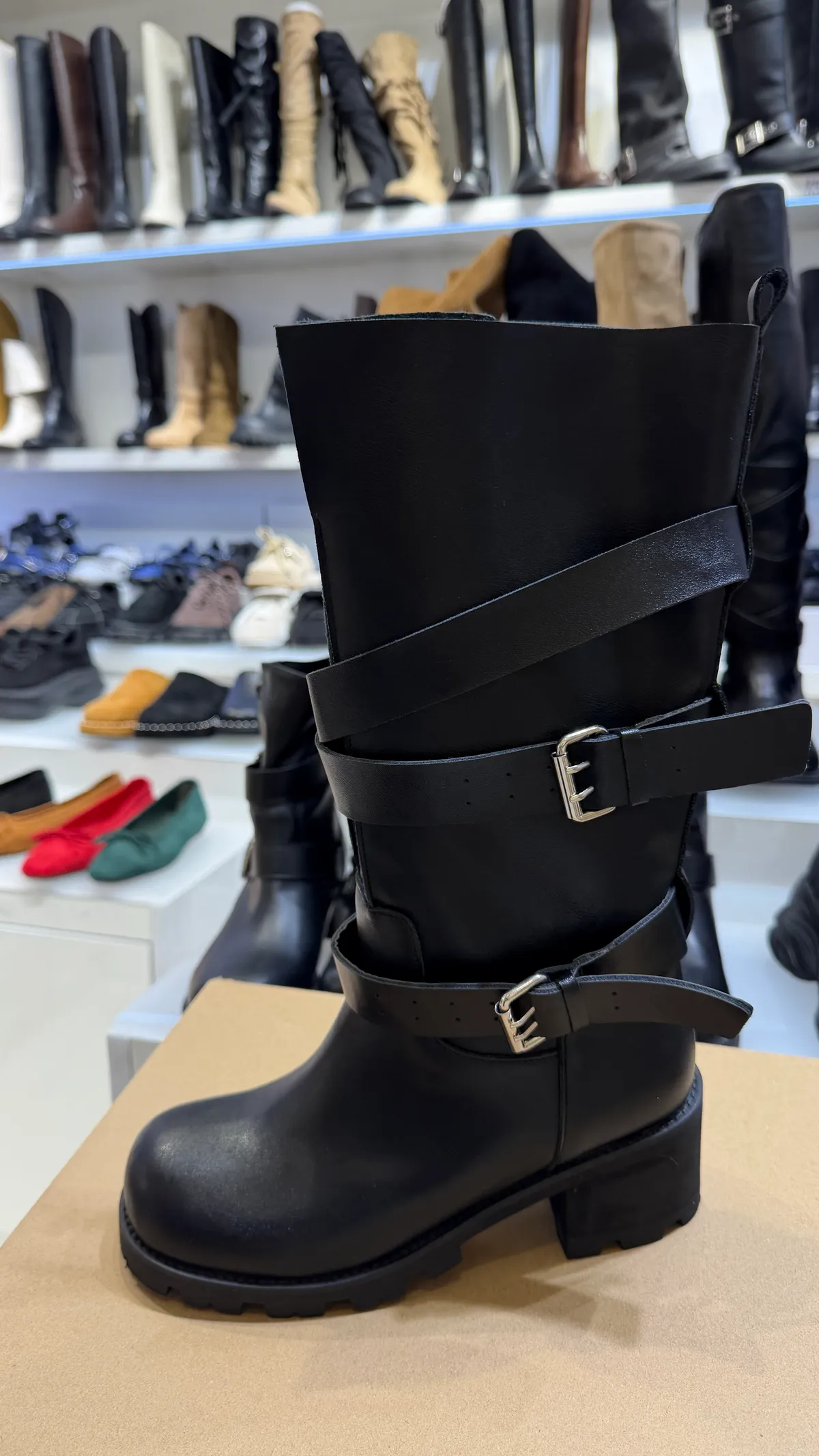 K065韓國連線真皮翻領皮帶造型長靴 1980元