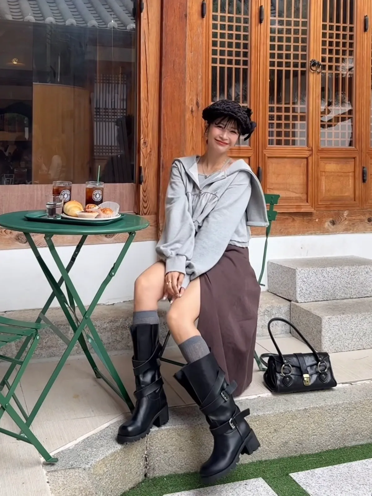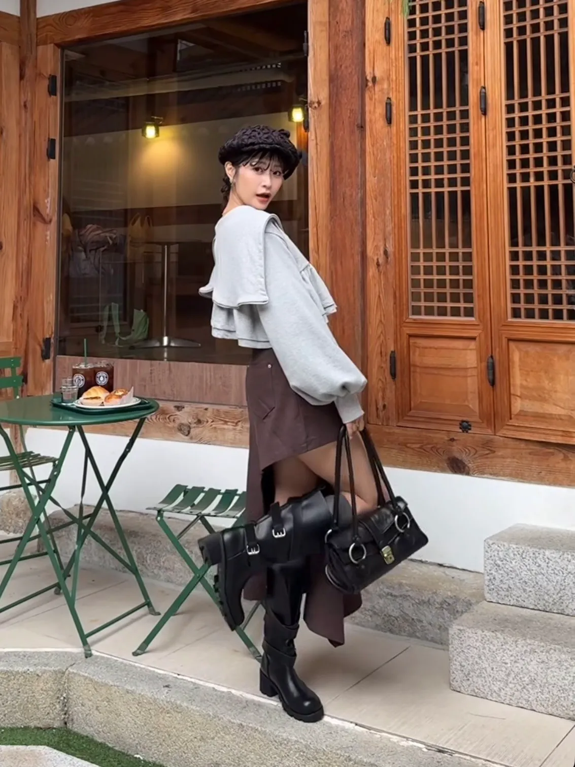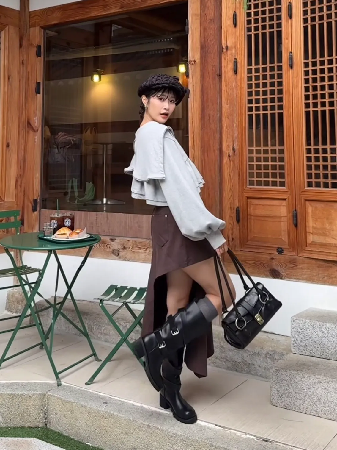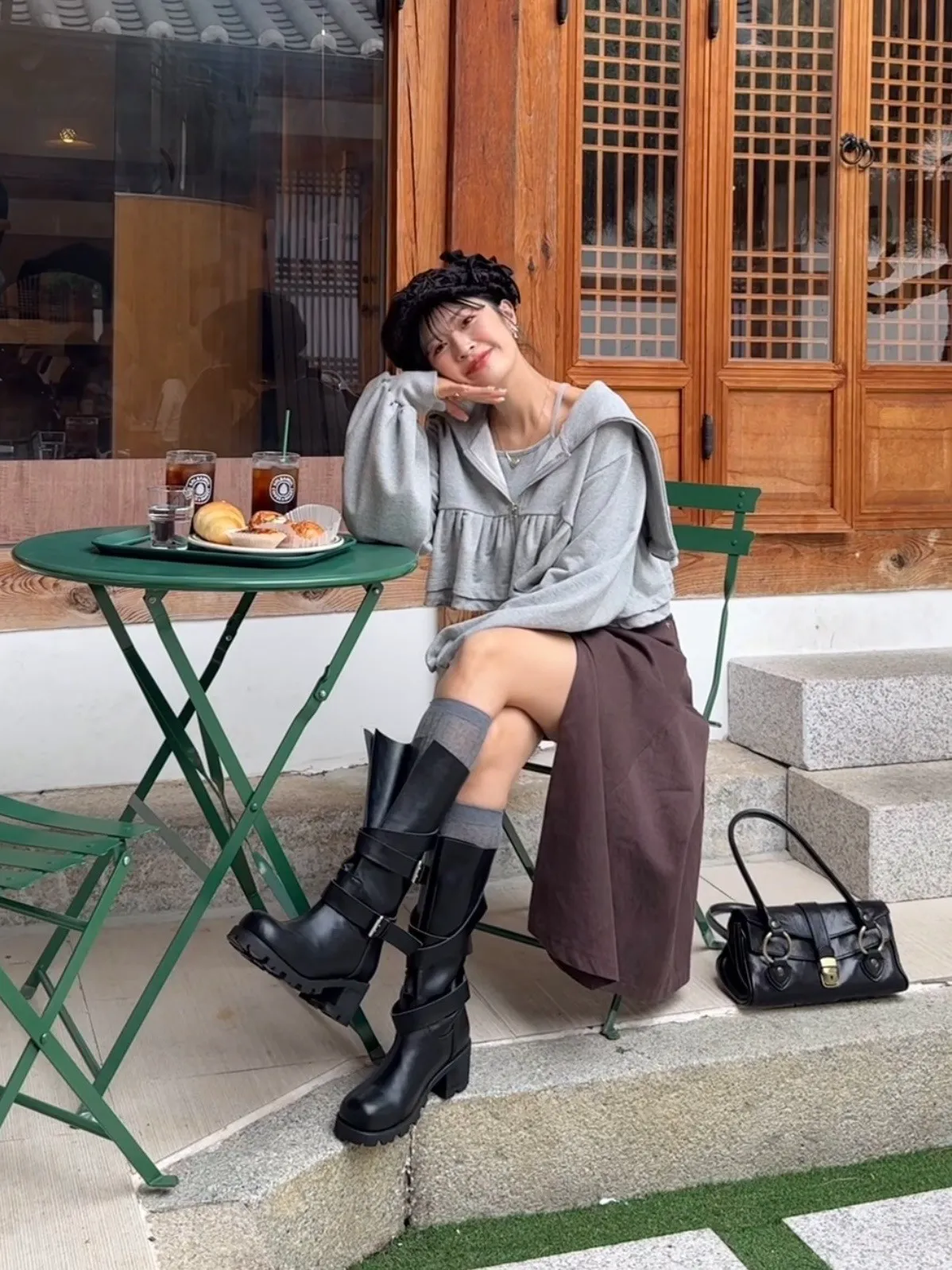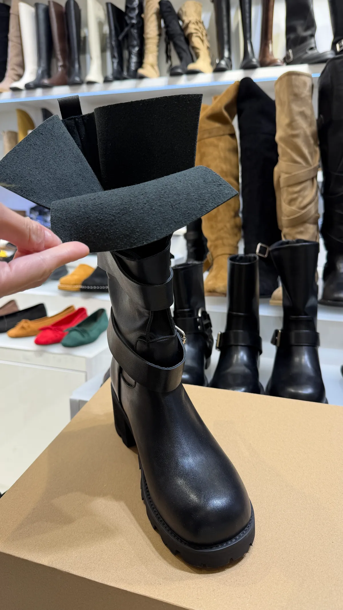 K065韓國連線真皮翻領皮帶造型長靴 1980元