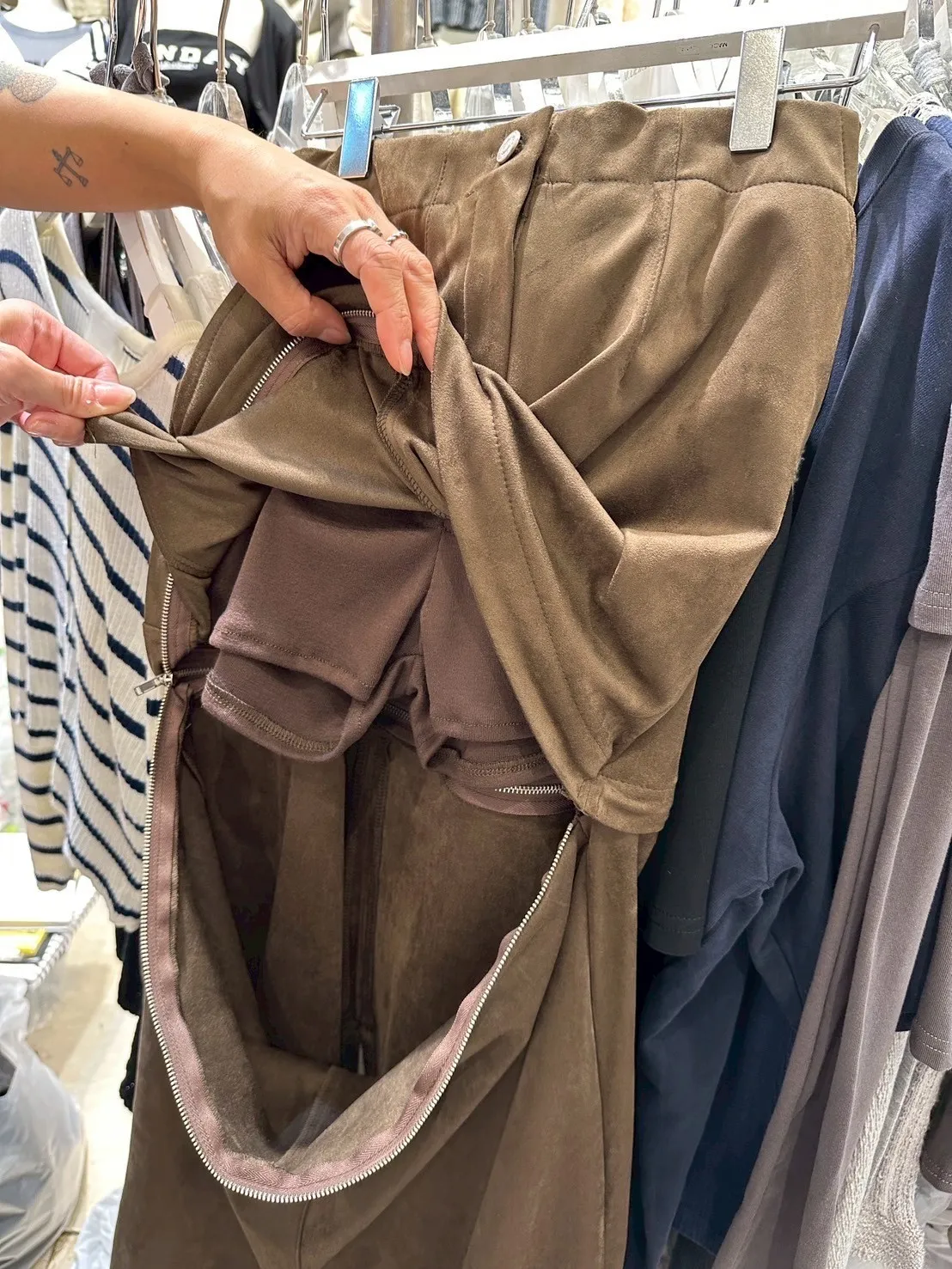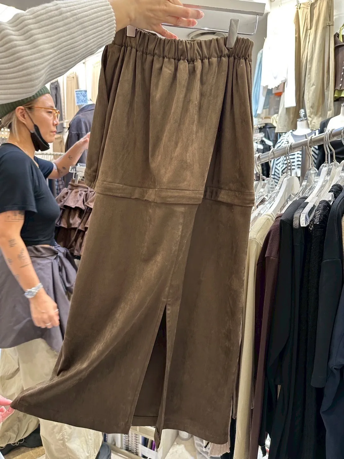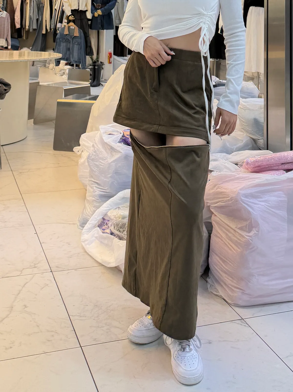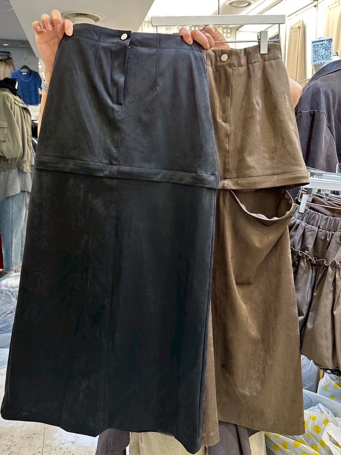 韓國兩穿可拆式絨布長短裙