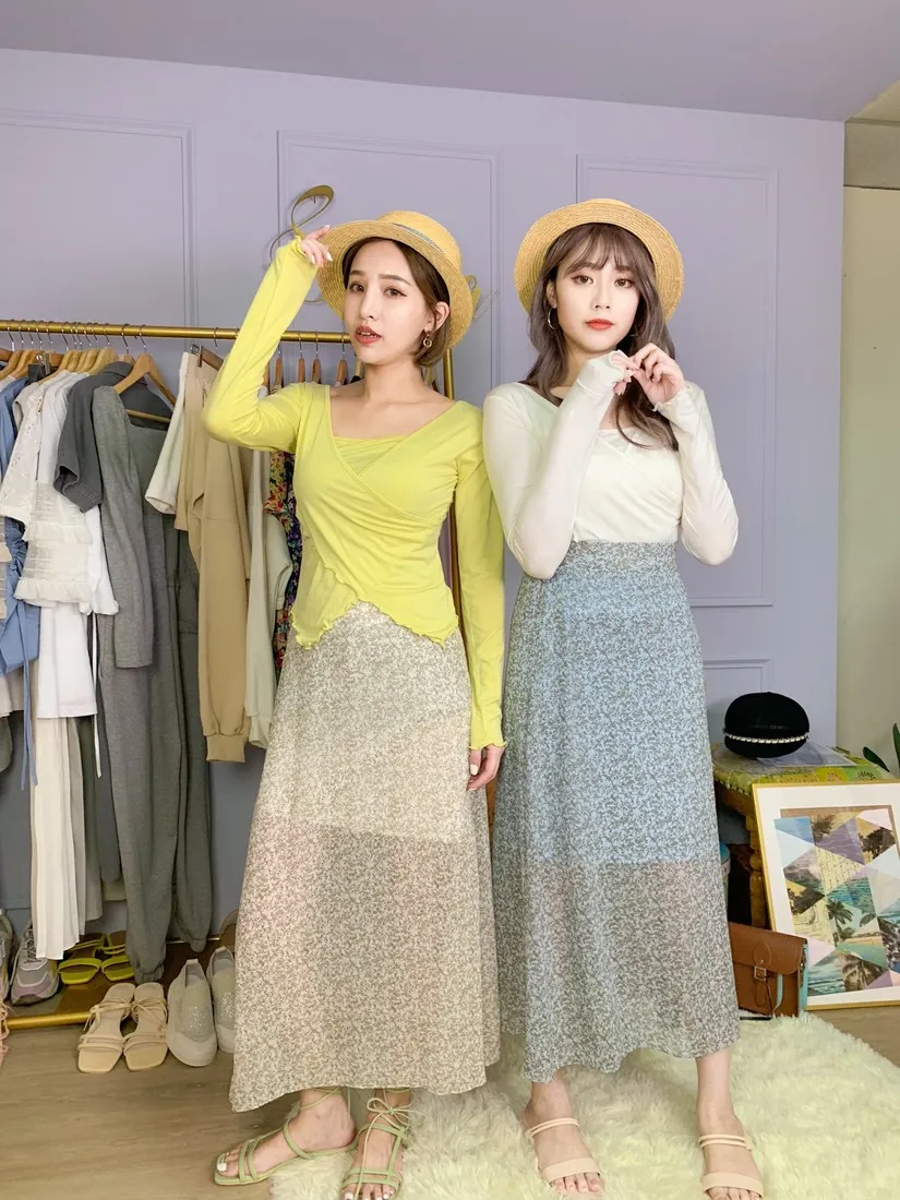 韓國連線*小葉子後鬆緊裙(米 現貨)