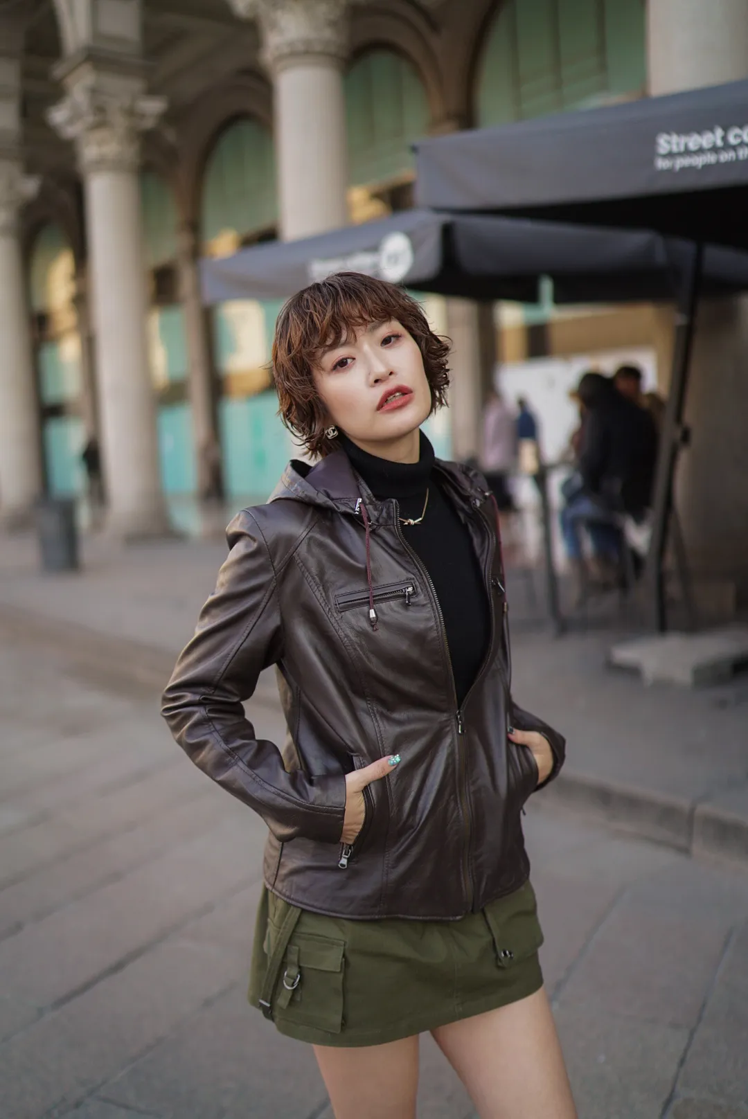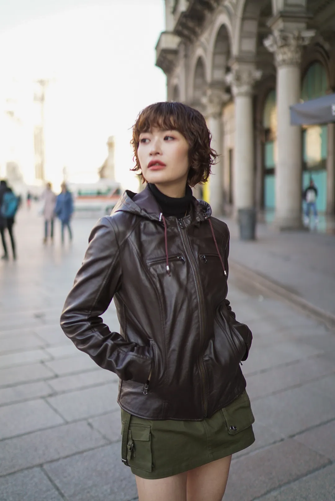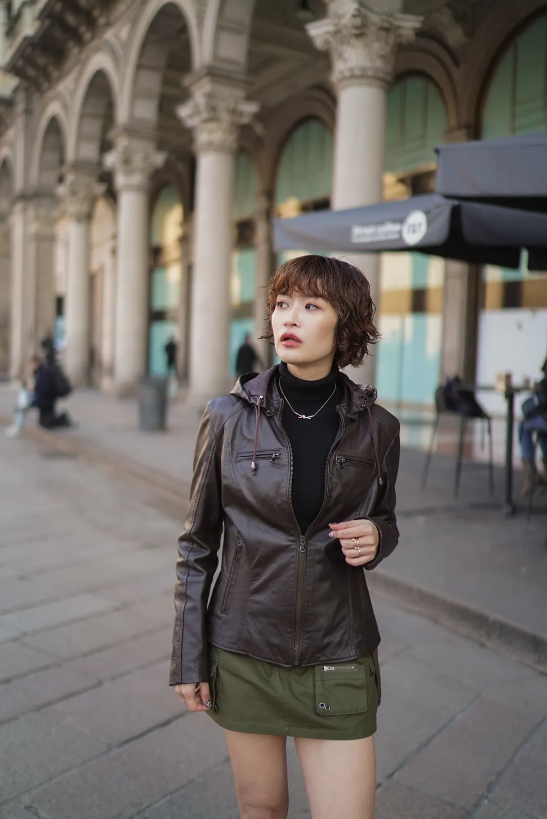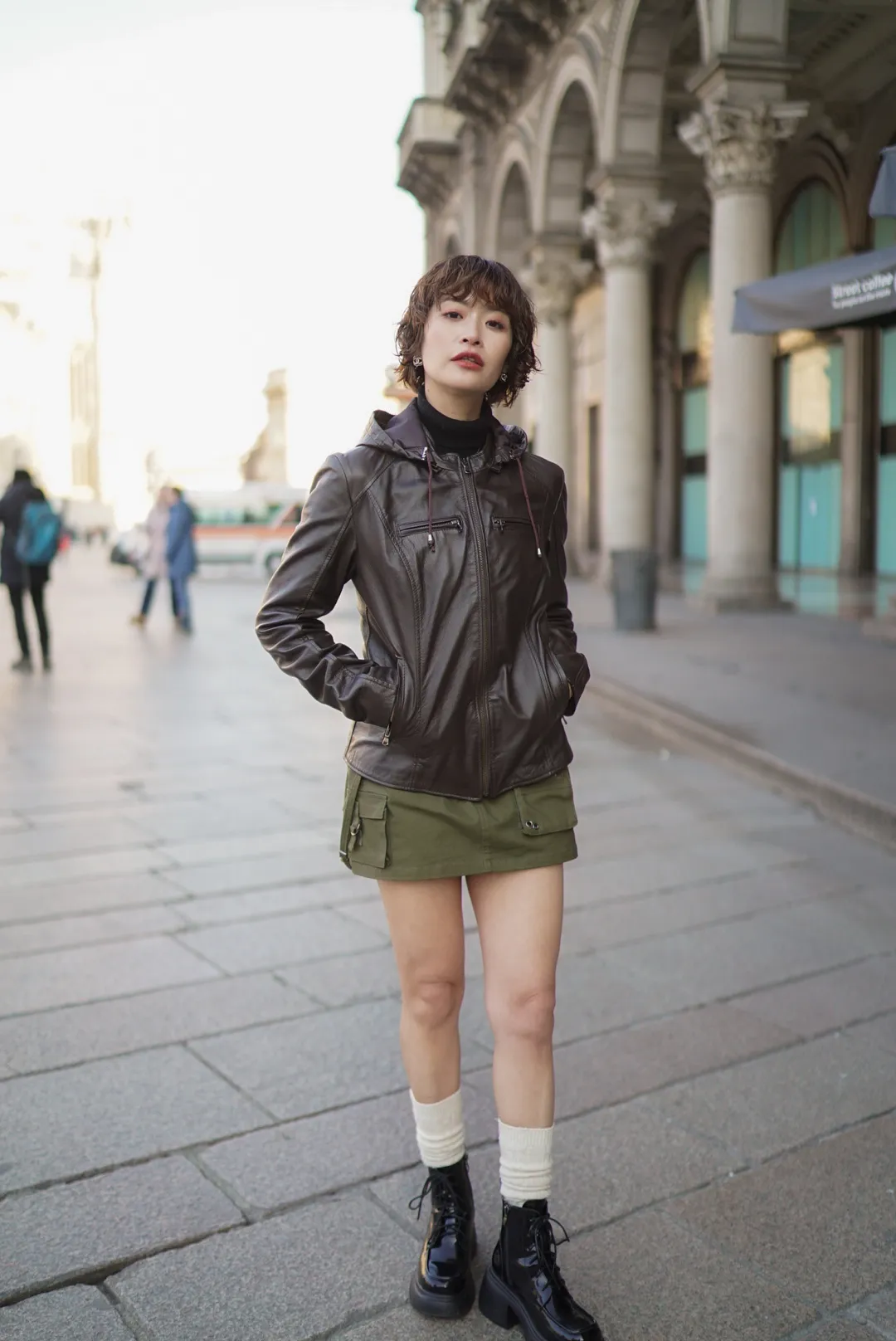 義大利製連帽口袋夾克皮衣 5980元(此檔優惠價)