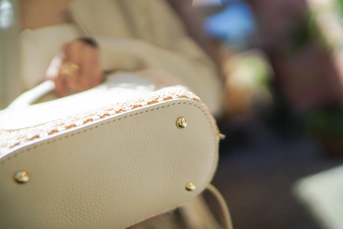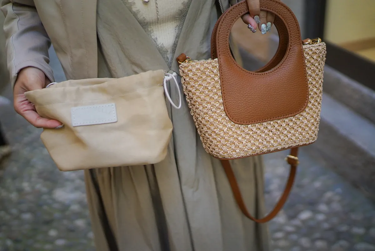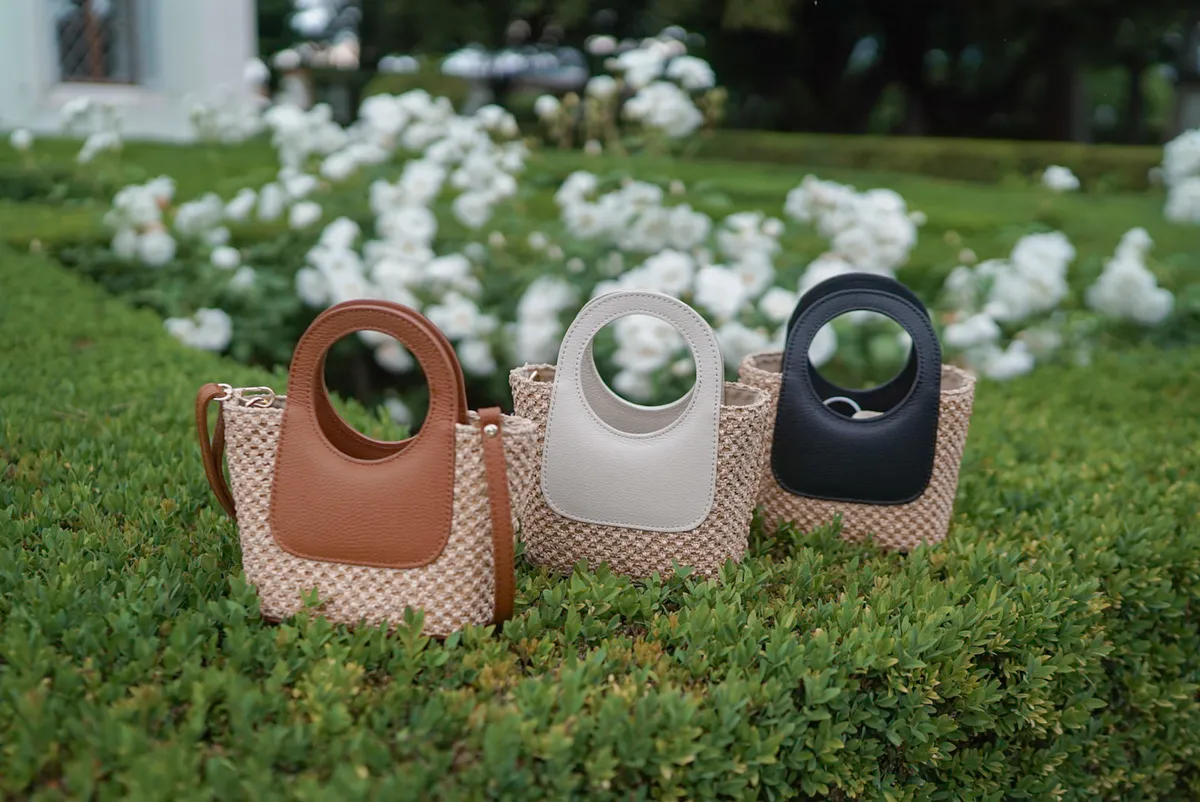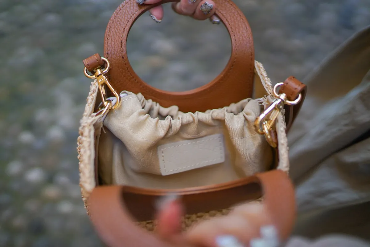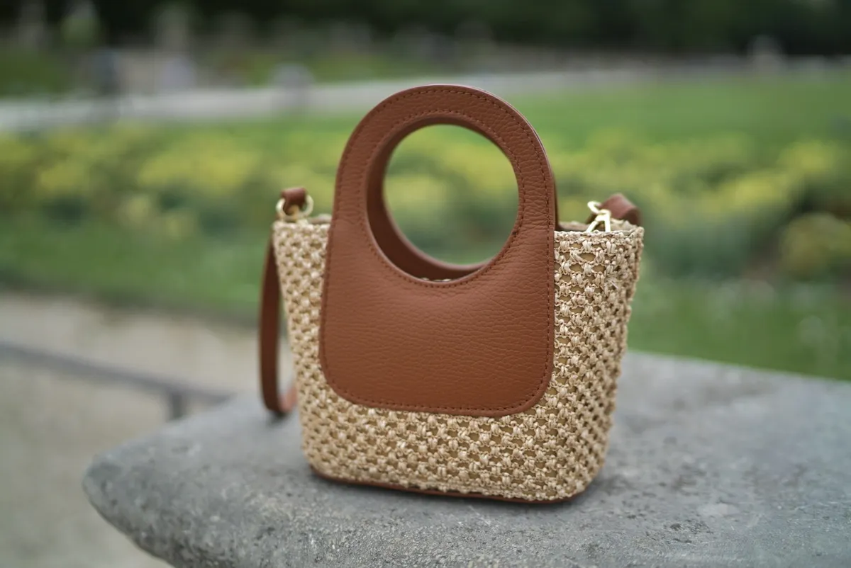 義大利製真皮提把造型藤編小包