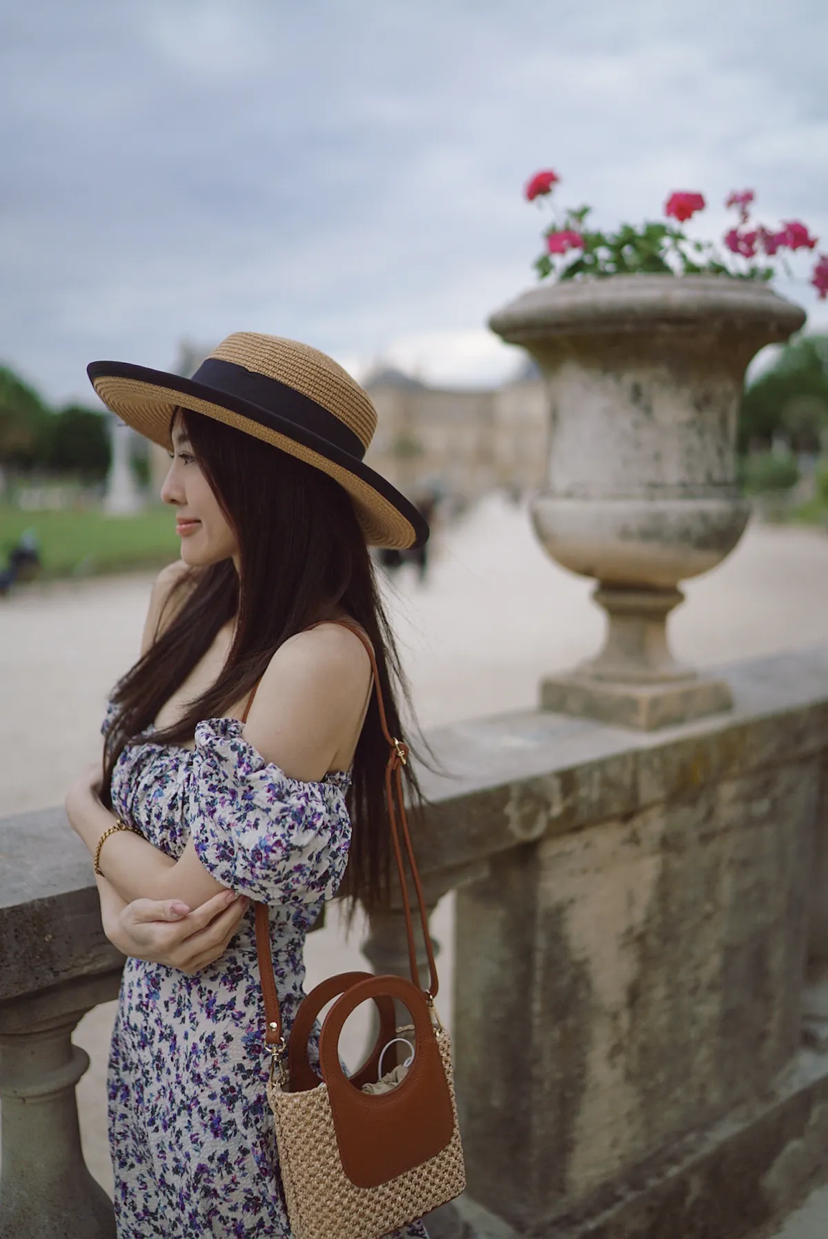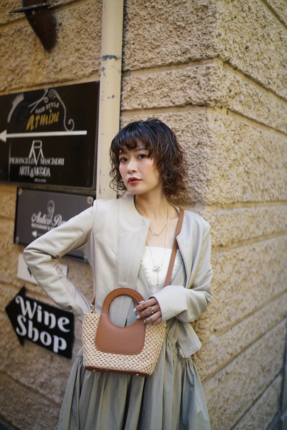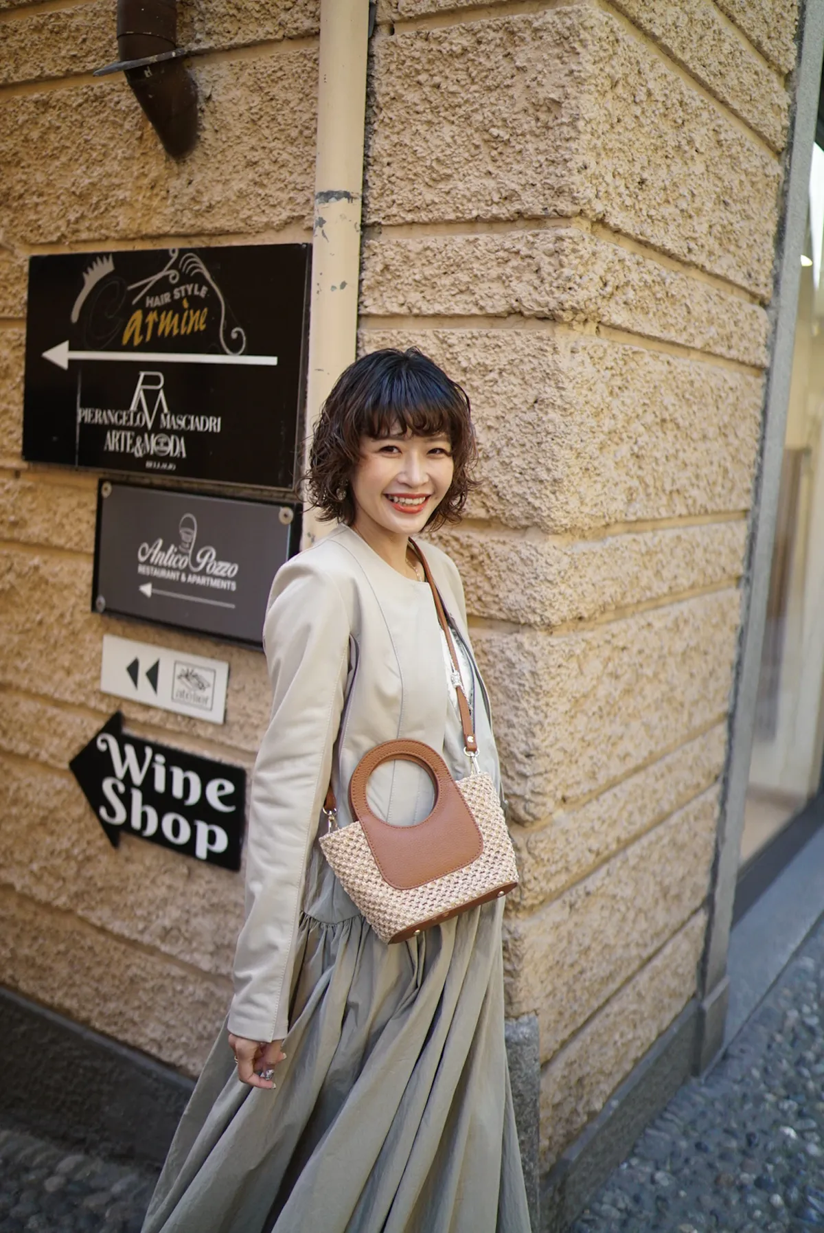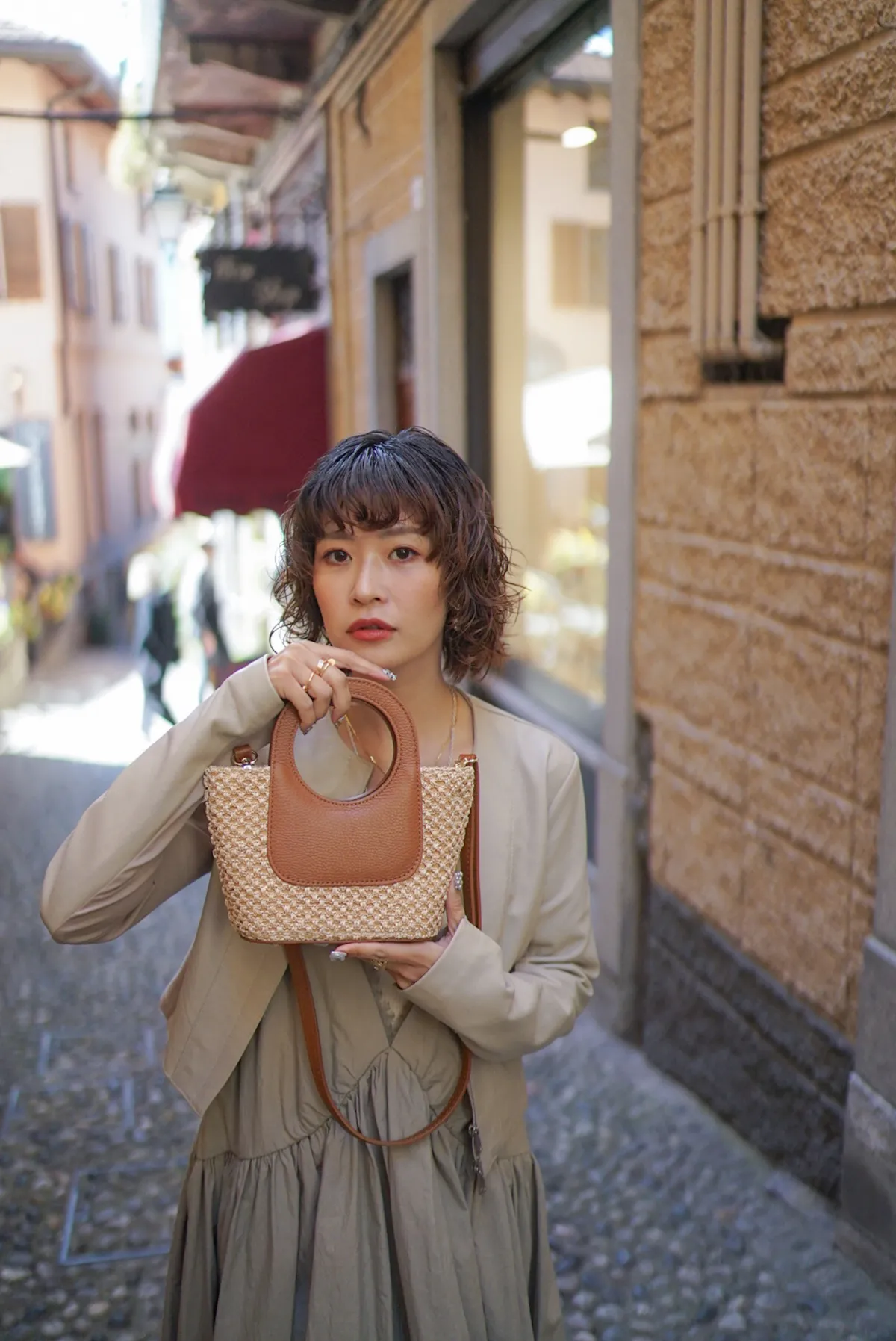 義大利製真皮提把造型藤編小包