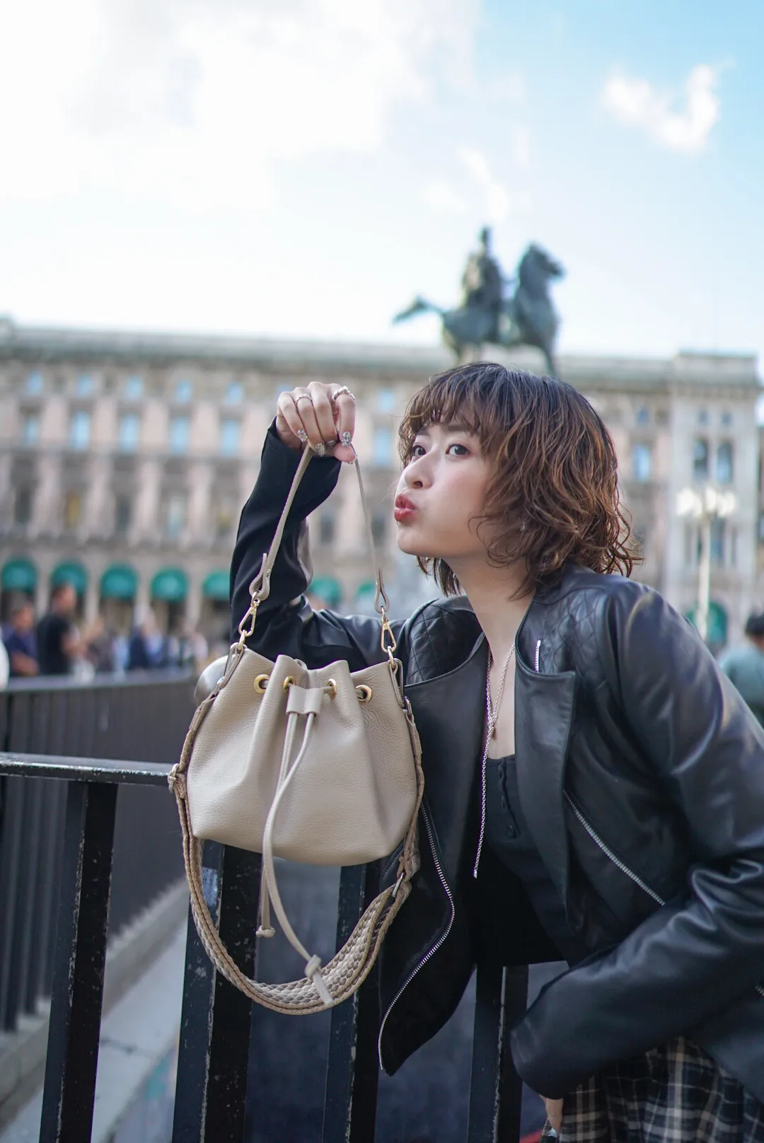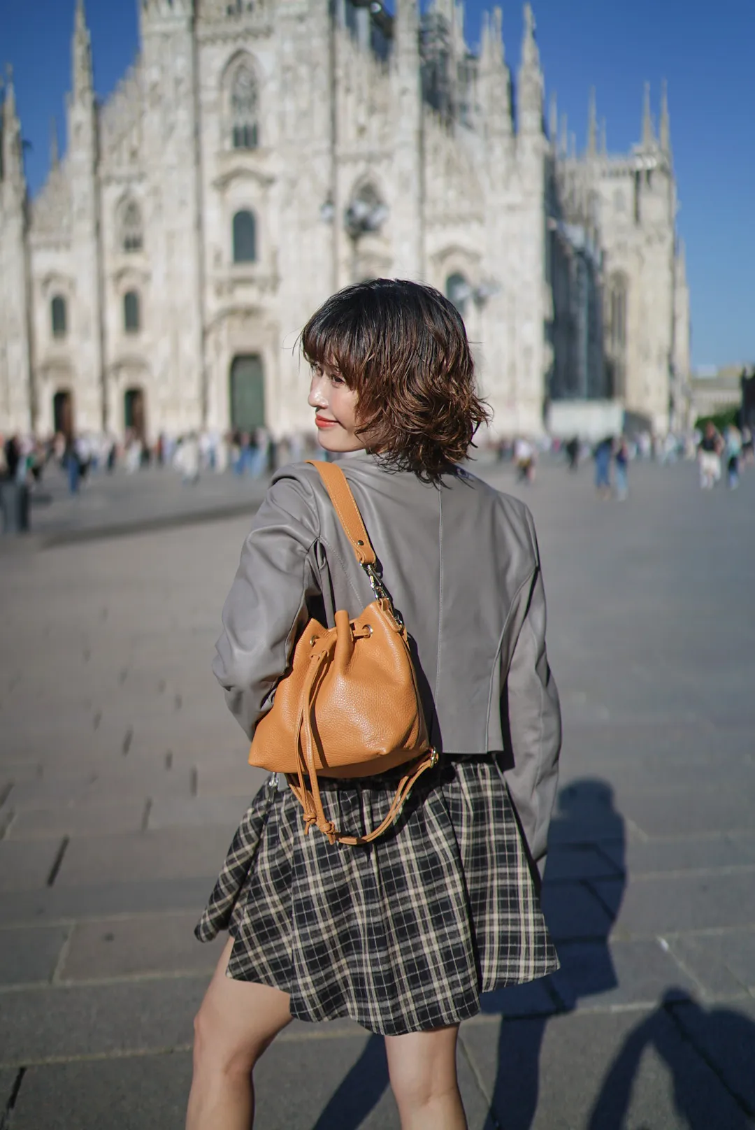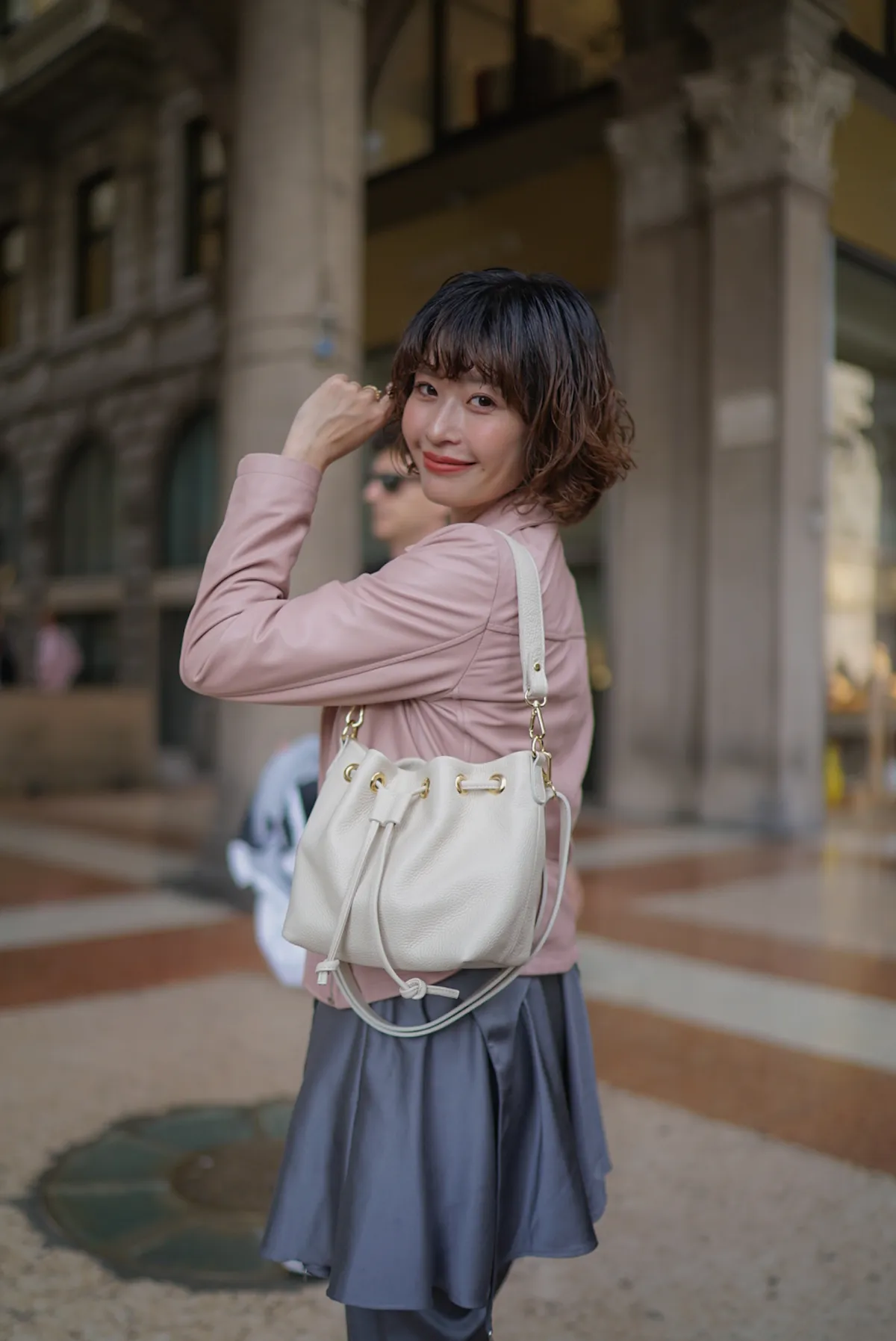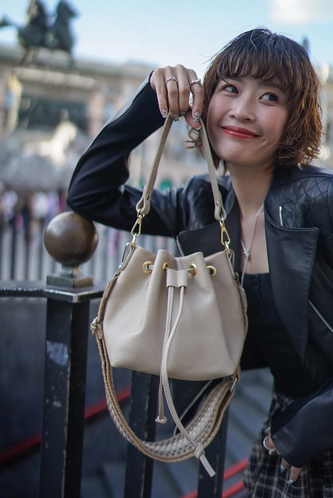 M038義大利製真皮肩背水桶包1680元(附2條背帶)