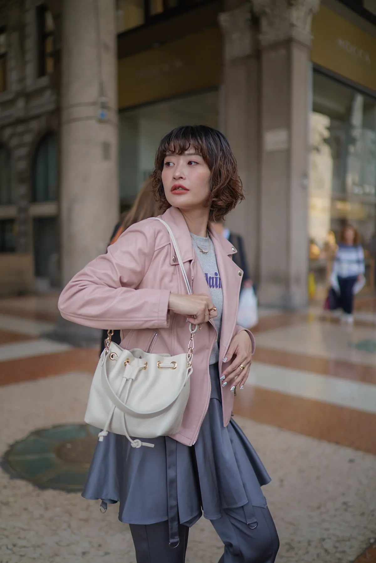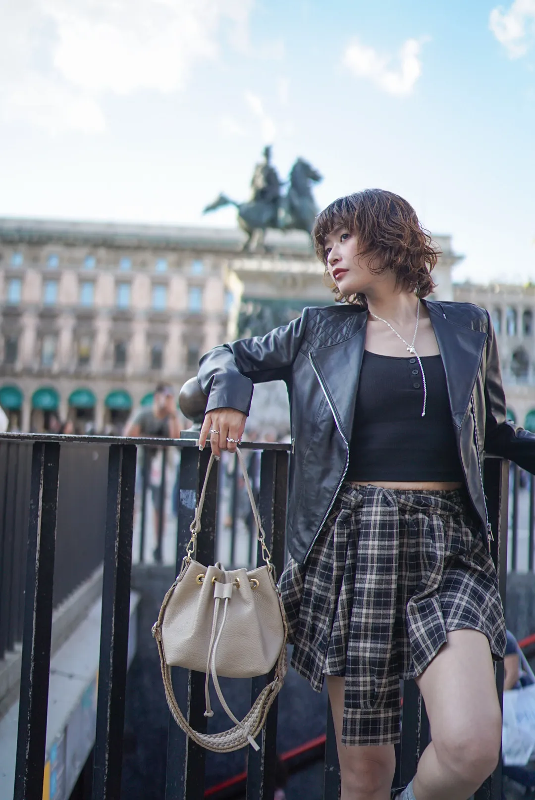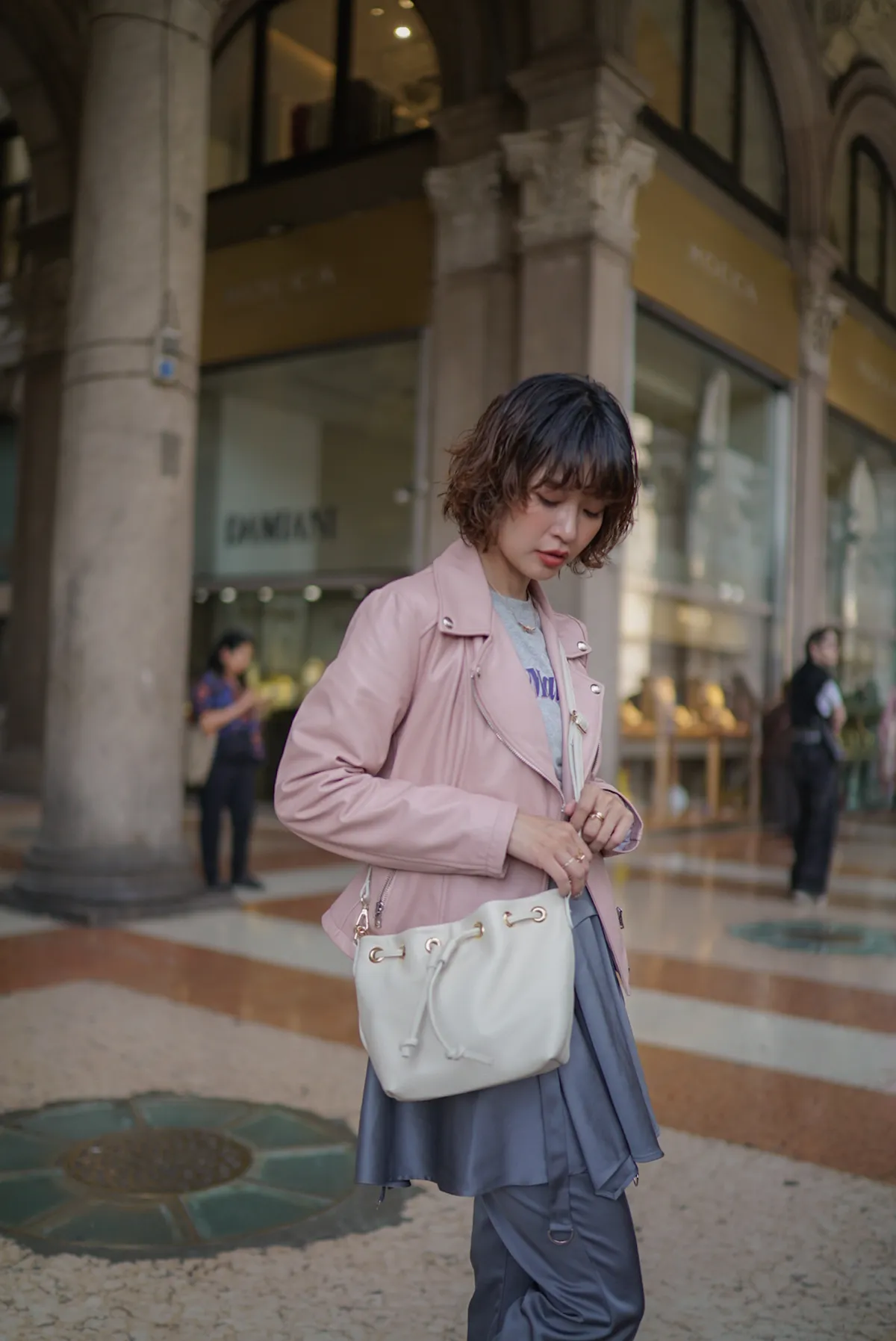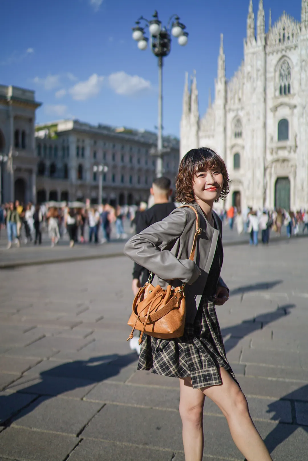 M038義大利製真皮肩背水桶包1680元(附2條背帶)