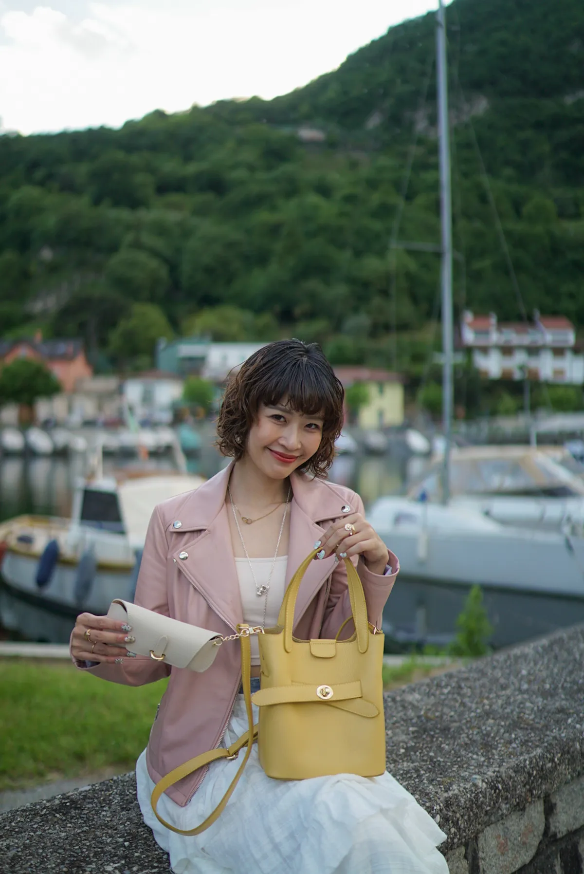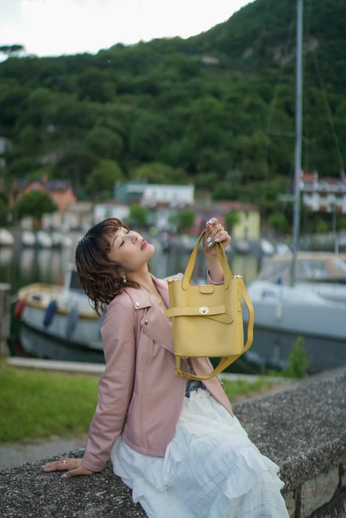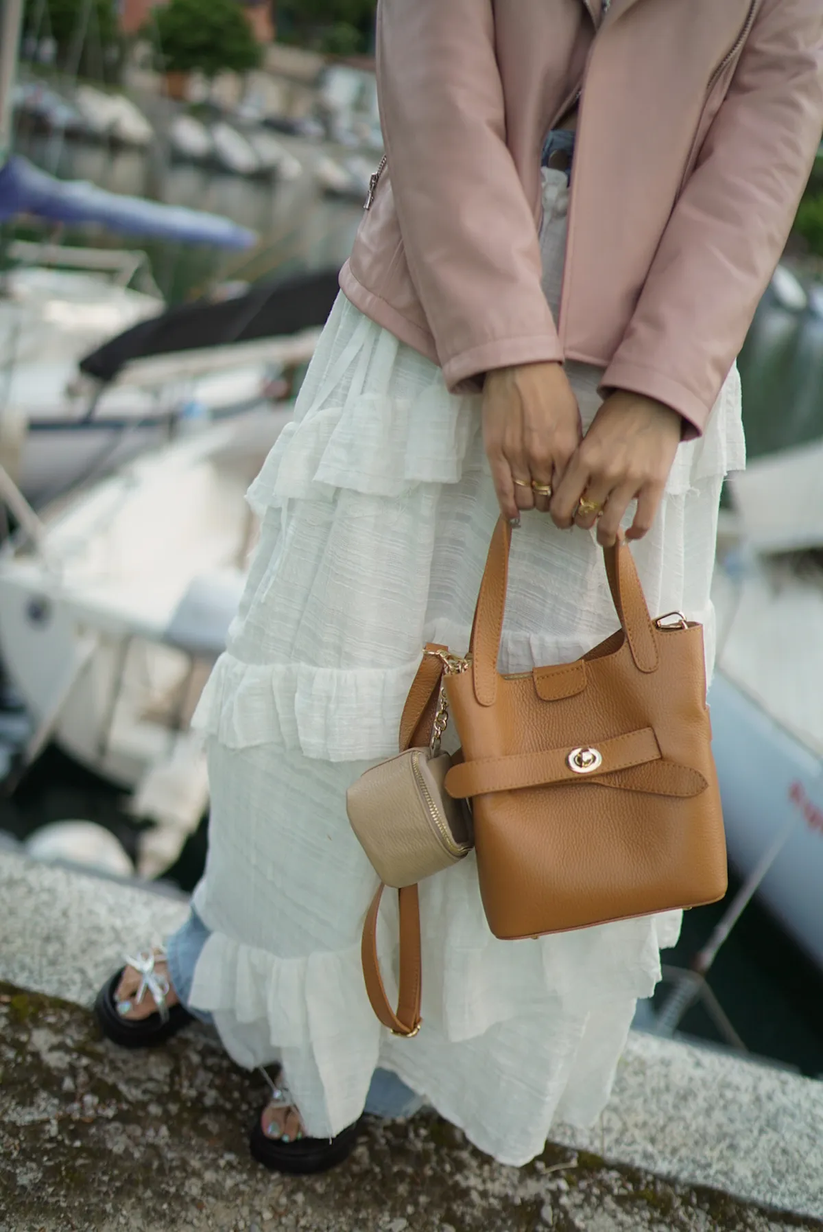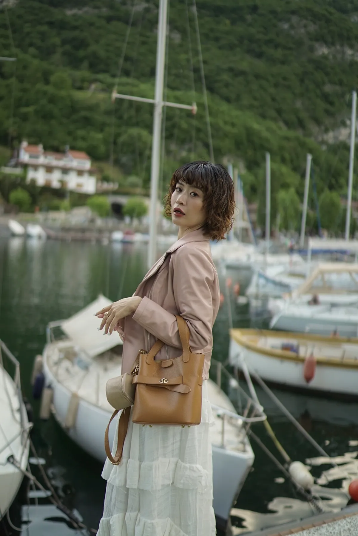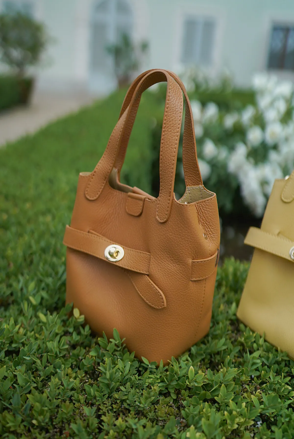 M042義大利製轉釦交叉造型水桶包2680元