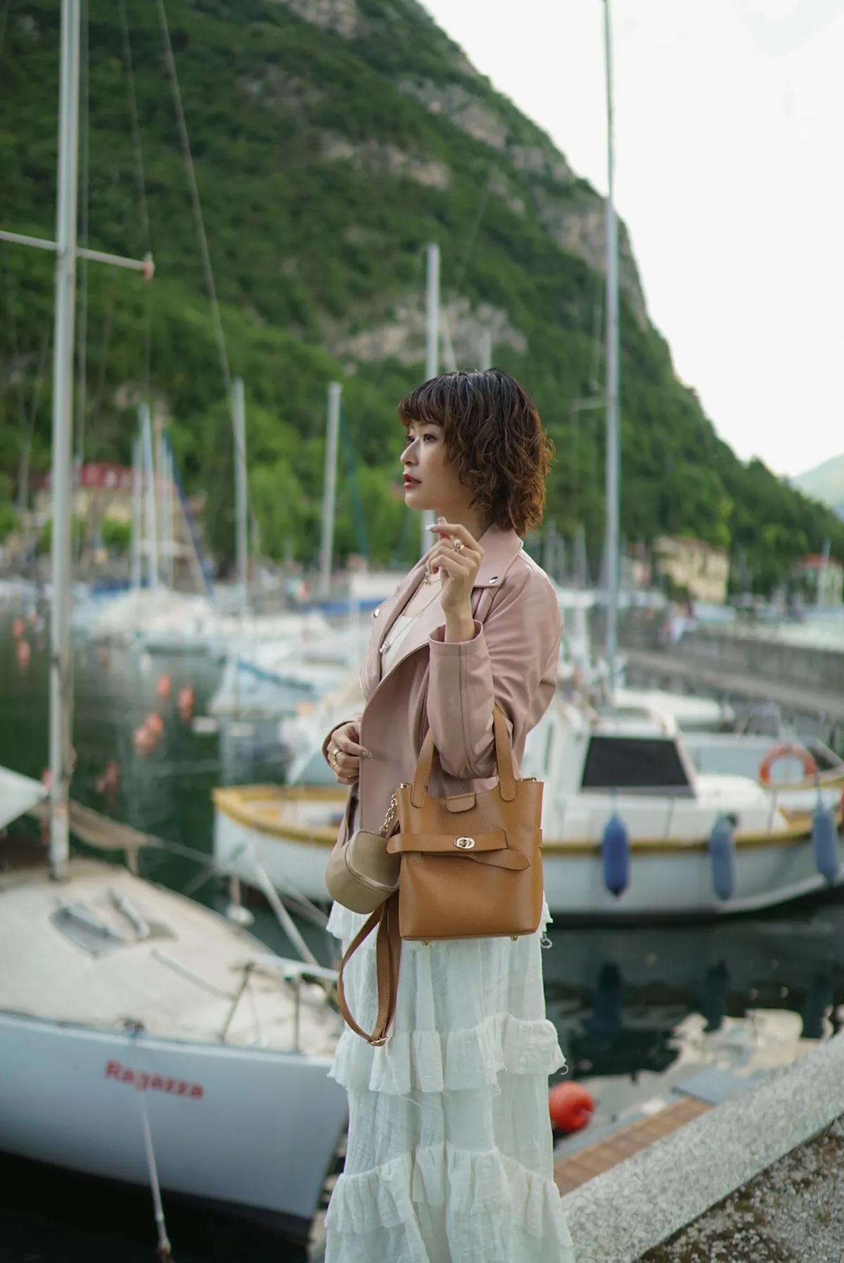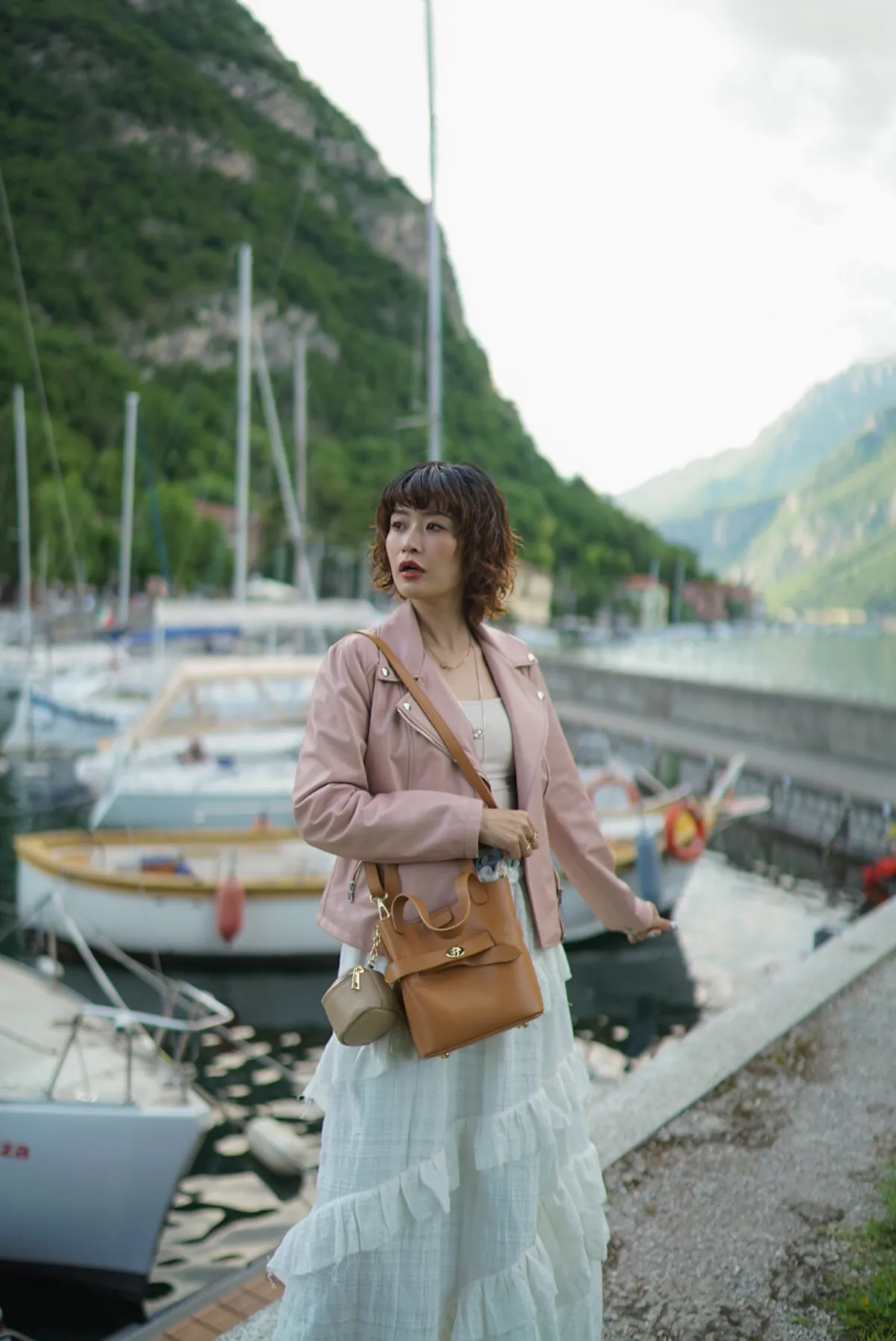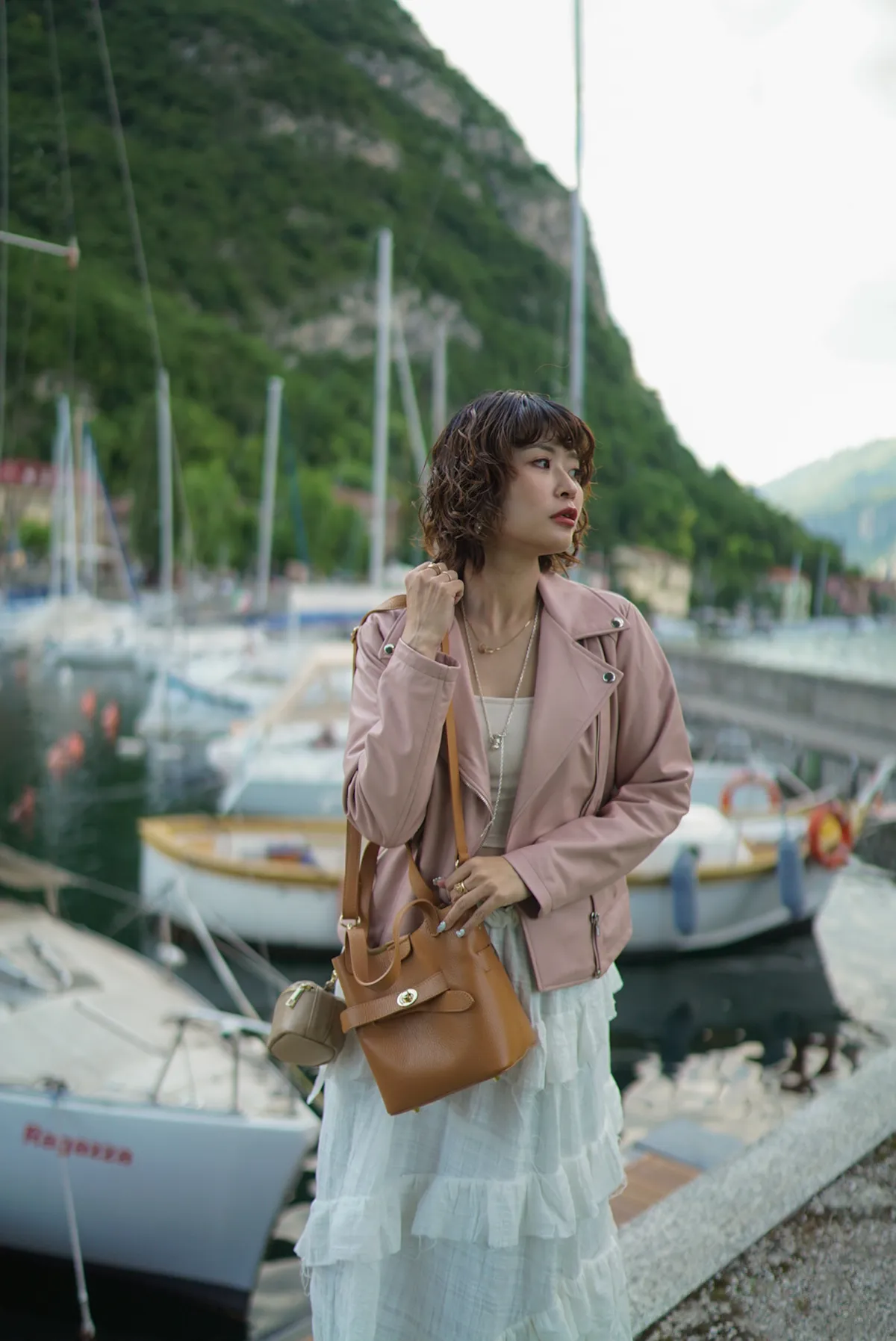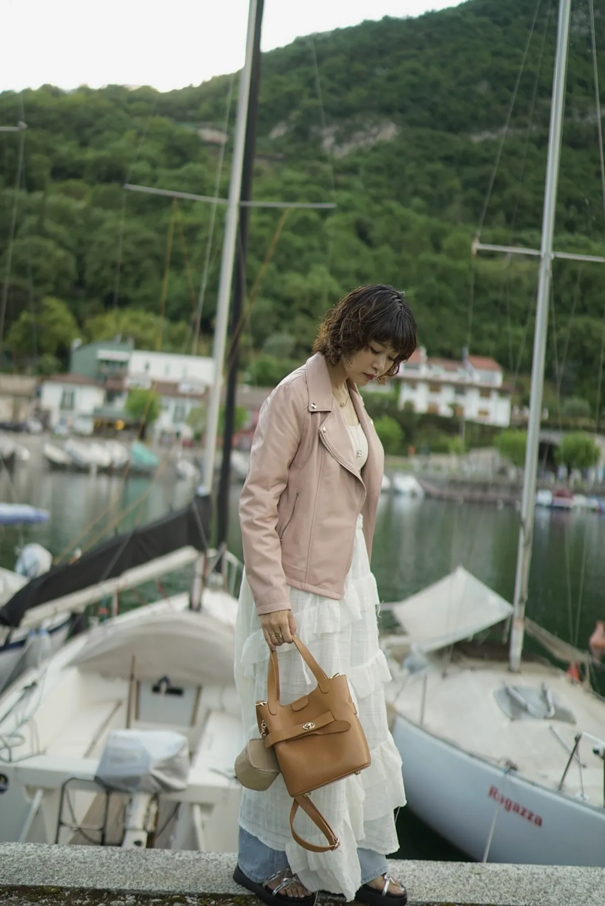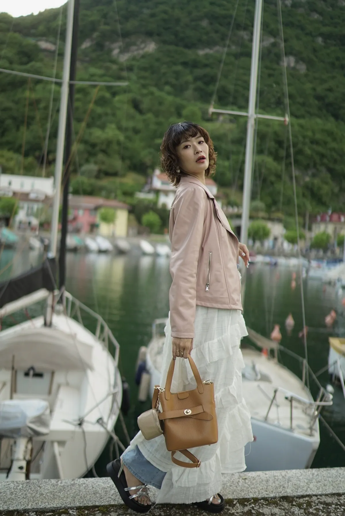 M042義大利製轉釦交叉造型水桶包2680元