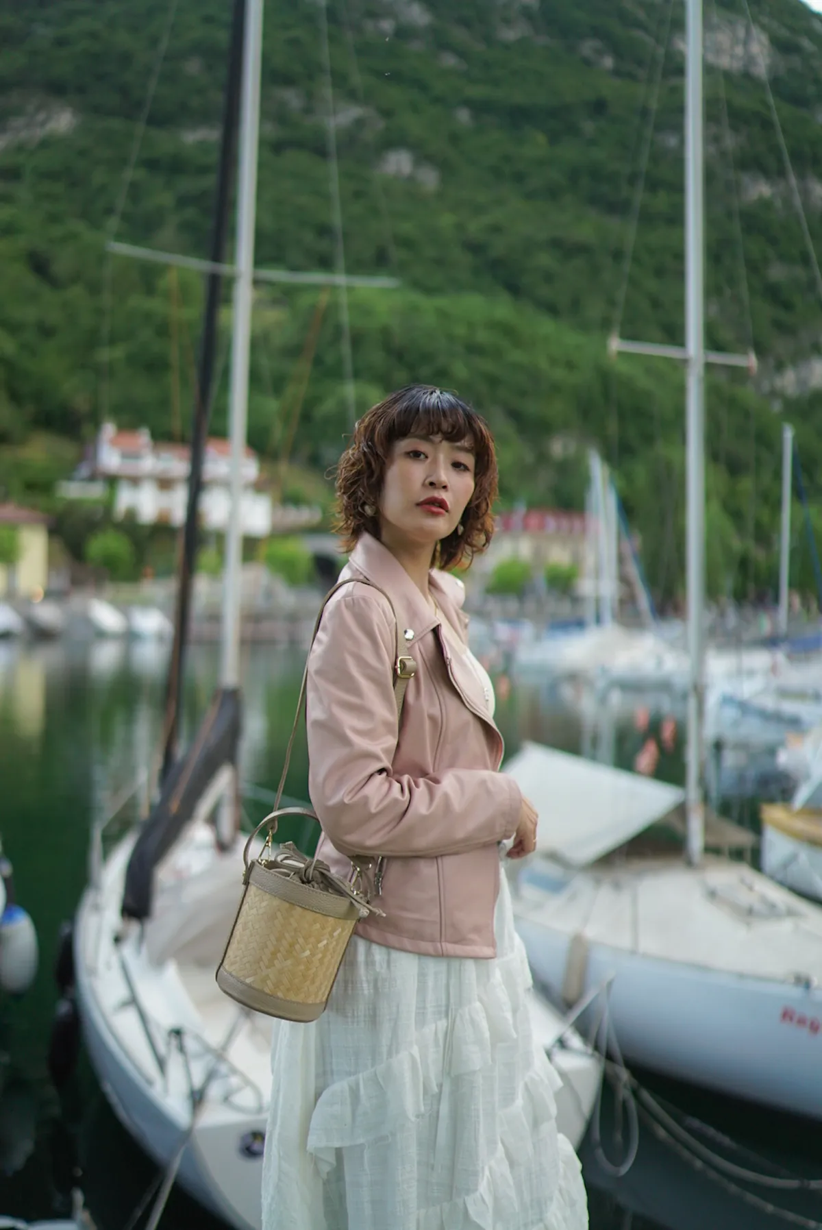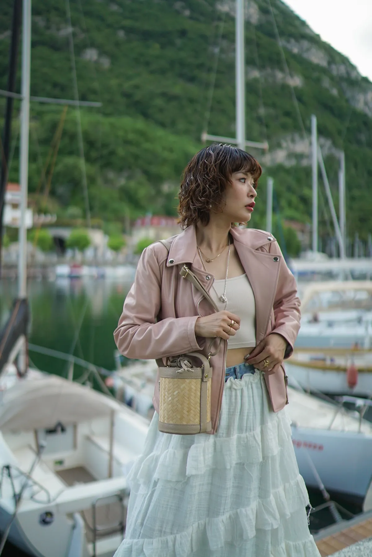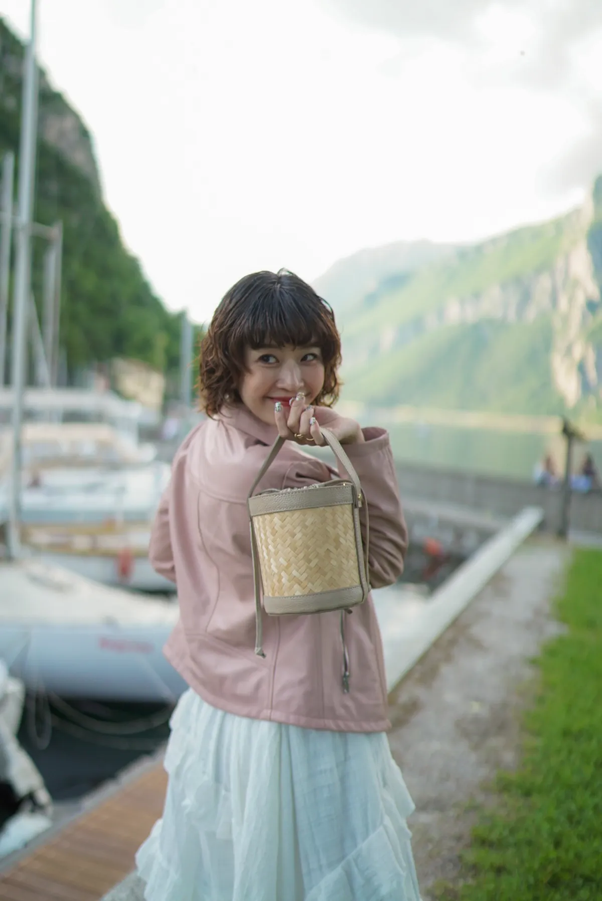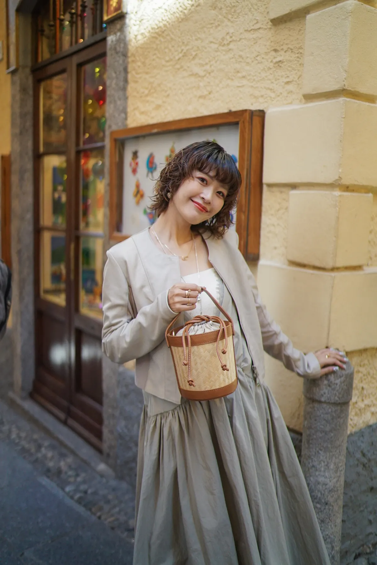 M044義大利製藤編拼接牛皮圓筒包2680元