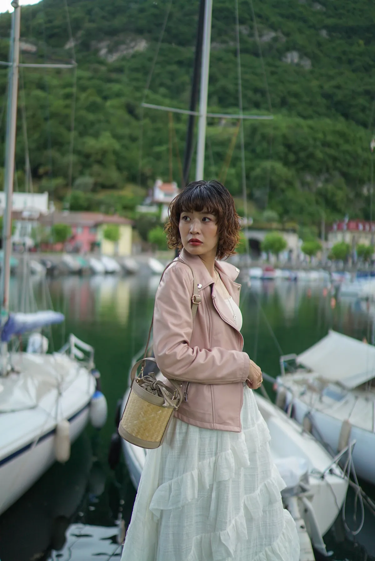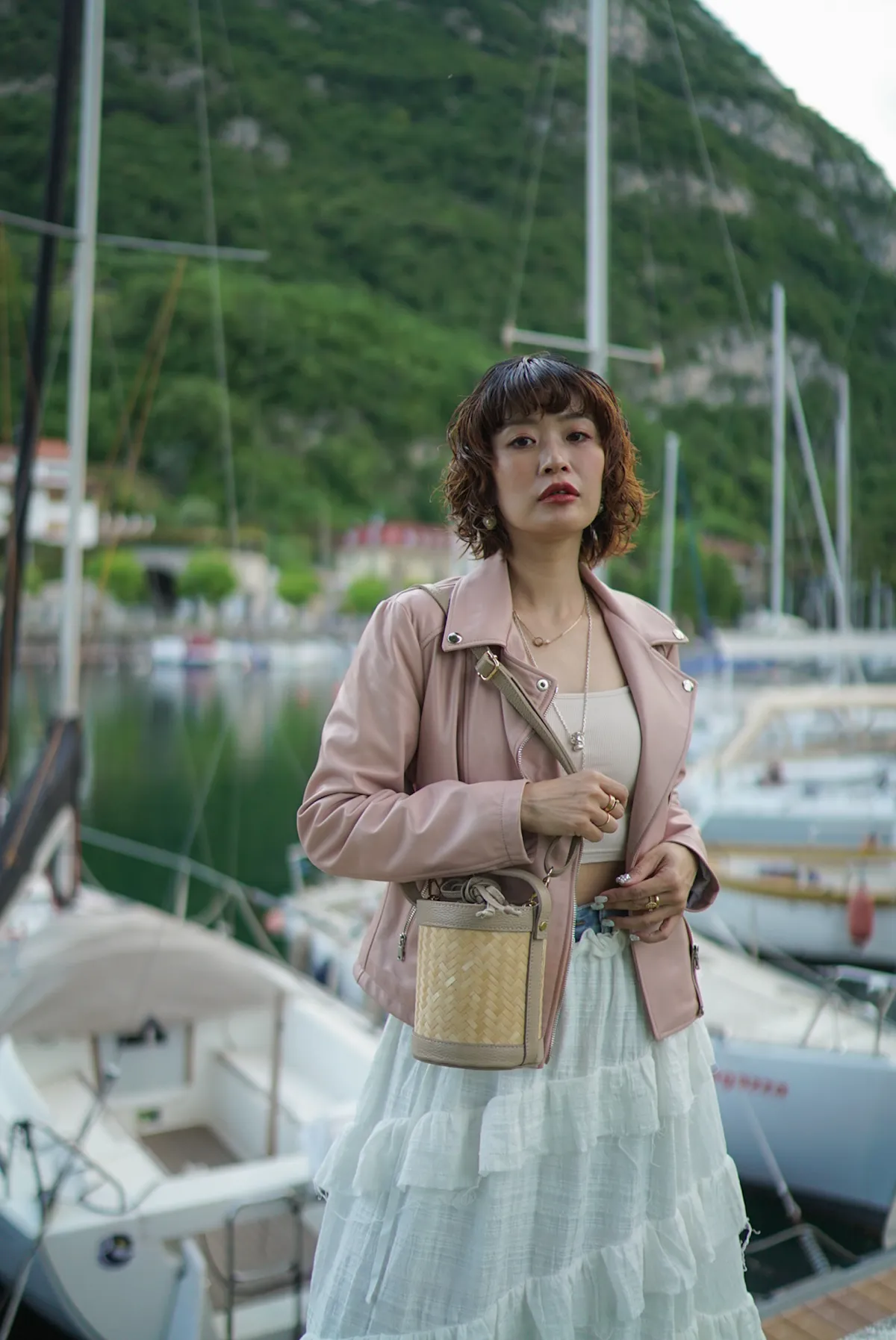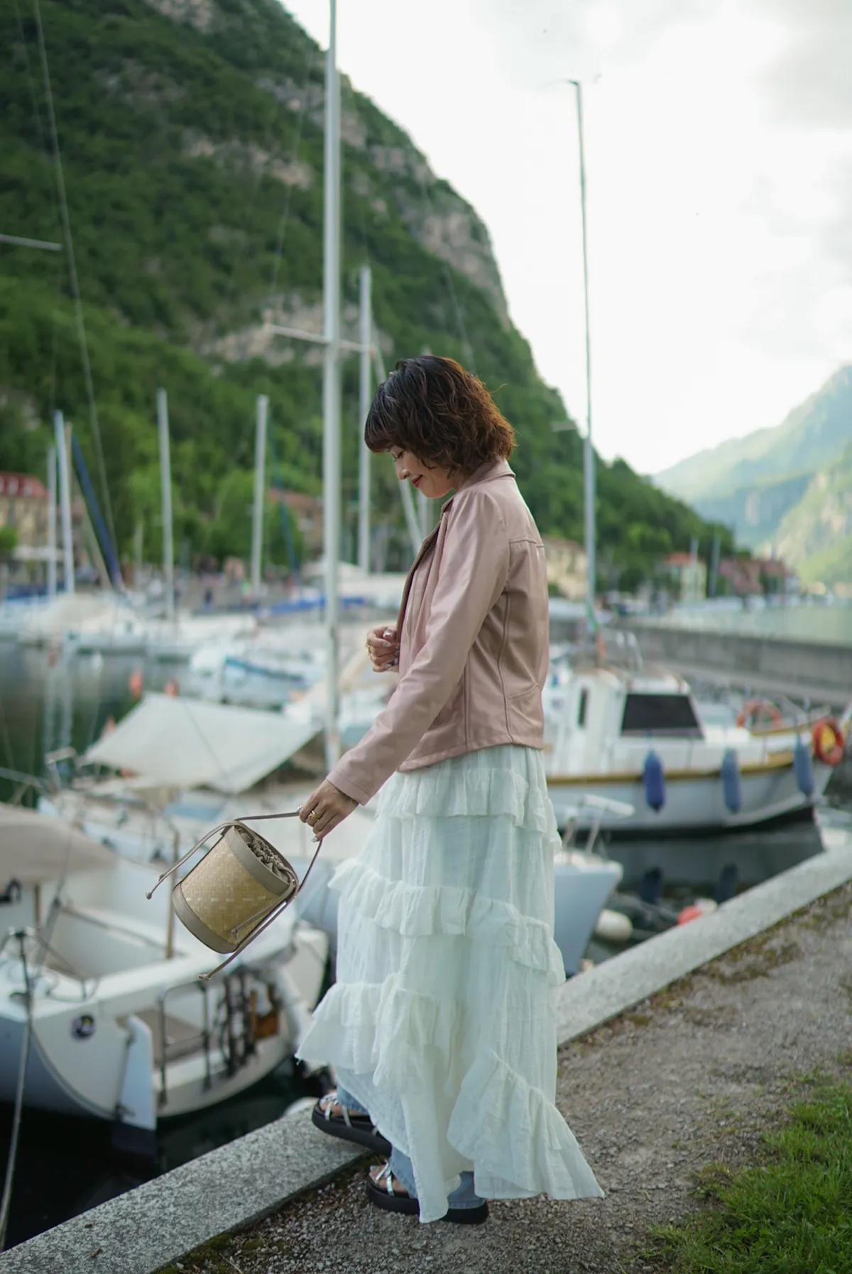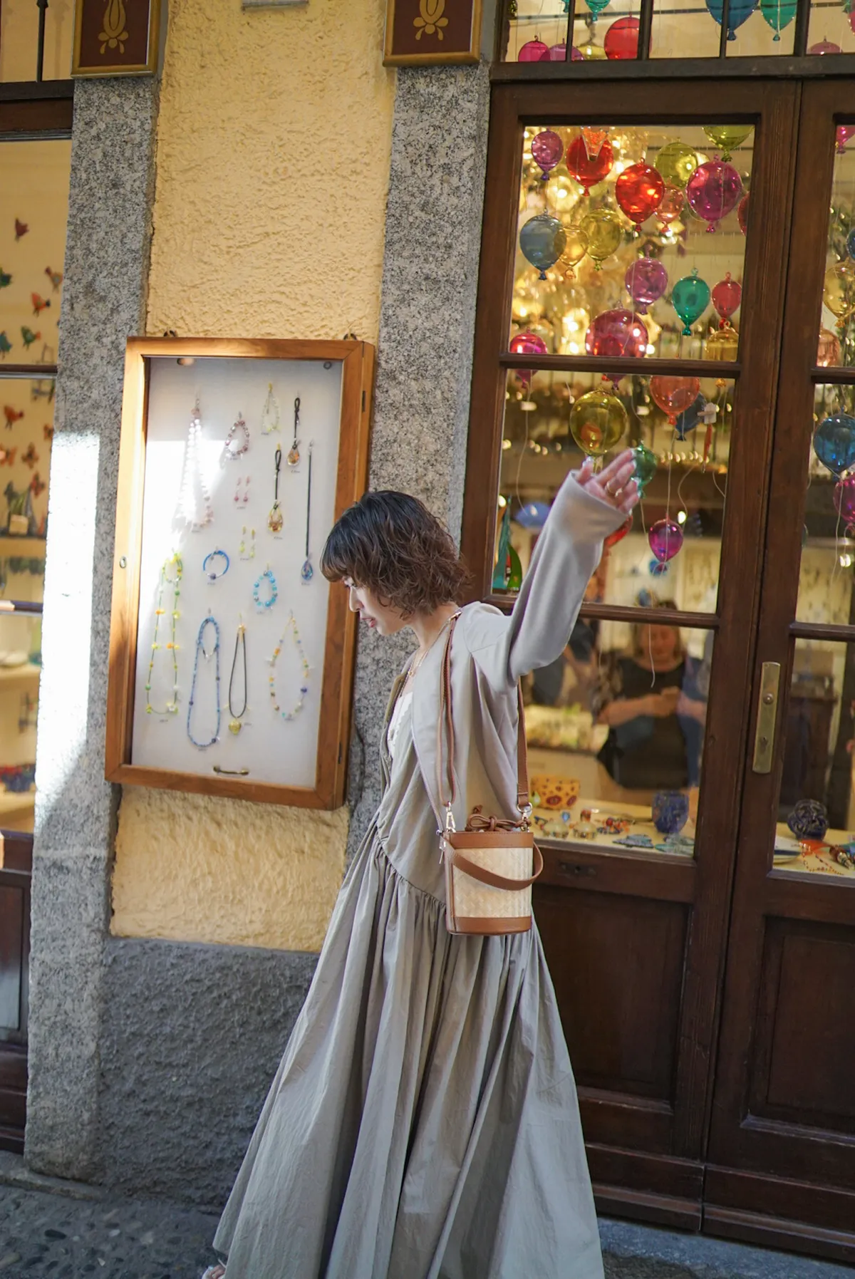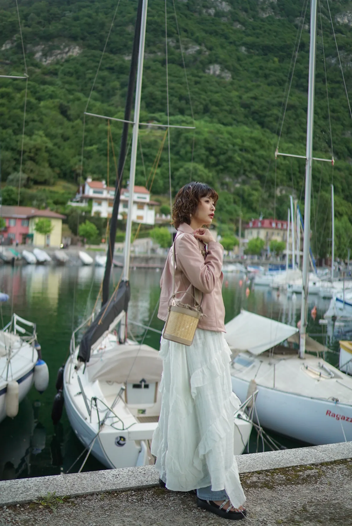 M044義大利製藤編拼接牛皮圓筒包2680元