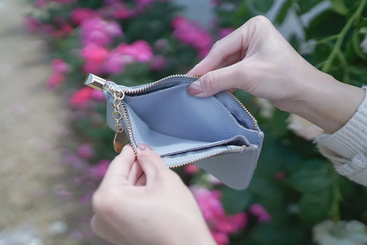 M055義大利製真皮外縫線拉鍊皮夾980元