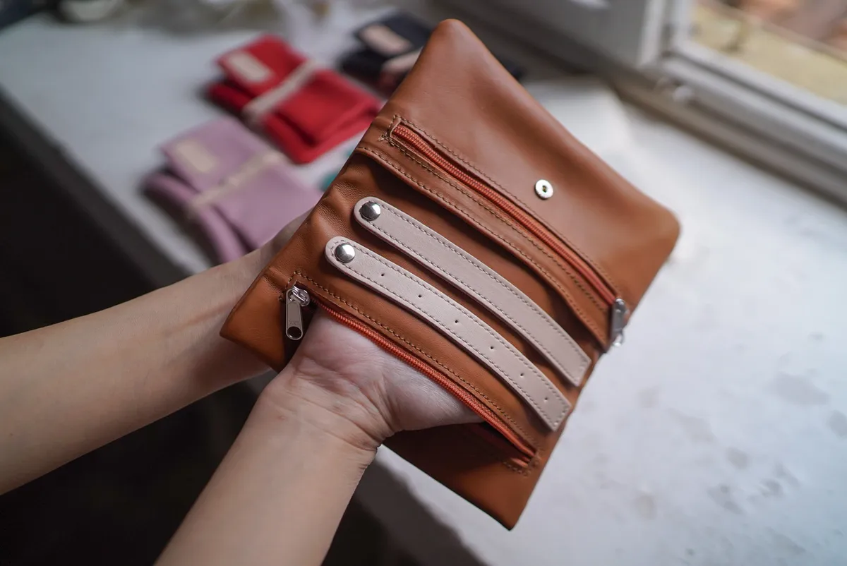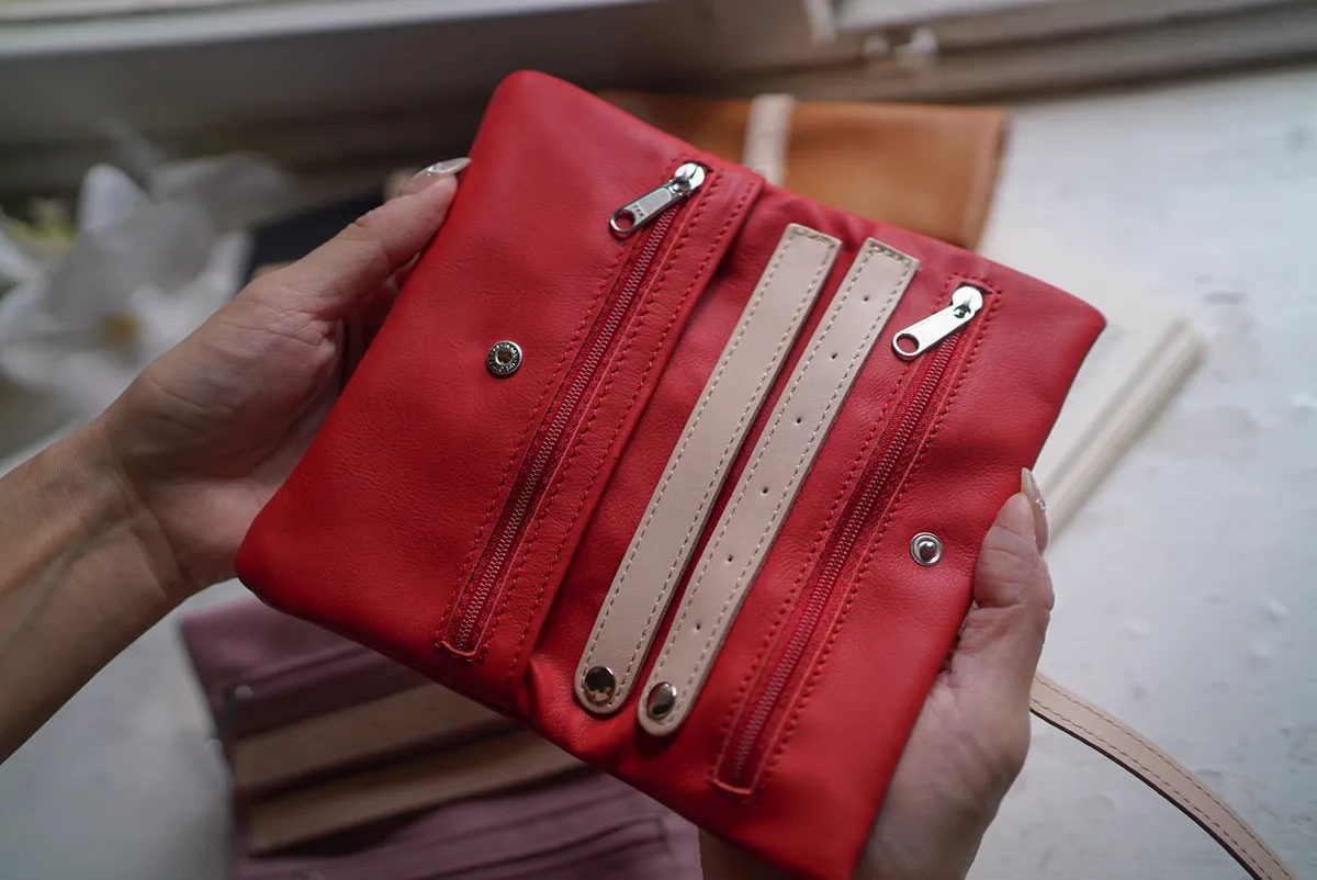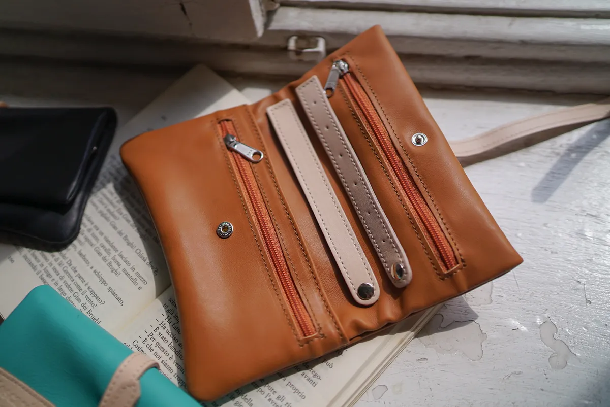 義大利製真皮卷軸式多功能小包