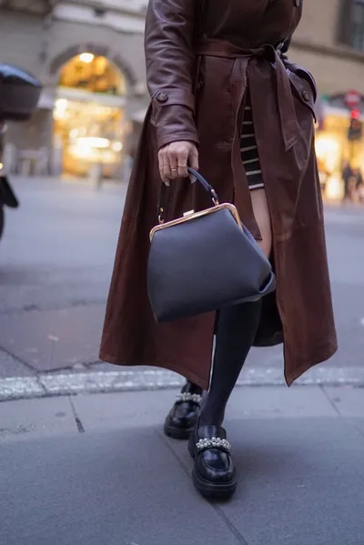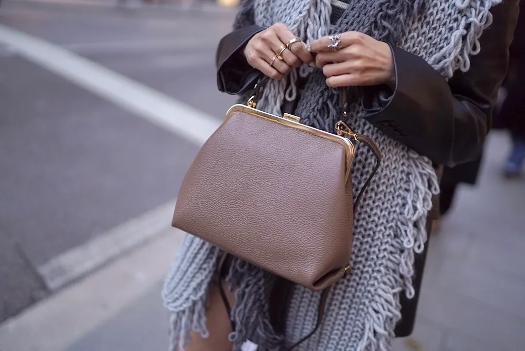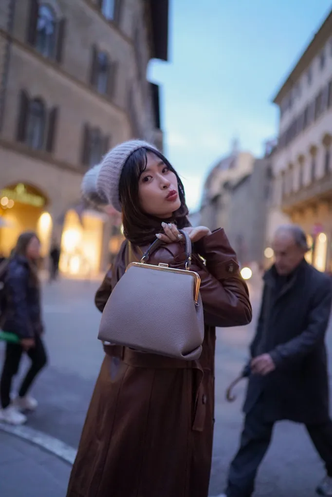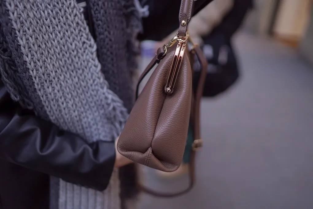 義大利真皮手提口金包