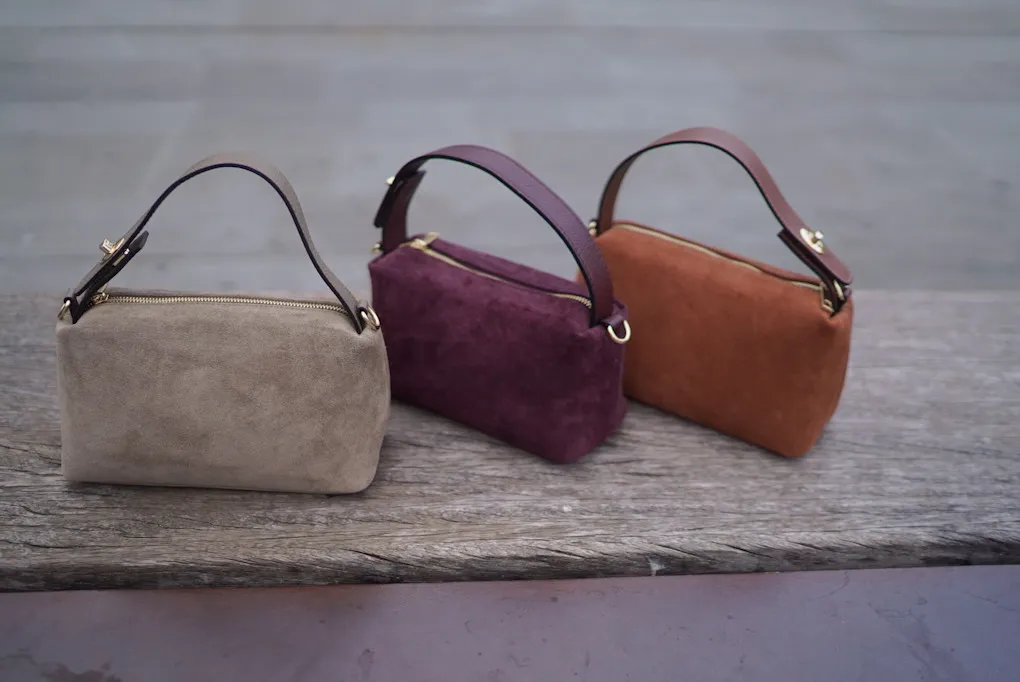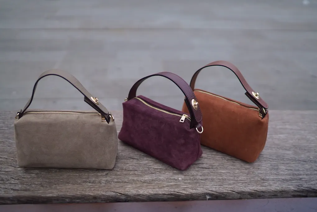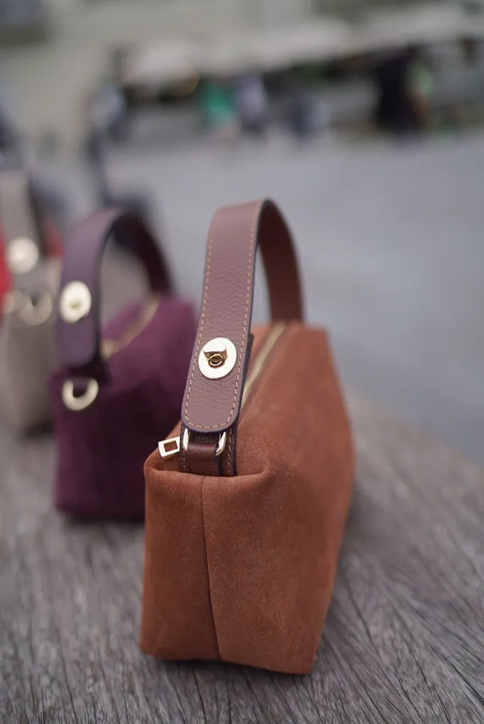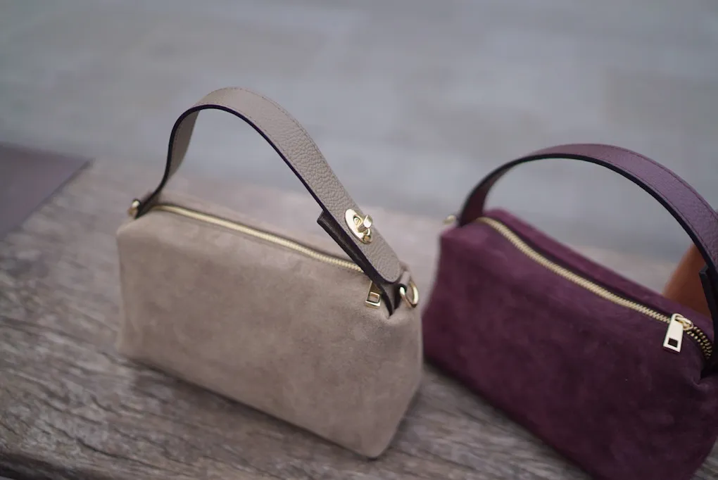 義大利鈕扣提帶麂皮拼接化妝包 1880元