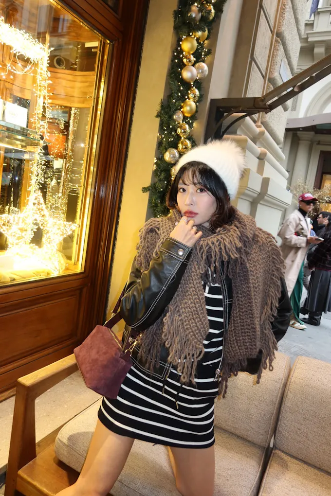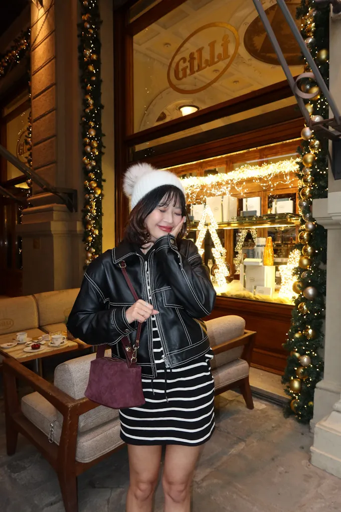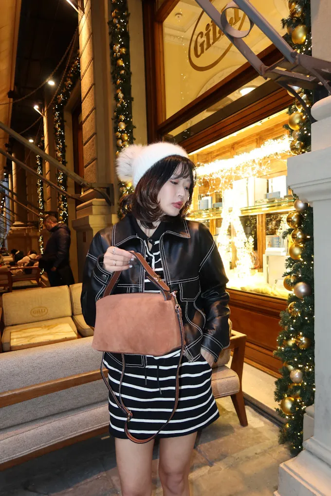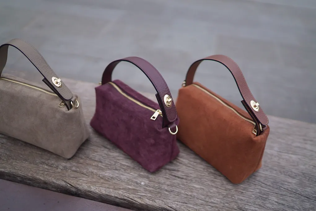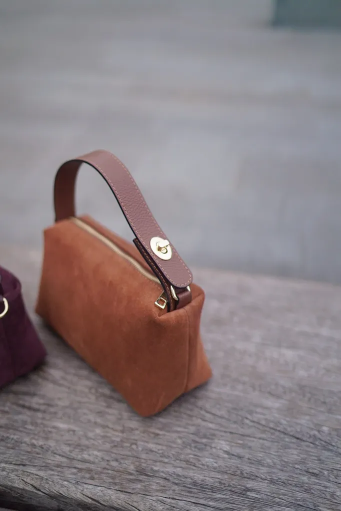義大利鈕扣提帶麂皮拼接化妝包 1880元