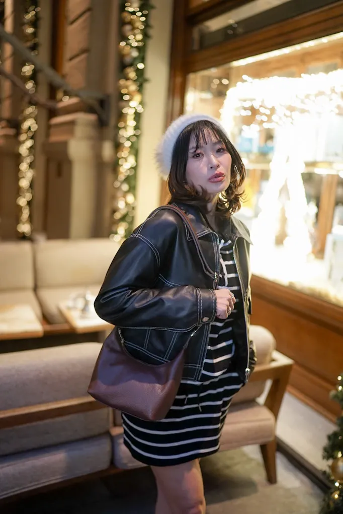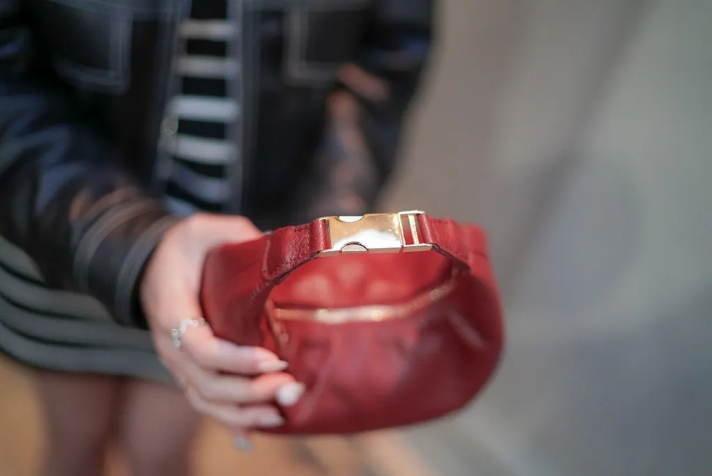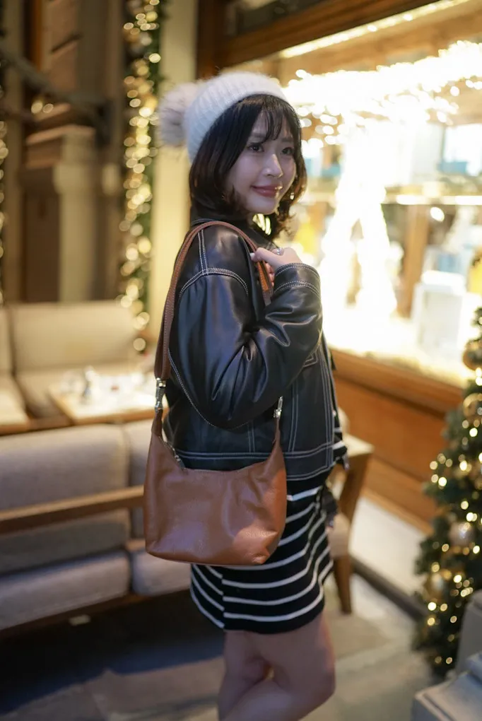 義大利金釦提帶真皮新月包 2280元