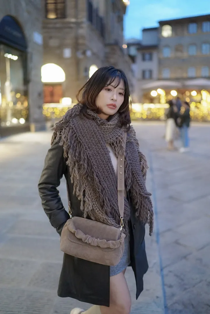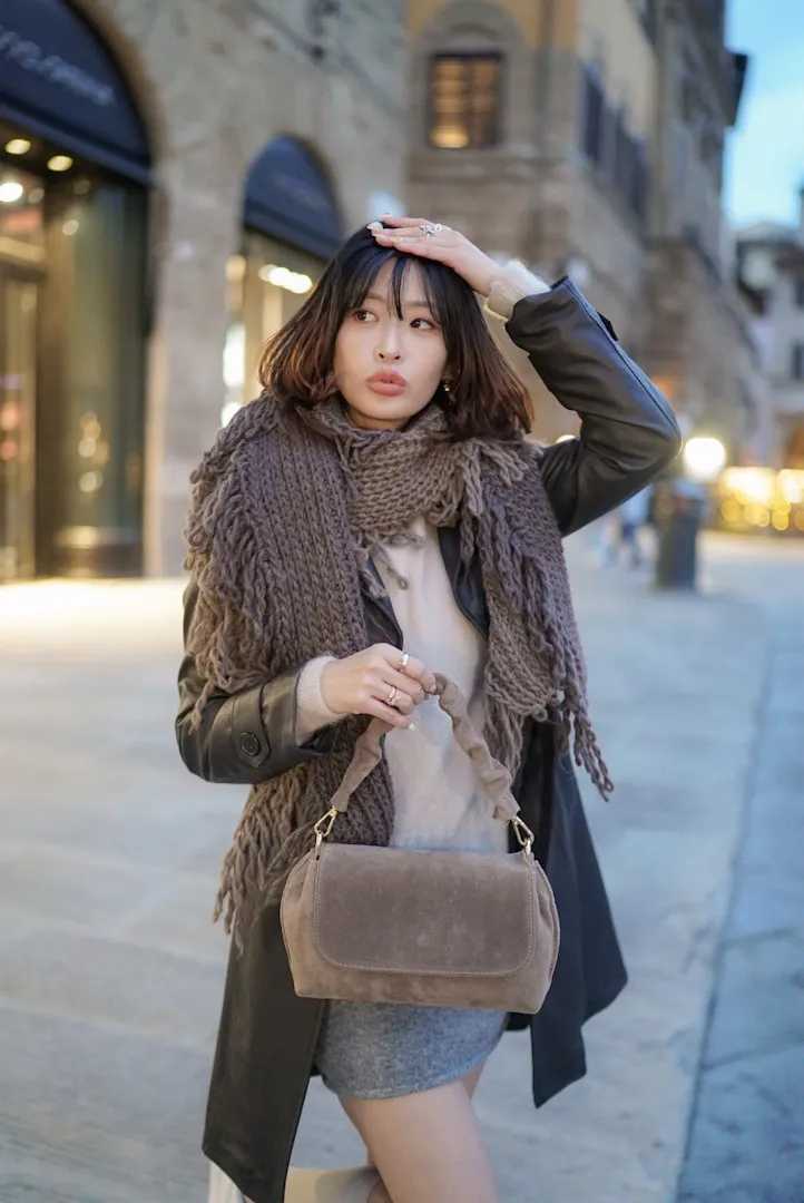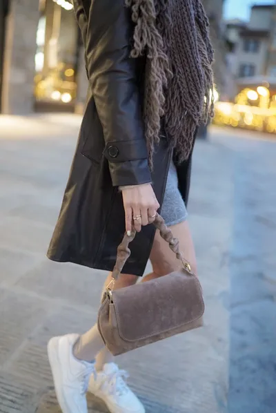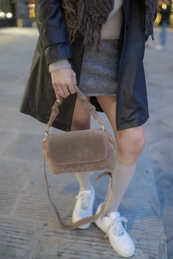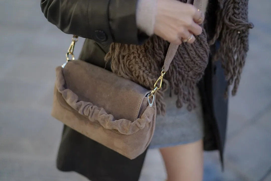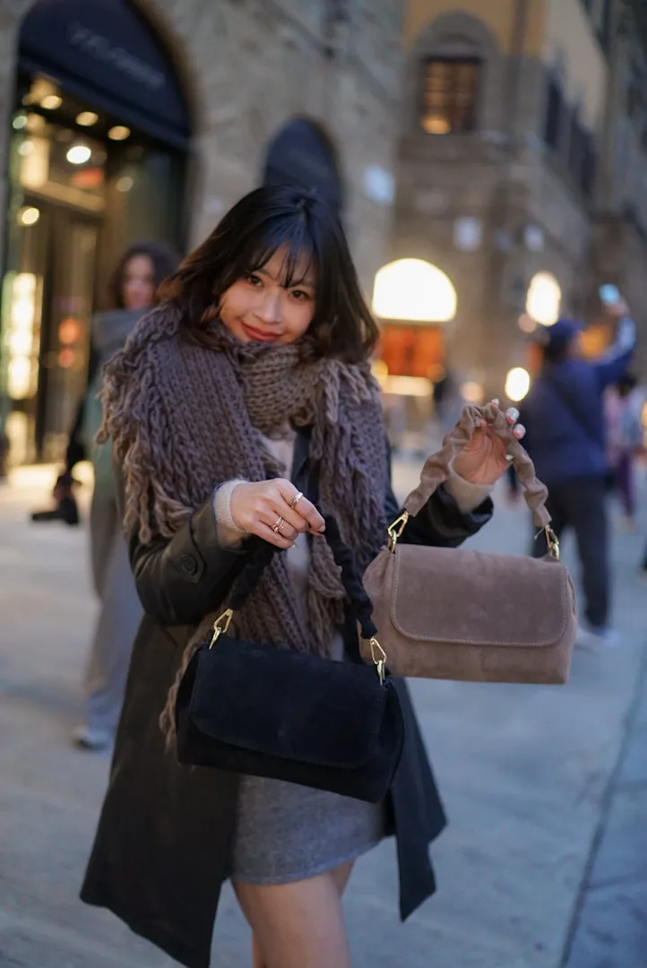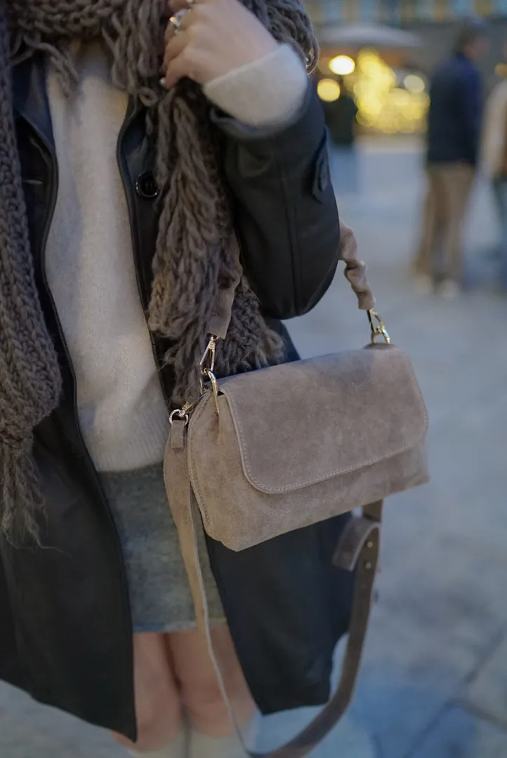 義大利捲捲提帶麂皮翻蓋信封包