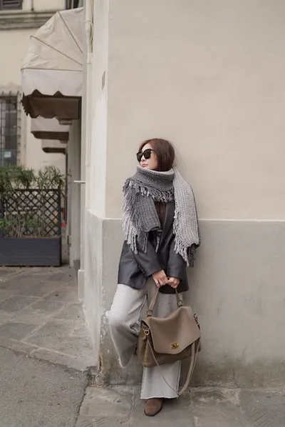 義大利製雙色蛋糕流蘇羊毛圍巾 1680元