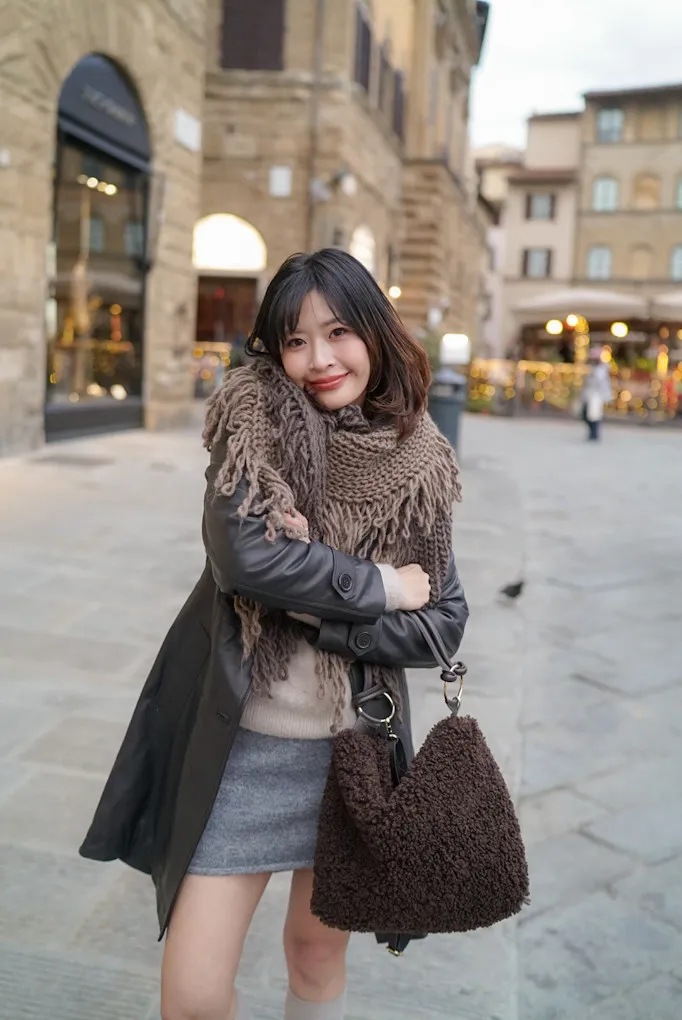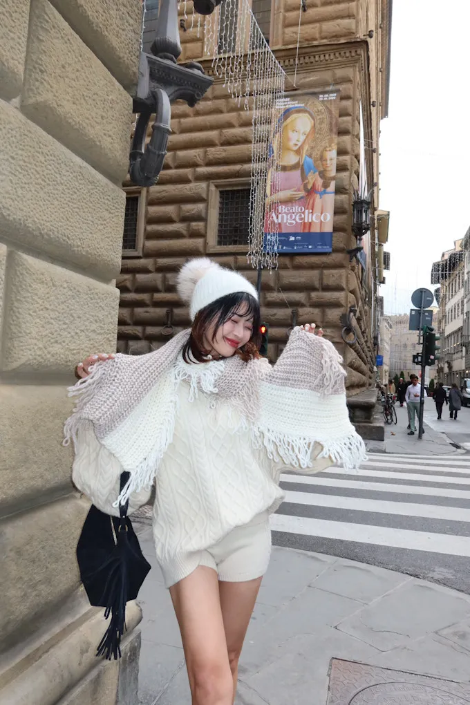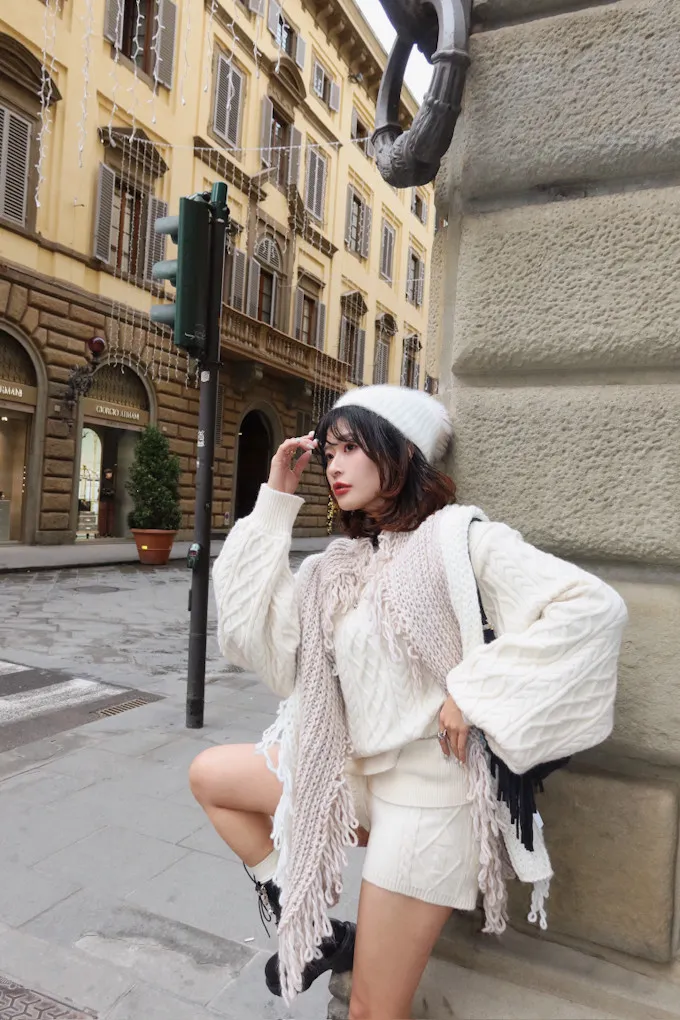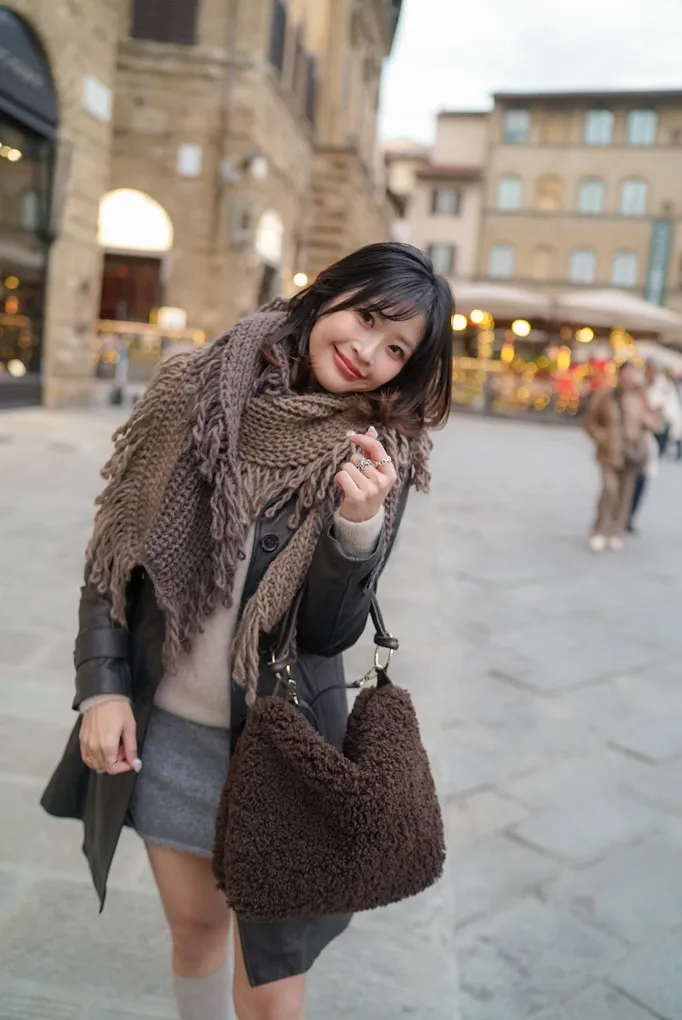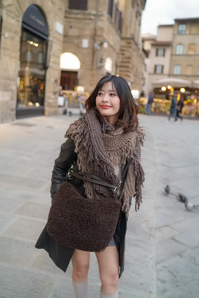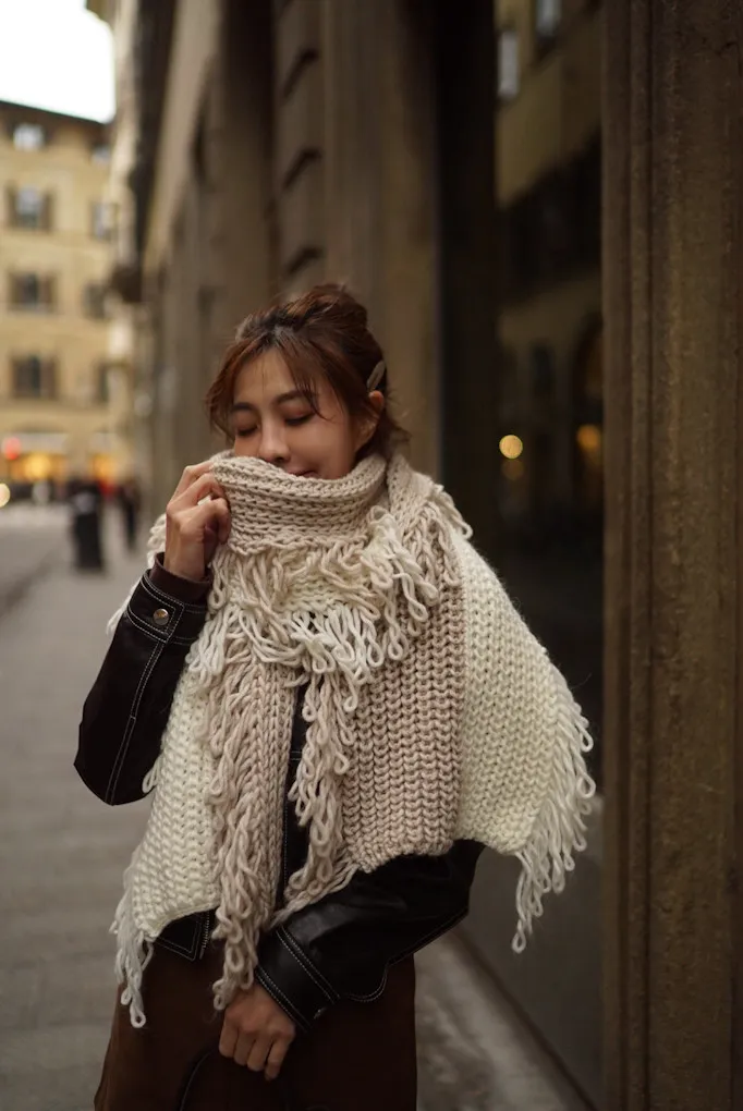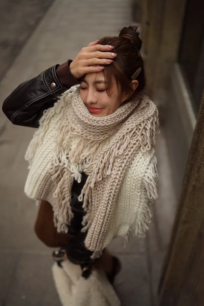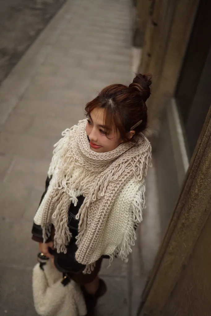 義大利製雙色蛋糕流蘇羊毛圍巾