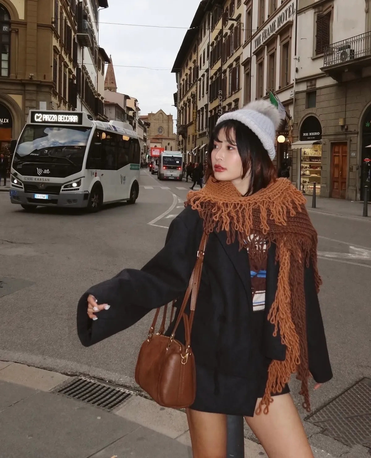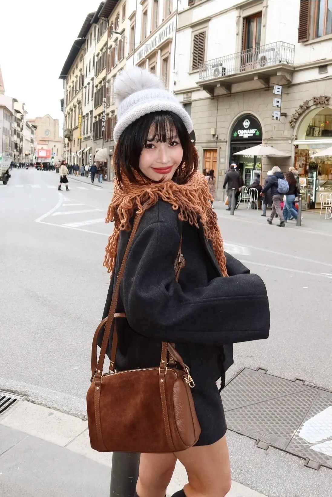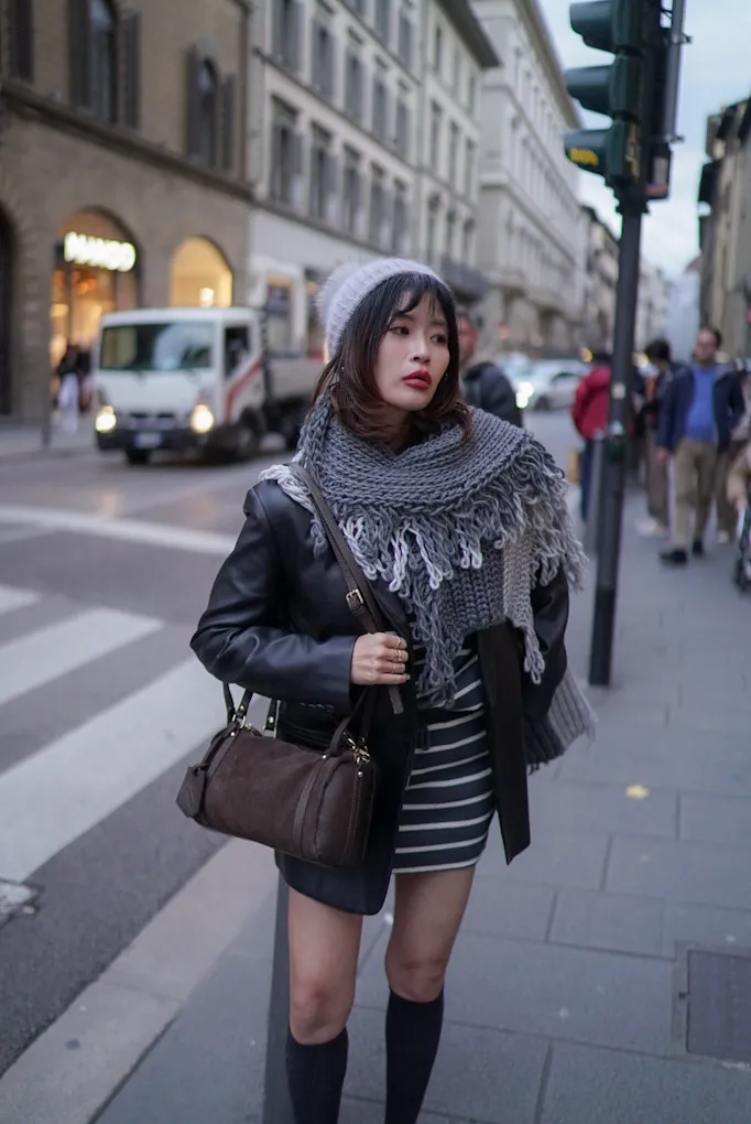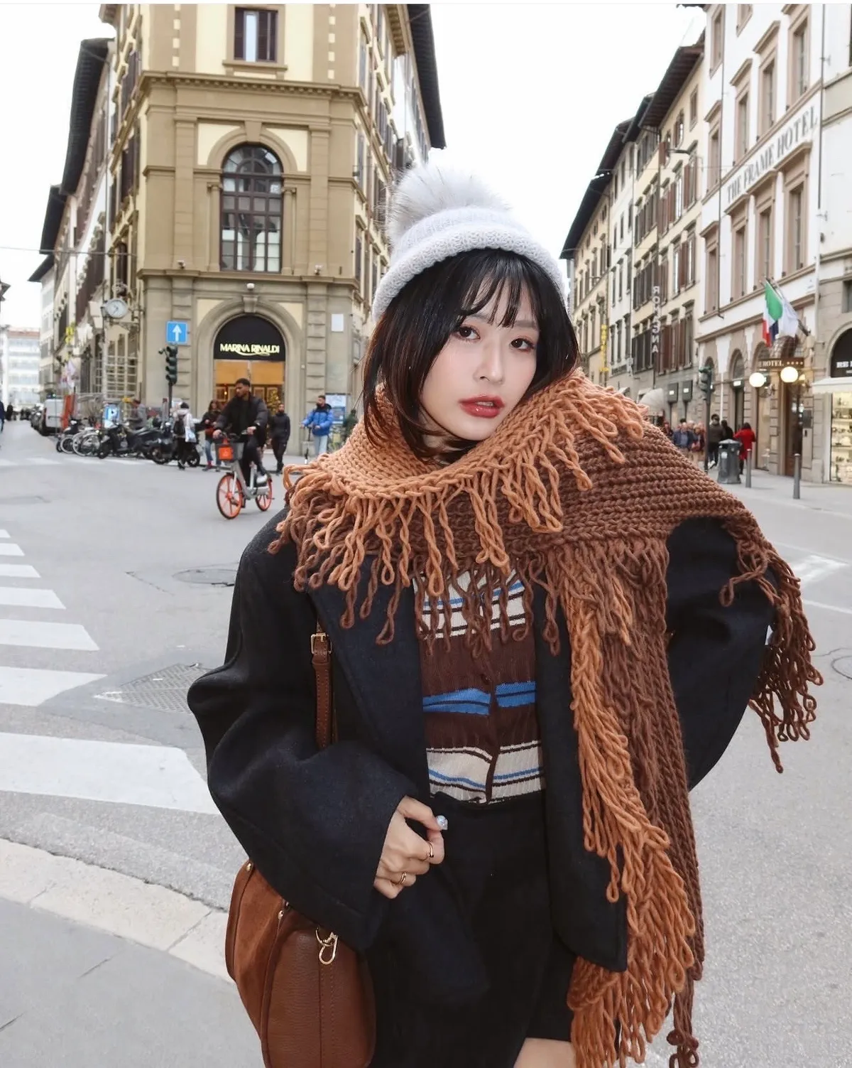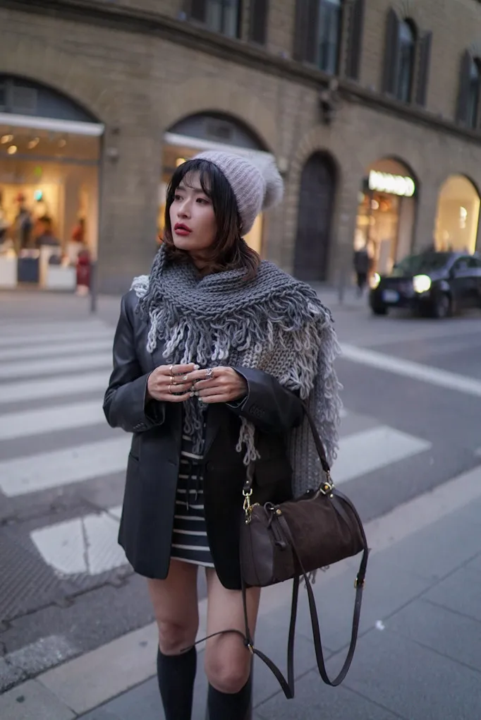 義大利製雙色蛋糕流蘇羊毛圍巾