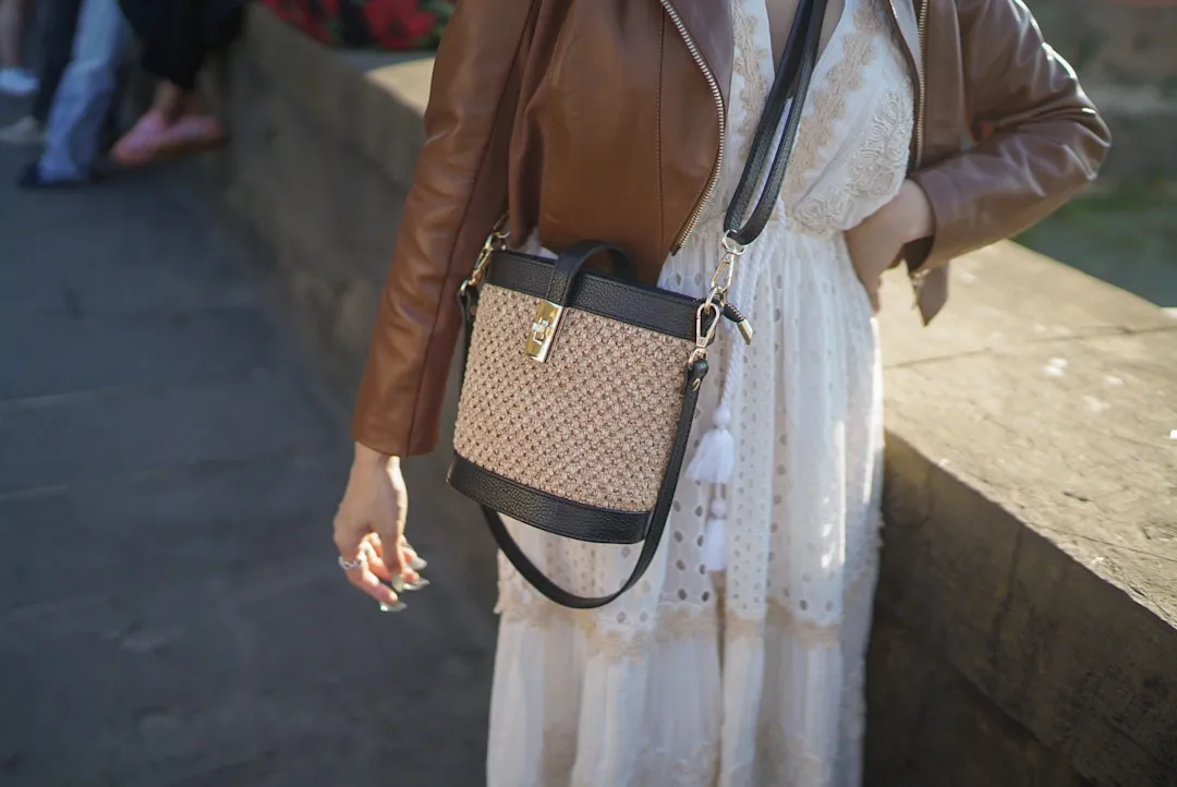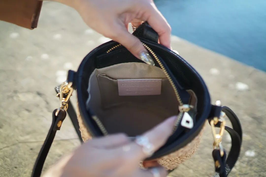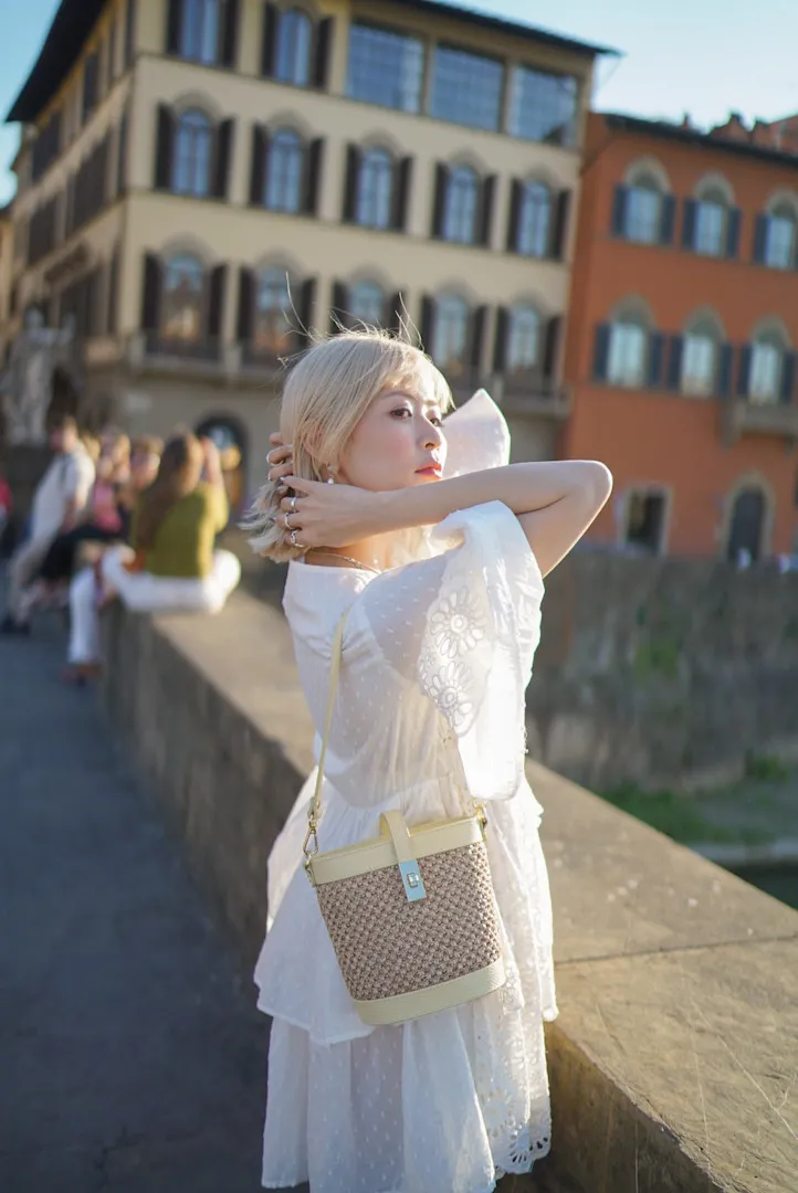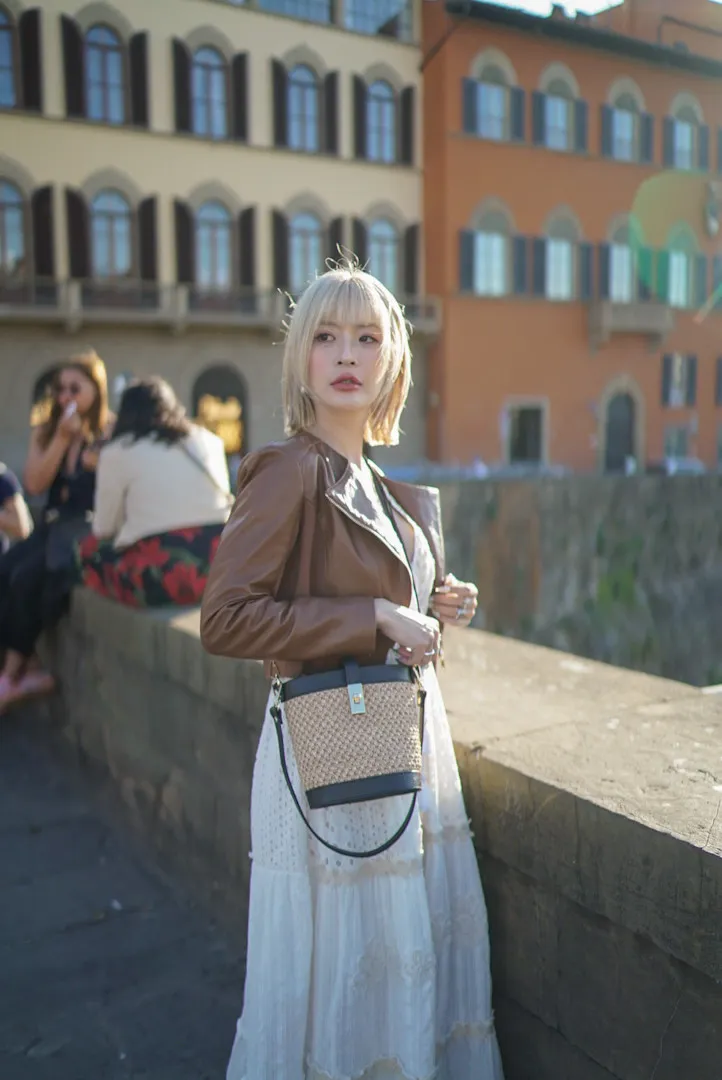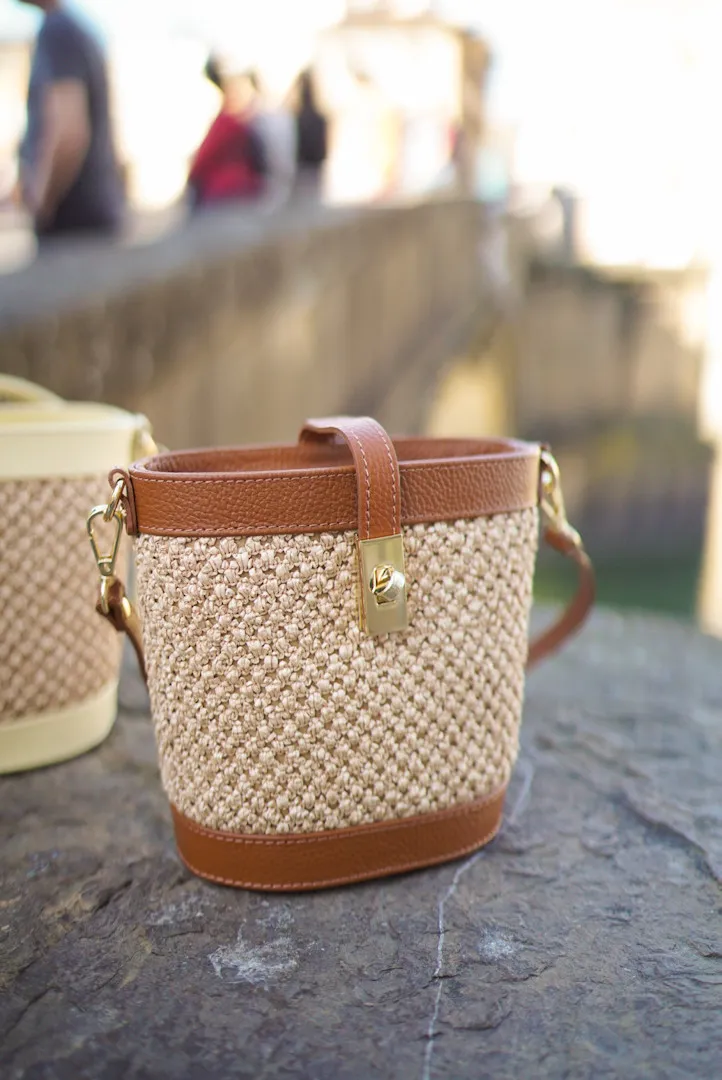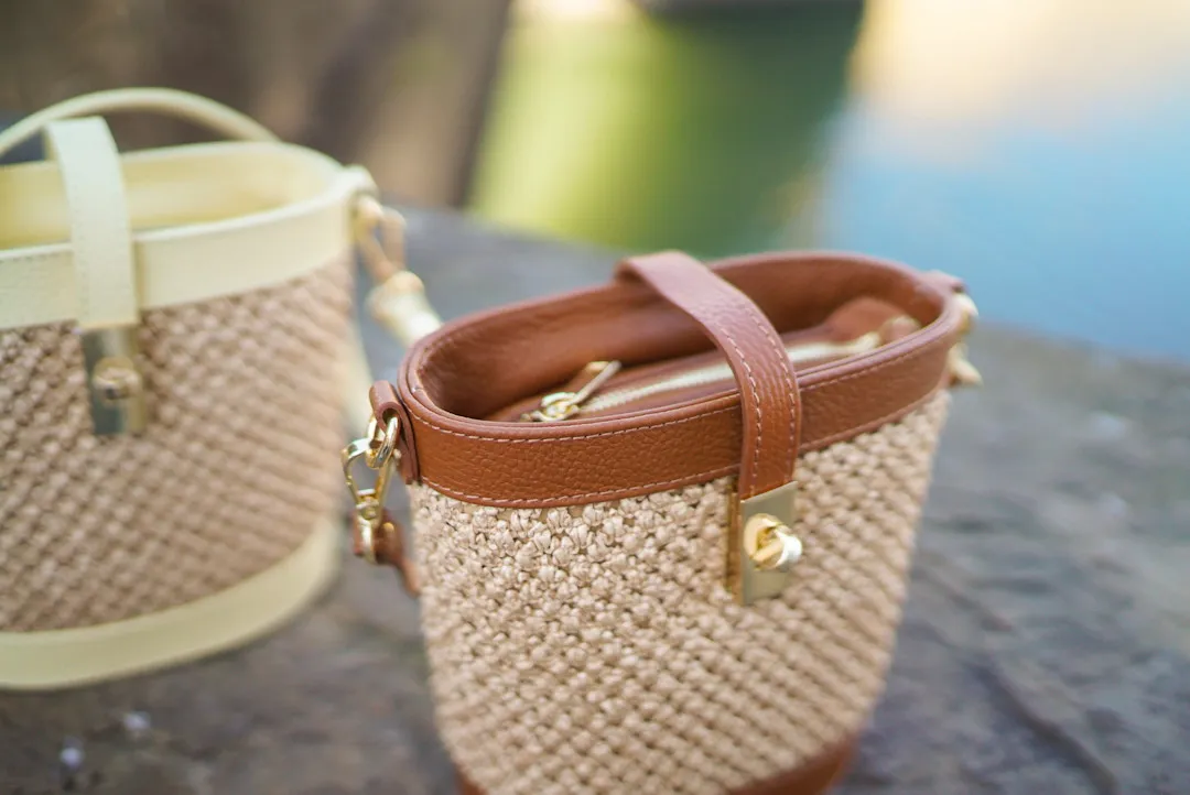 P03義大利金色轉扣真皮拼接竹編包 2480元