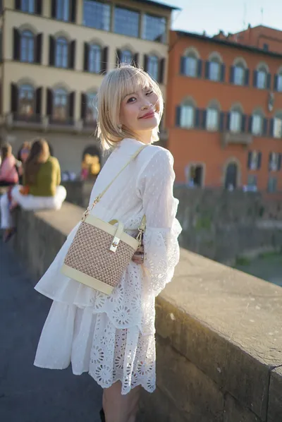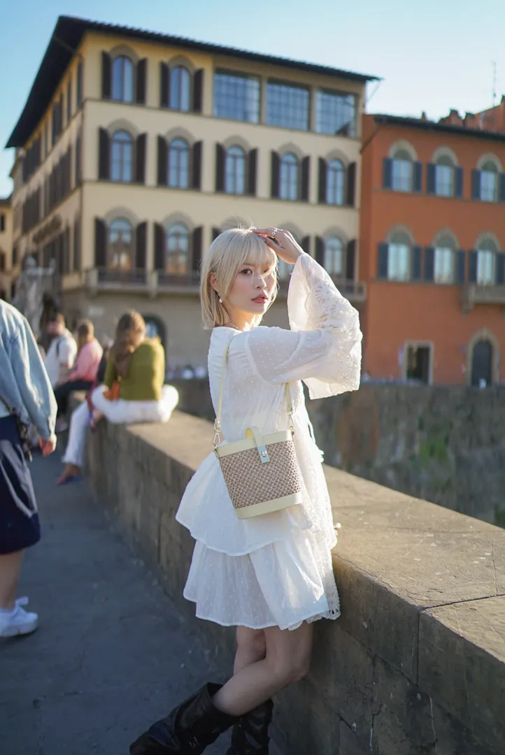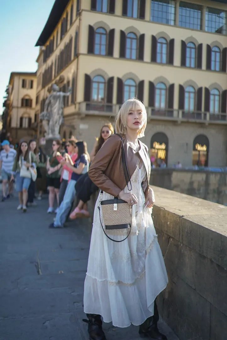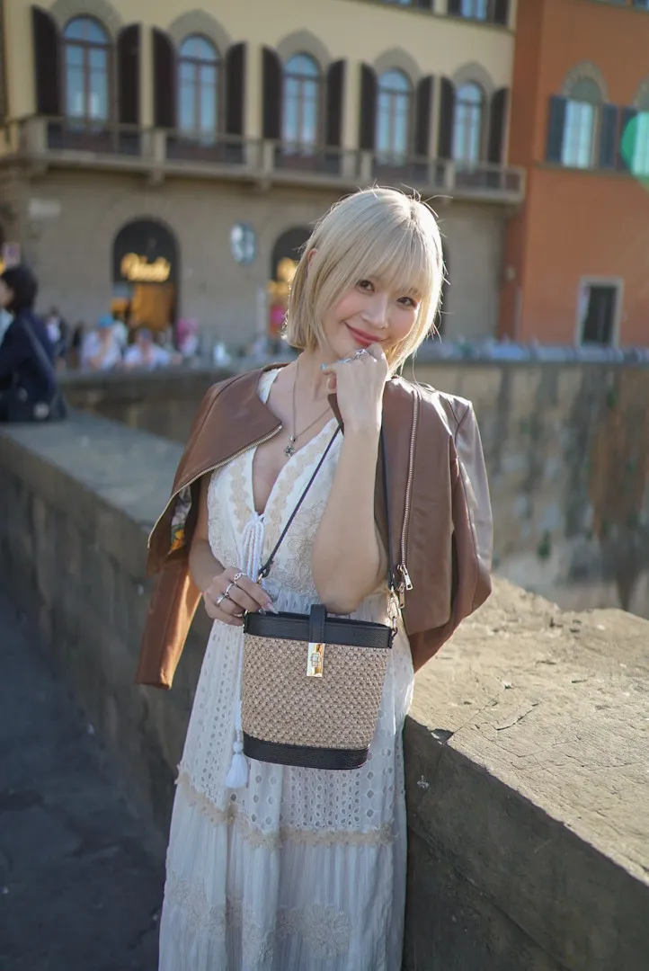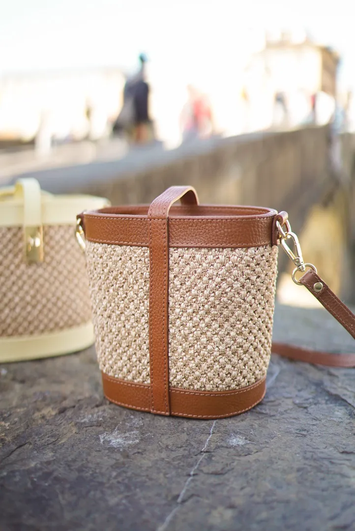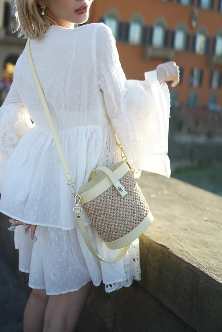 P03義大利金色轉扣真皮拼接竹編包 2480元